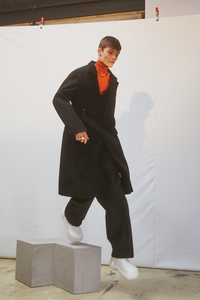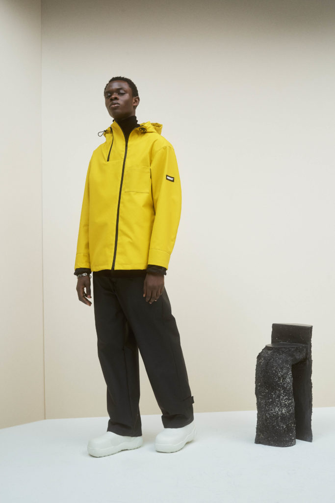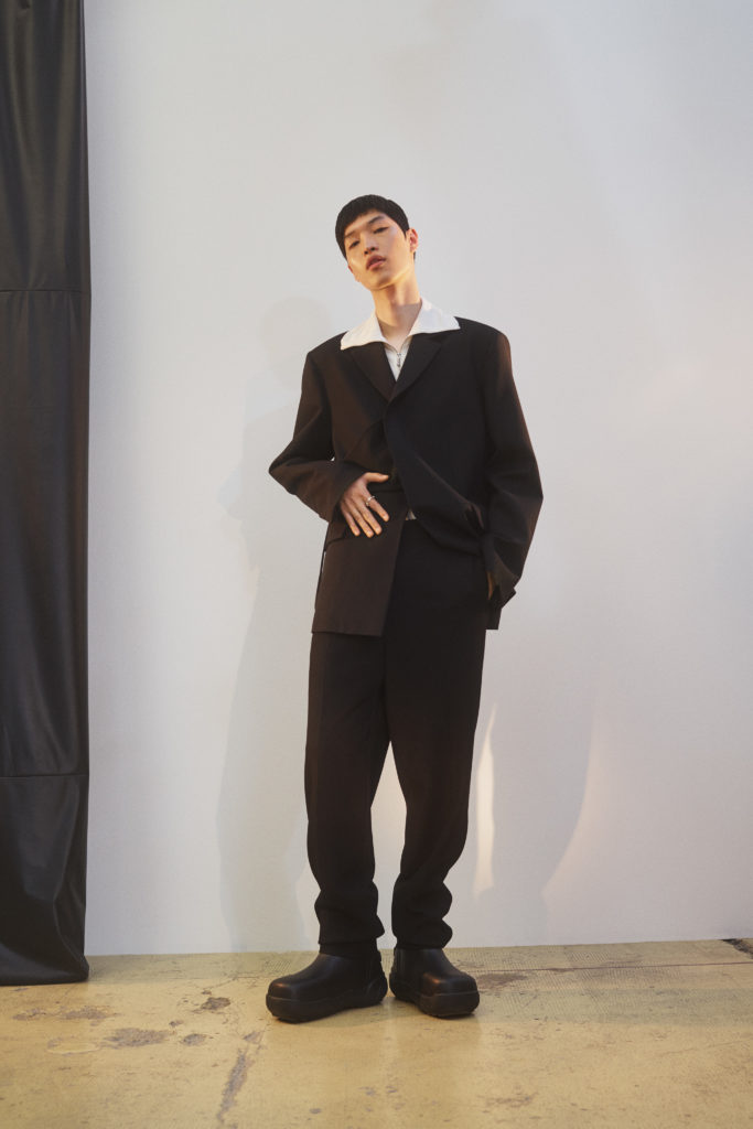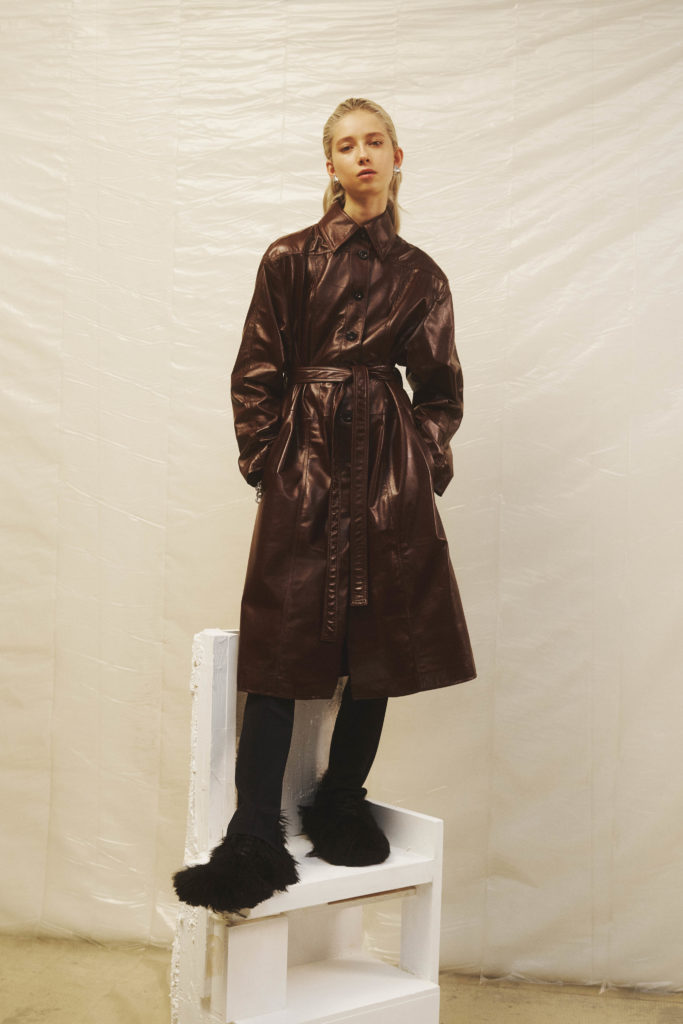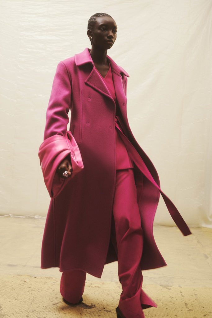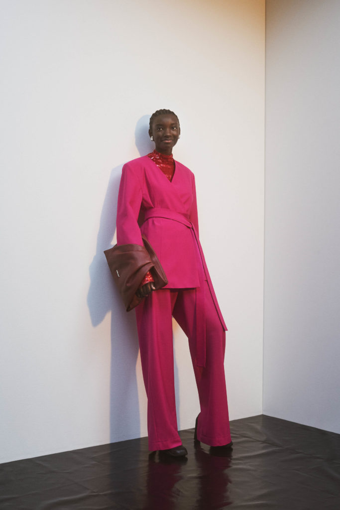 In monochrome interspersed with bursts of acid pink, yellow and green, or dusky brown and maroon, YOON takes clues from our new everyday lives. Suit jackets and leather coats have a boxy 80s look and are easy to wear, or cinched at the waist to give