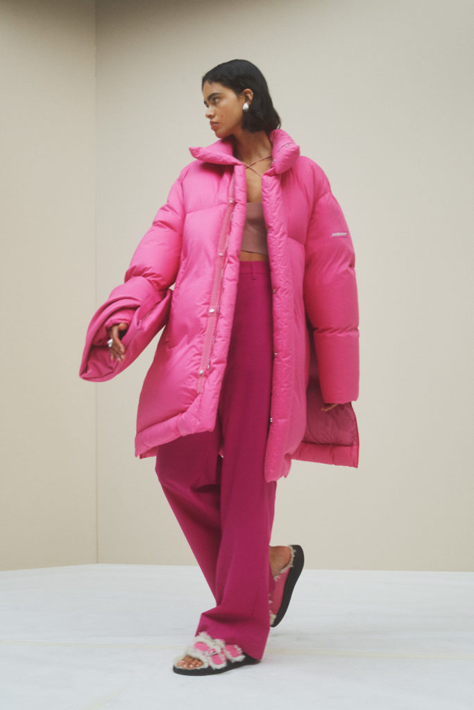 For autumn/winter 2021, AMBUSH continue the journey they started last season — laying the foundations for a new house. The rebuild of the AMBUSH Maison, or reflects what people want, and need, from their wardrobe in 2021 – the fundamental idea of com fort . This season sees AMBUSH expand upon the themes of spring/summer 2021 and express how the mind can wonder when comfortable and at home, both literally and in spirit. How we can explore different worlds and rooms, some glamorous, some outdoors and technical, and some more futuristic and urban.