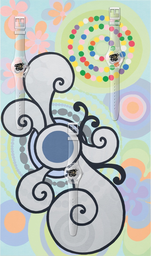 Swatch s’associe aussi à l’artiste Beatriz Milhazes (visuel ci-dessus). Elle intègre trois de ses oeuvres de la collection MoMA – Suculentas Beringelas (Succulent Eggplants) (1996), The Mirror (O Espelho) (2000), et Meu Bem (2008) – sur la plateforme Swatch X You.