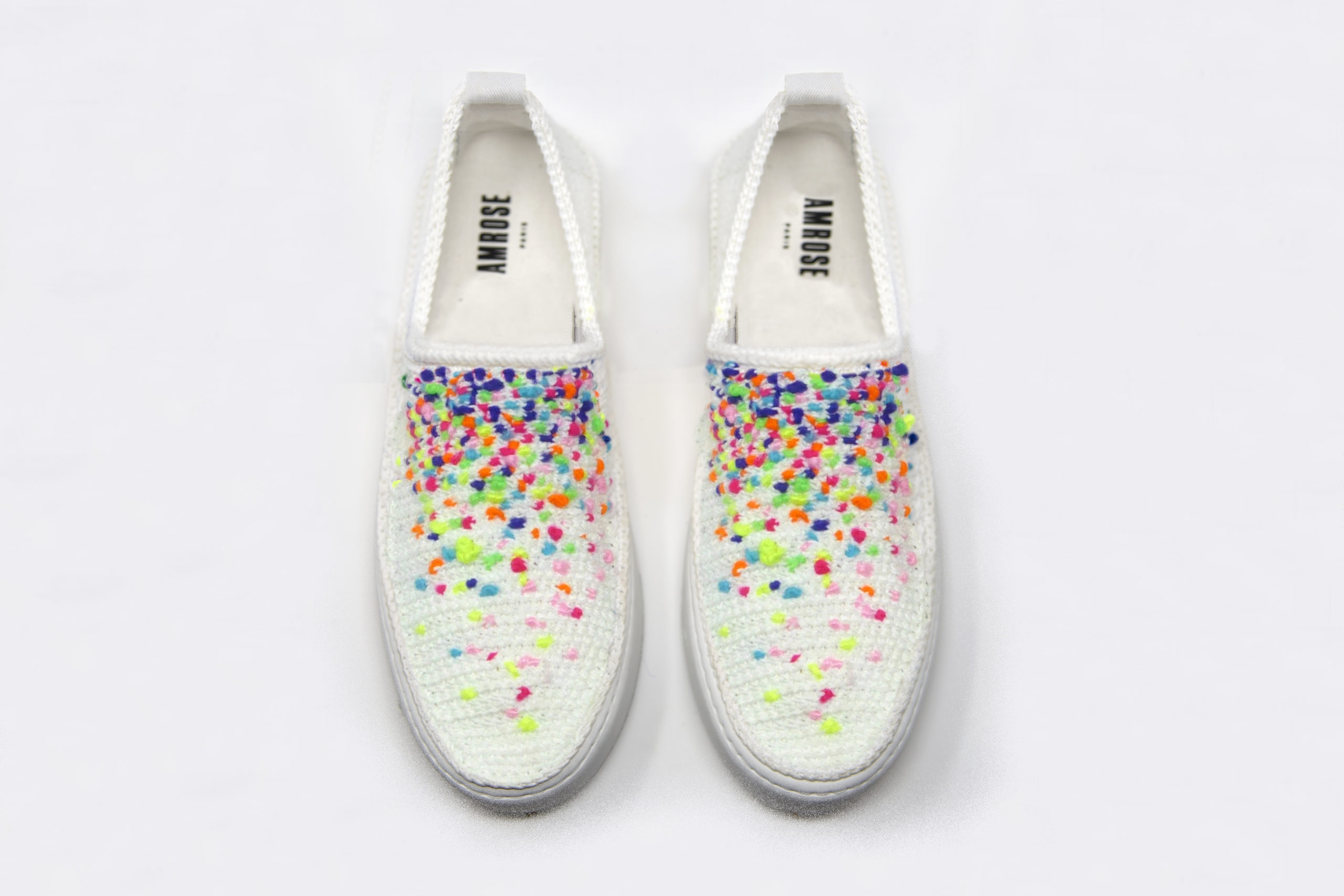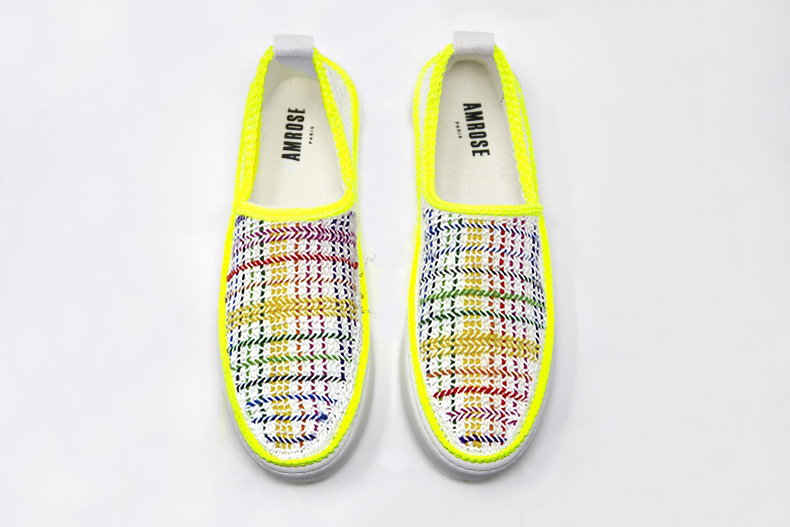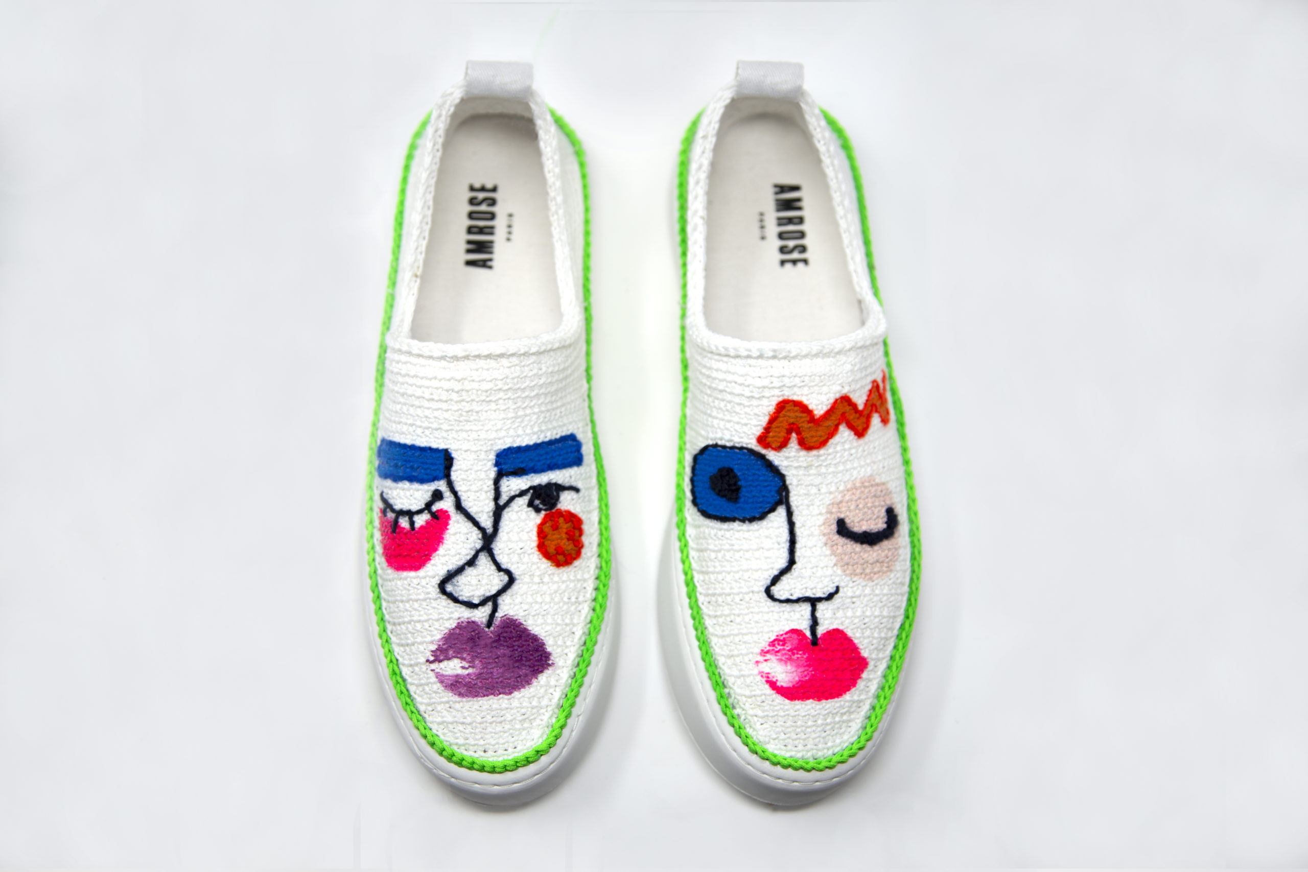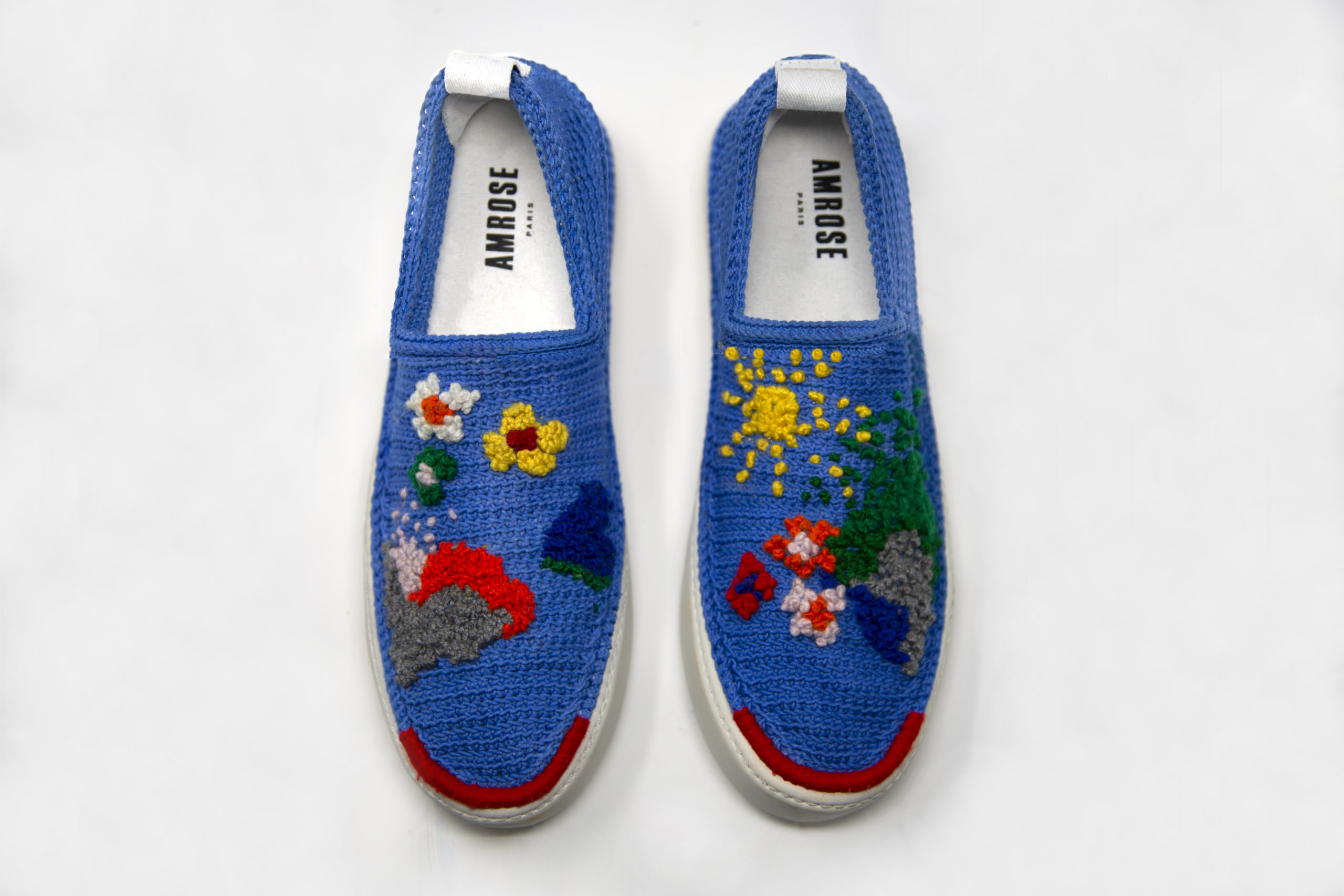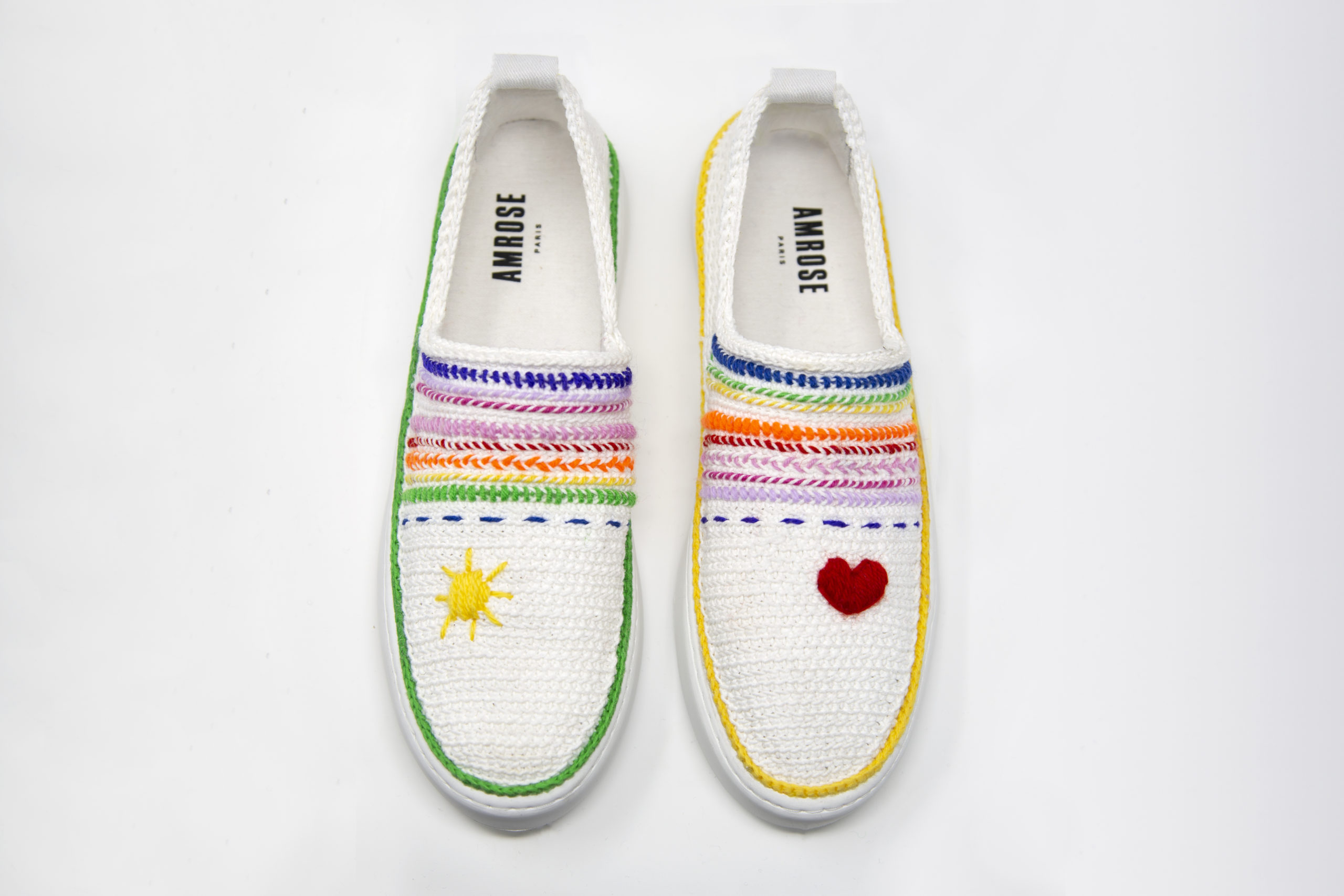 Amrose y dévoilera en avant-première sa collection printemps/été 21. Cette saison, la marque de baskets en crochet faites main se pare de motifs rêvés ensoleillés, comme des toiles vierges qui s’animent au fil des broderies de laine de couleurs. Les bordures des chaussures se maquillent de fils de couleurs vives, le cadre du tableau devient un élément central de l’œuvre et laisse entrevoir un visage, un paysage ou même un dessin abstrait.