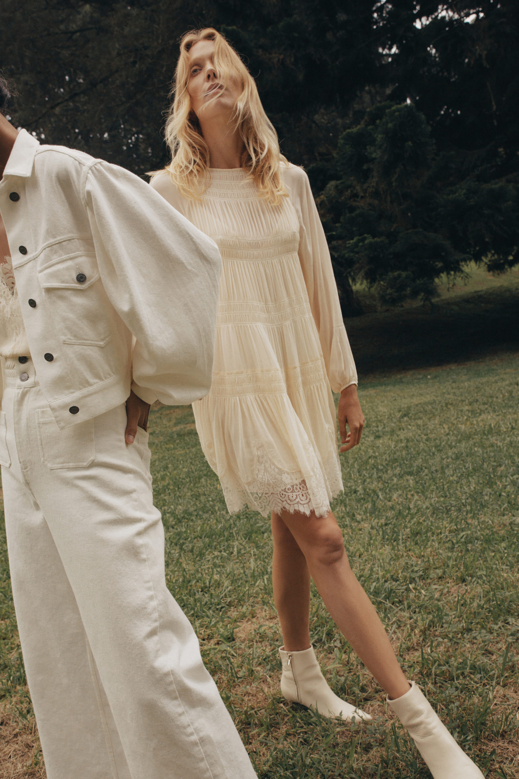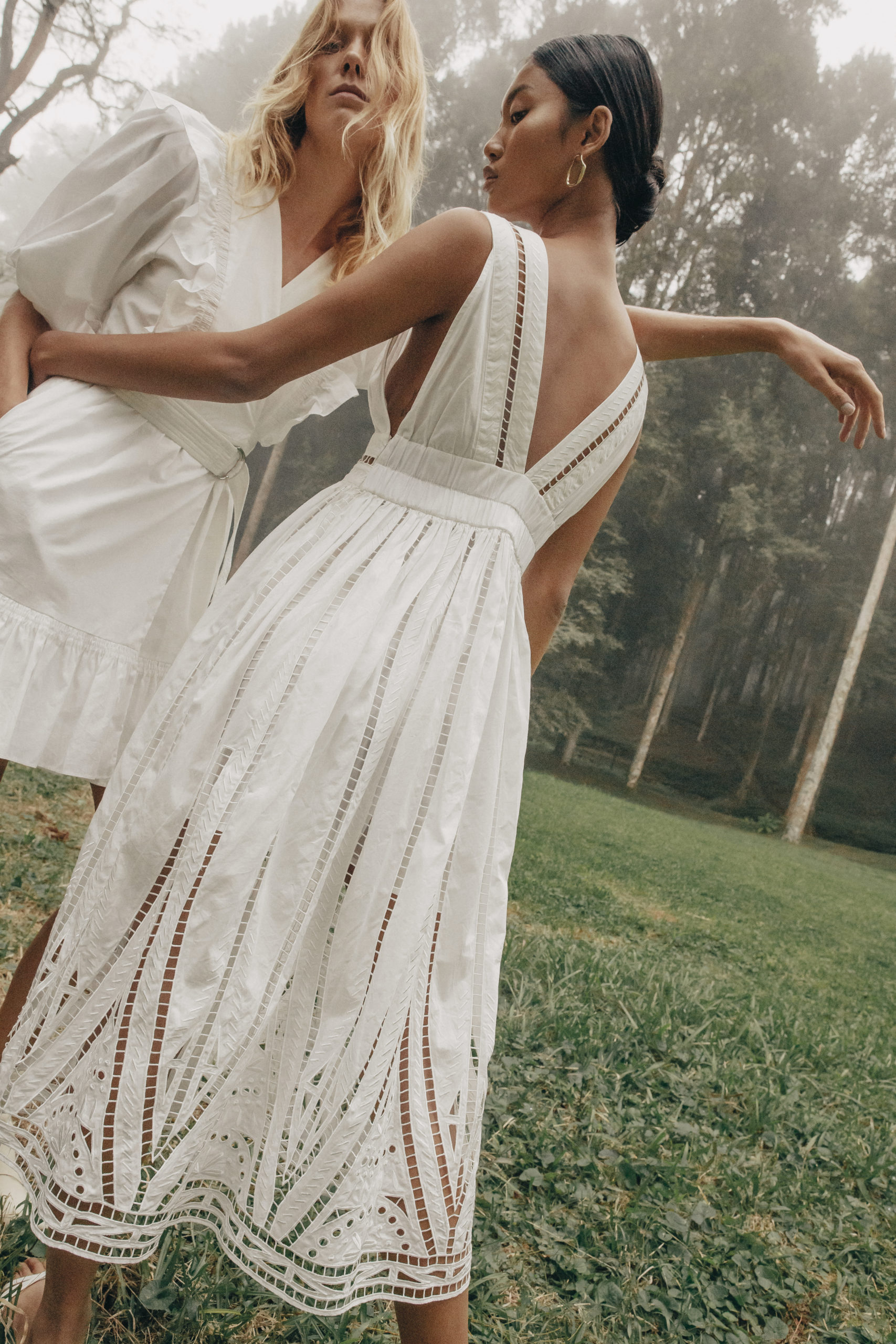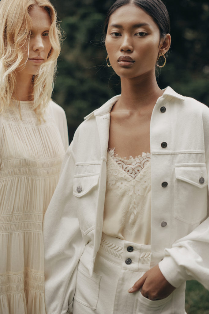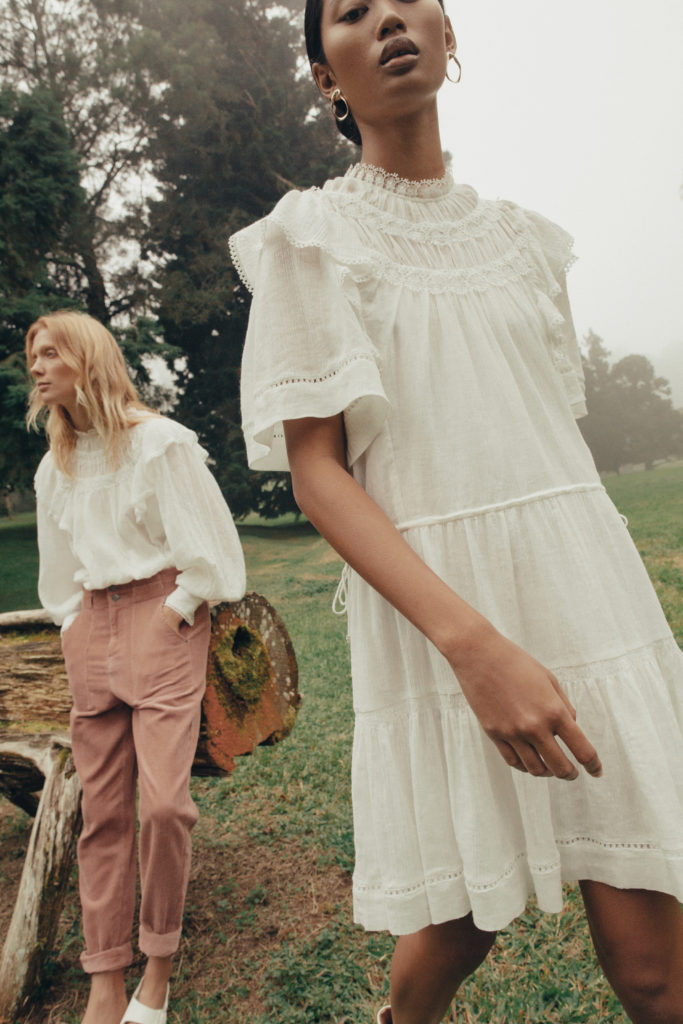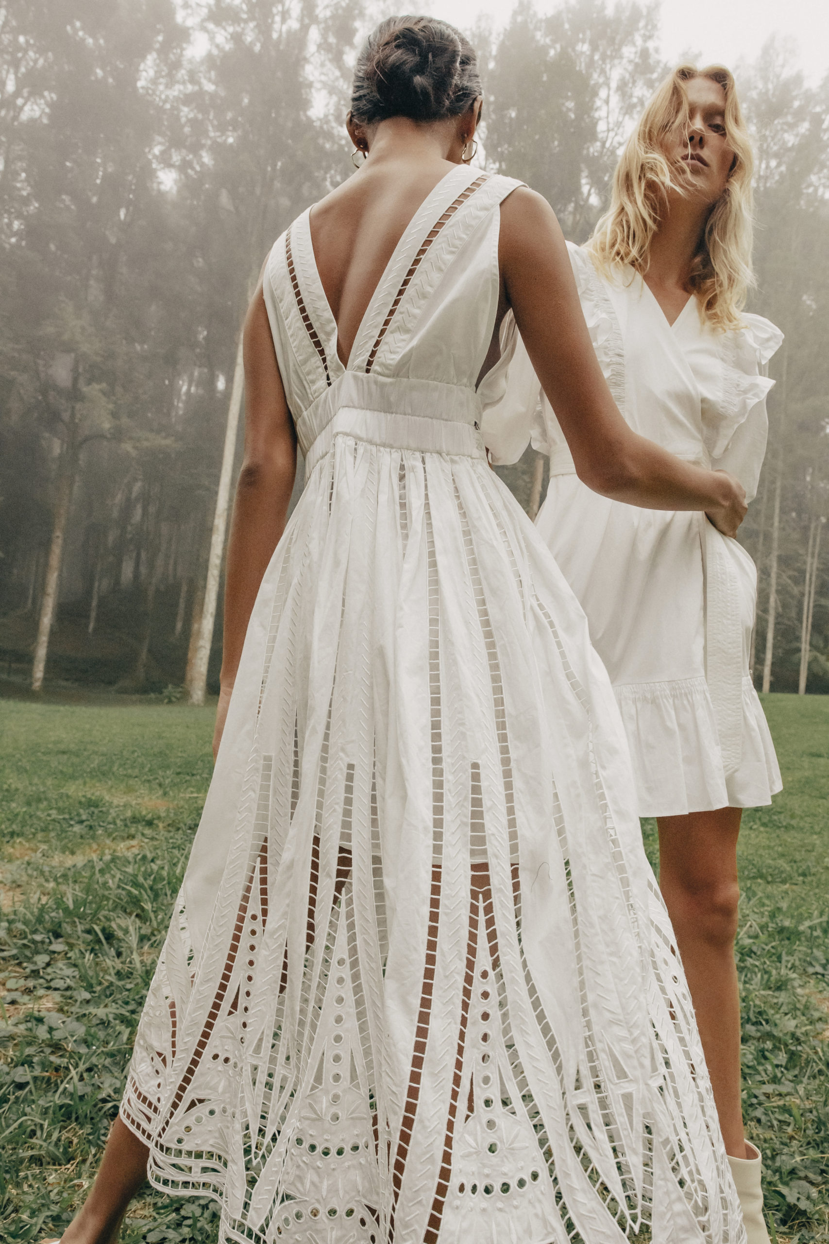 Les motifs, les couleurs pastel, les coupes légères des robes et des tops sont les pièces parfaites pour les chaudes journées d’été ; les robes longues dos nu avec leurs détails à volants sont les pièces indispensables pour soirées plus élégantes d’été.
