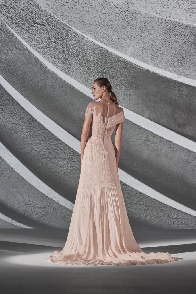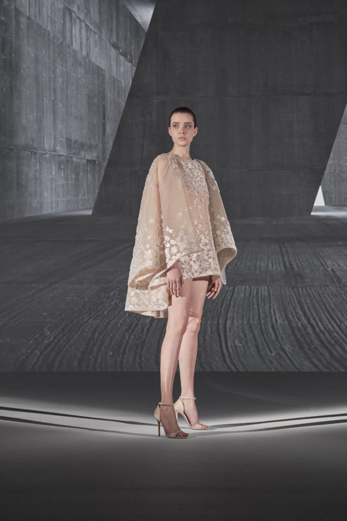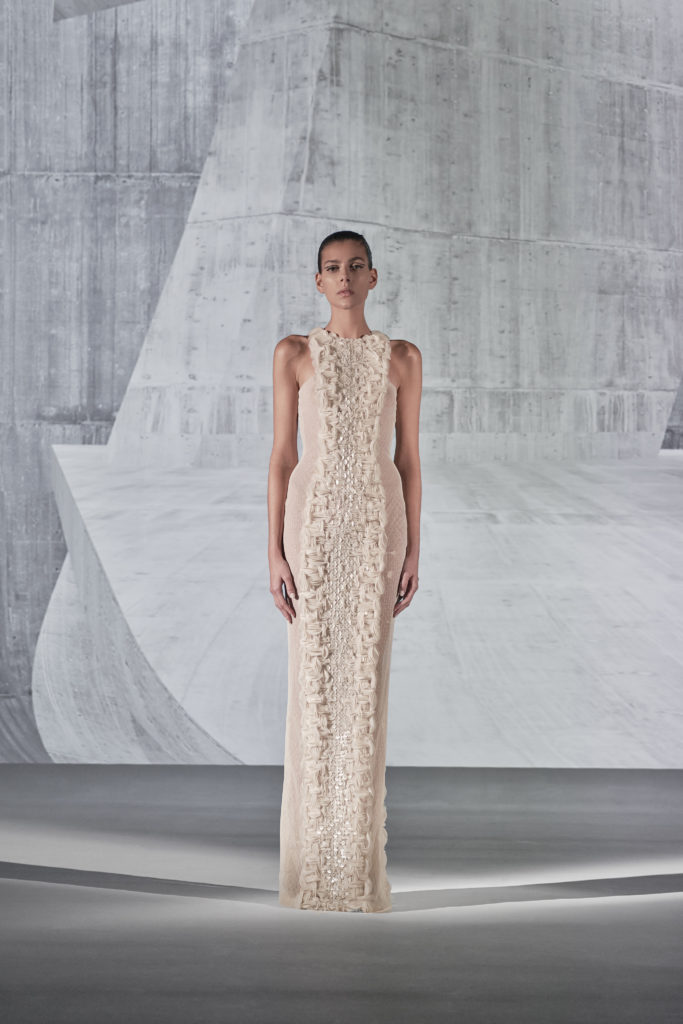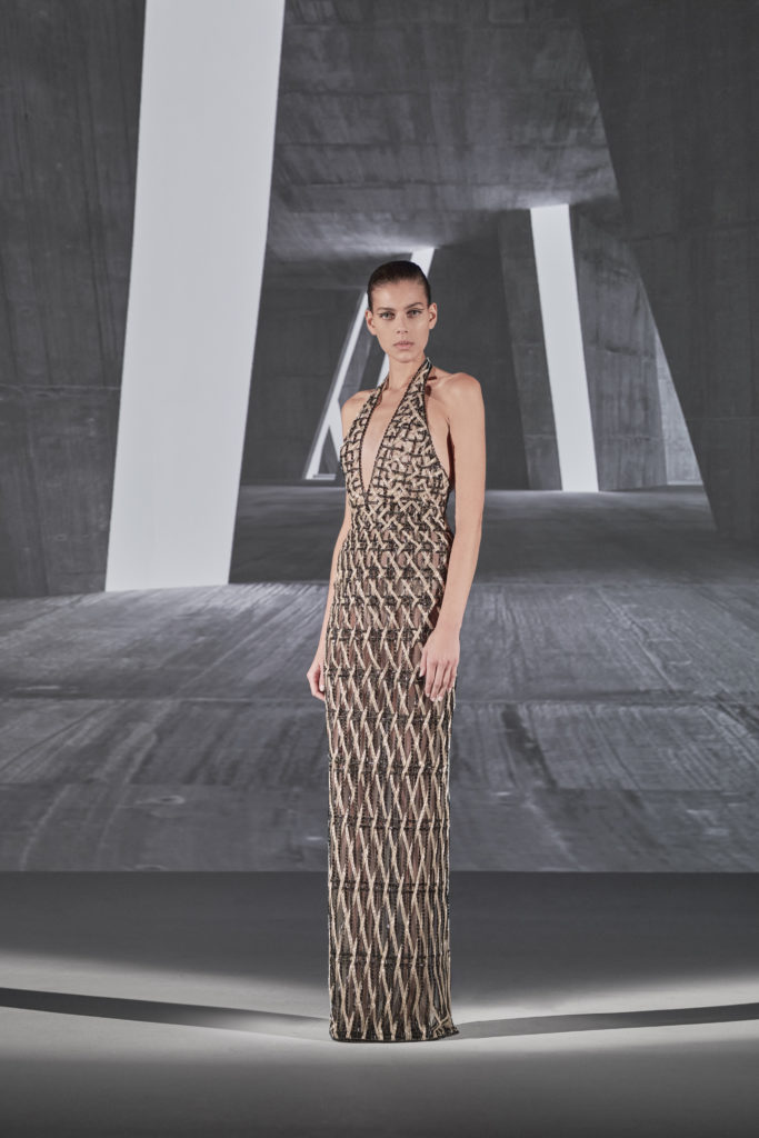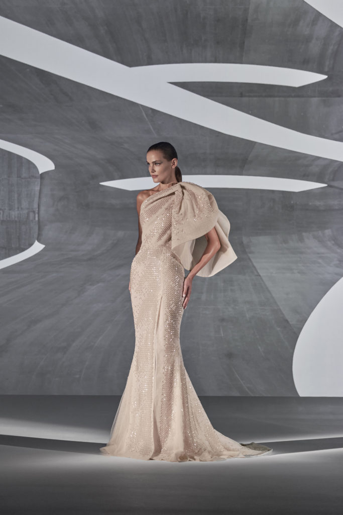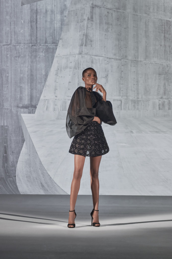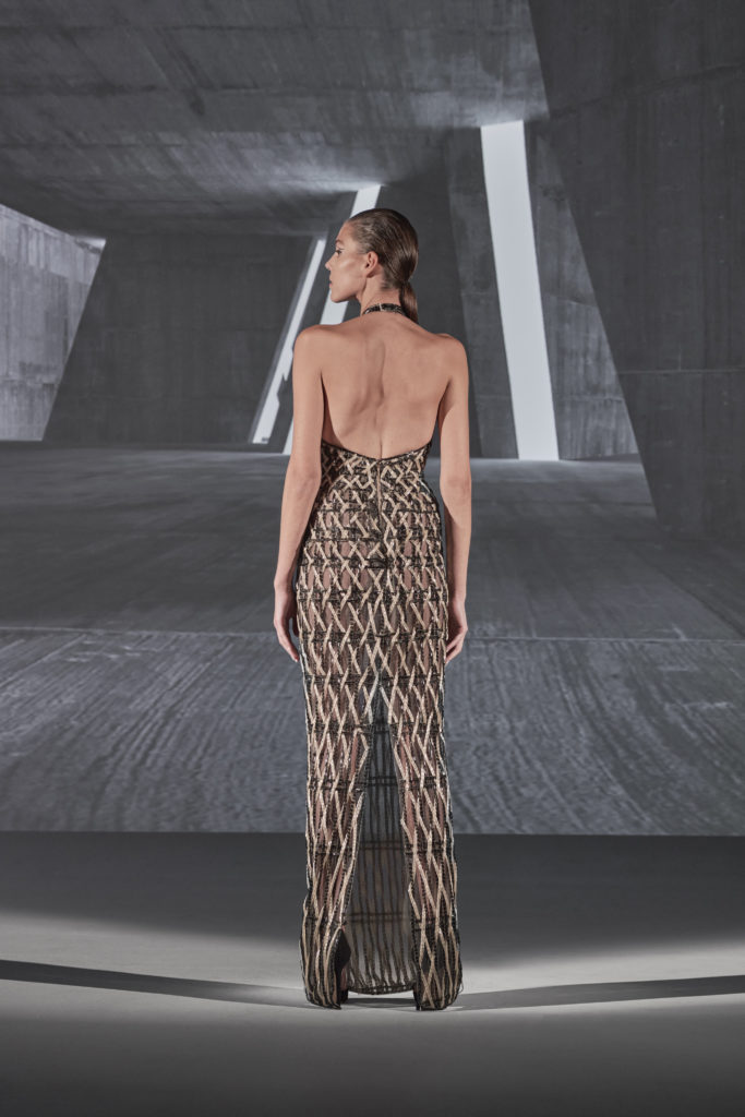 Evoquant une ambiance magique de nostalgie, Rami Al Ali imagine une collection qui parle de son héritage syrien. Pour sa collection de couture printemps/été 2021, Al Ali réfléchit à l’ambiance magique d’une soirée à Damas. Dix-huit looks au total, tous magnifiquement alliés pour illustrer sa vision de la saison. « Je ne sais pas si c’est un fantasme orchestré par mon imagination ou l’écho d’un vieux souvenir d’enfance, mais cela me revient toujours aussi fort, aussi réel, aussi vif et très nostalgique ». Rami Al Ali raconte. « Une soirée à Damas, pour moi, c’est une brise fraîche qui flotte avec un doux arôme de jasmin. Des murmures apaisants derrière les moucharabiehs en bois de rose, mêlés au gargouillement de la fontaine de la cour et aux ombres créées par la pleine lune, comme un sanctuaire serein – profondément inspirant et si paisible ». La collection propose une palette raffinée de tons chauds de beige, de champagne et de tons poudrés entremêlés de noirs lunaires. Rami Al Ali manipule avec tact les silhouettes en projetant habilement des ombres sur le corps à travers de solides tissus opaques – coupés pour mettre en valeur les lignes architecturales. Des paillettes scintillantes, des perles de cristal et des tissus de satin liquide donnent vie à la collection, reflétant la lumière à chaque mouvement. La collection présente de volumineuses robes de cérémonie, d’élégantes robes longues et des jumpsuits surprenants, travaillés couture. D’autres pièces jouent sur des formes architecturales exagérées, comme des volants, des capuches et des nœuds abstraits. Les tissus classiques de la haute couture, comme le satin et la soie, ont été soigneusement sélectionnés tandis que les volumes et les dimensions extravagantes restent toujours caractéristiques des récentes collections de Rami Al Ali.