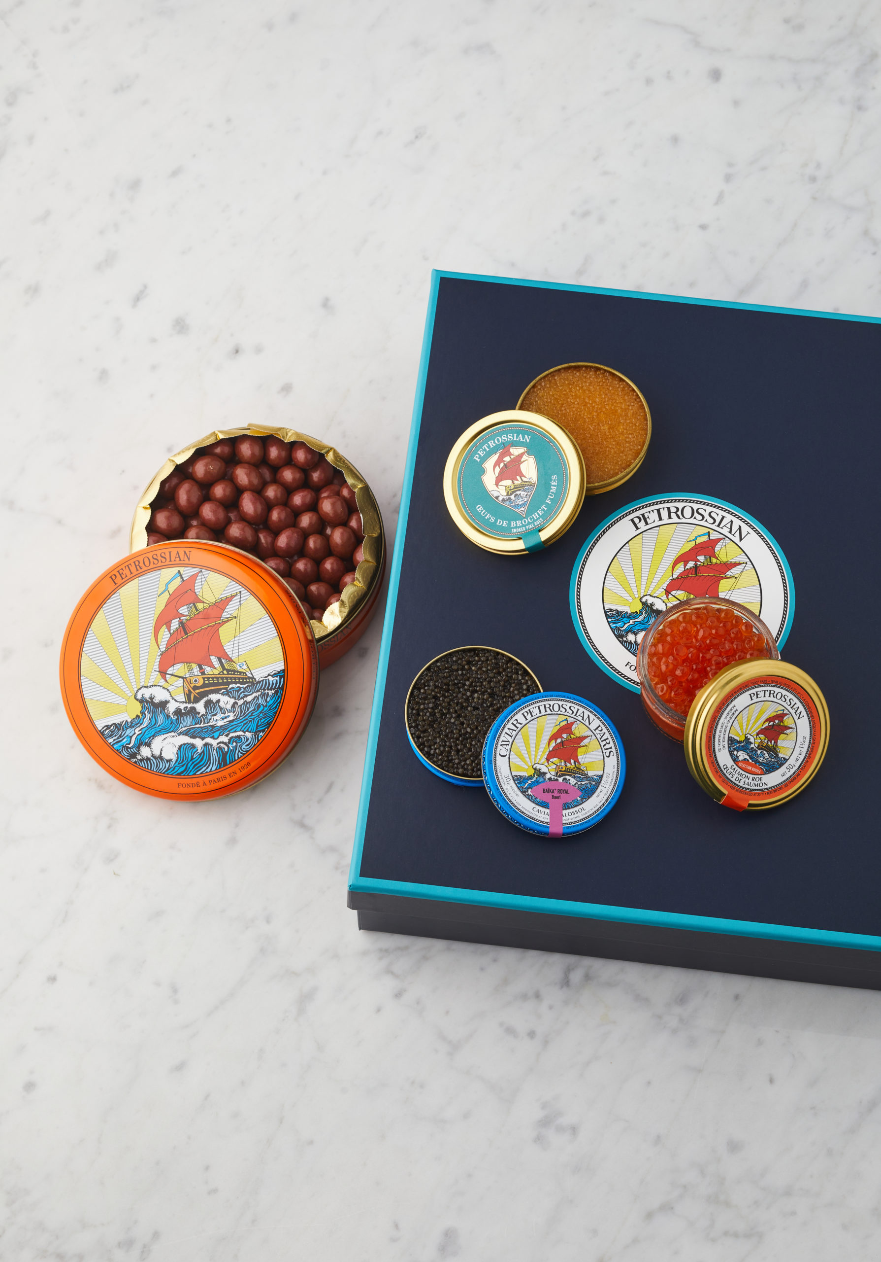 En ce sens, la maison Petrossian a créé deux coffrets autour de ses oeufs emblématiques : oeufs de saumon, caviar,oeufs de brochets, mais aussi de délicieux petits oeufs au chocolat et caramel … à partager pour un moment unique à- deux ou dans une seconde version, avec un kit de décoration d’oeufs pour amuser les enfants et ainsi rivaliser decréativité en famille !