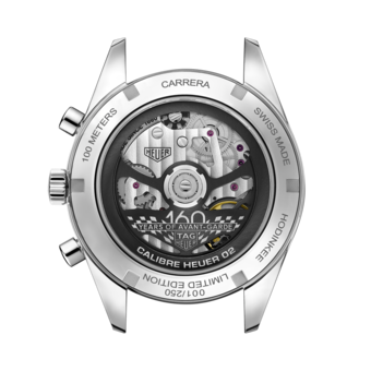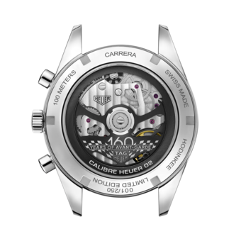 Afin de positionner le guichet de date iconique à 9 heures, les horlogers experts de TAG Heuer ont retravaillé le mouvement du chronographe pour l’adapter à cette fonction. Ce calibre moderne, avec son architecture intégrée, son impressionnante réserve de marche de 80 heures et son profil plus fin, est visible grâce à un fond de boîtier en verre TAG Heuer d’inspiration vintage Carrera. Le verre fortement bombé qui recouvre le cadran évoque l’aspect des revêtements en plexiglas des montres plus anciennes, ce qui lui donne un aspect vintage, tout comme les quelques touches de design évocatrices sur les bords de la glace saphir biseautée autour de la lunette. Une autre particularité est la dédicace célébrant le 160ème anniversaire au niveau de la masse oscillante. Avec son boîtier de 39 mm en acier inoxydable poli et son bracelet en cuir noir, la nouvelle TAG Heuer Carrera ‘Dato 45’ HODINKEE Limited Edition se pose confortablement sur le poignet, avec un équilibre parfait entre taille et lisibilité. Lorsqu’ils sont utilisés, les poussoirs du chronographe n’offrent qu’une résistance réduite, garantissant ainsi une expérience tactile d’exception. L’aiguille des secondes du chronographe balaye élégamment le cadran, grâce à la roue à colonnes et à l’embrayage vertical du Calibre Heuer 02, et l’aiguille revient immédiatement à sa position à 12 heures lorsqu’elle est réinitialisée.