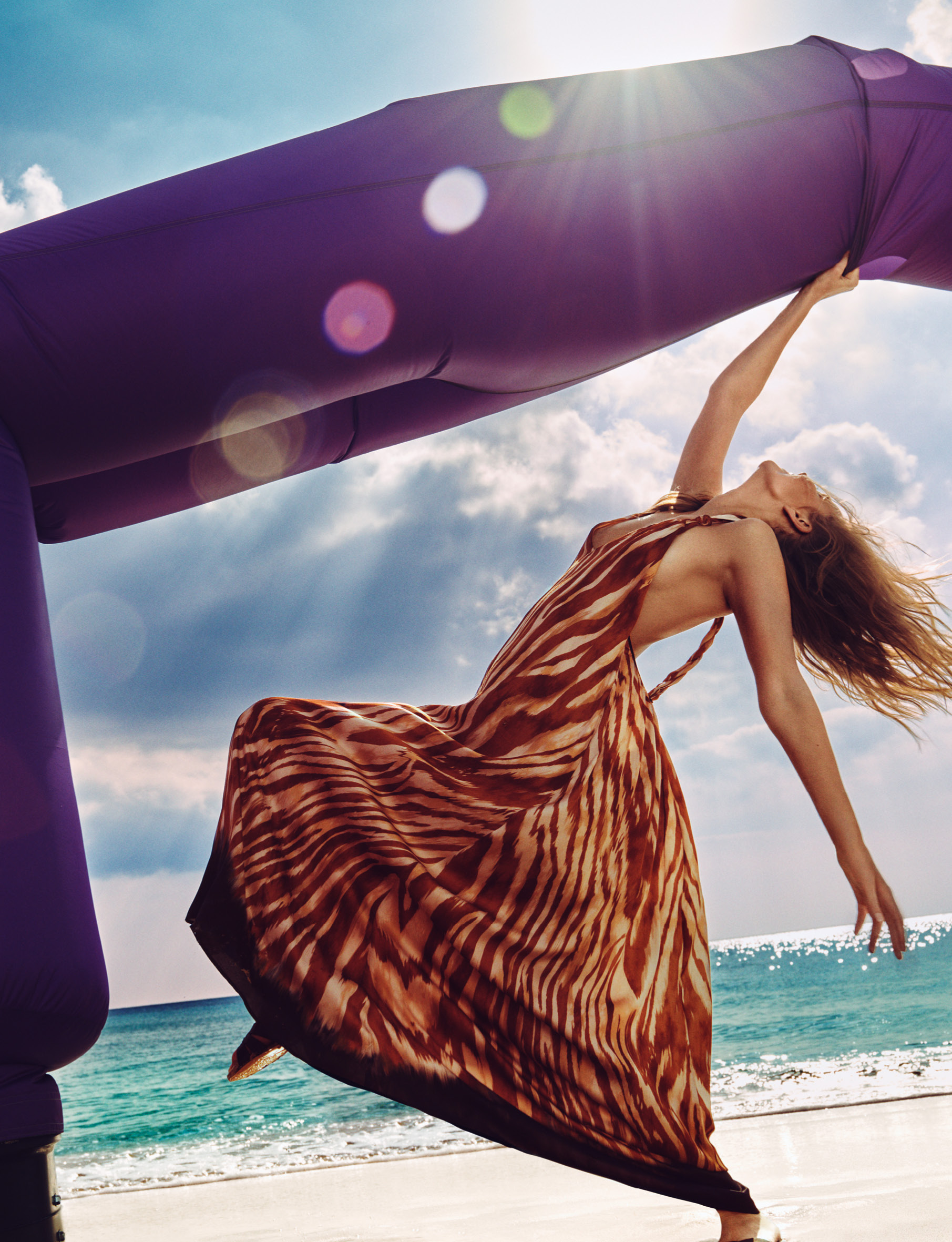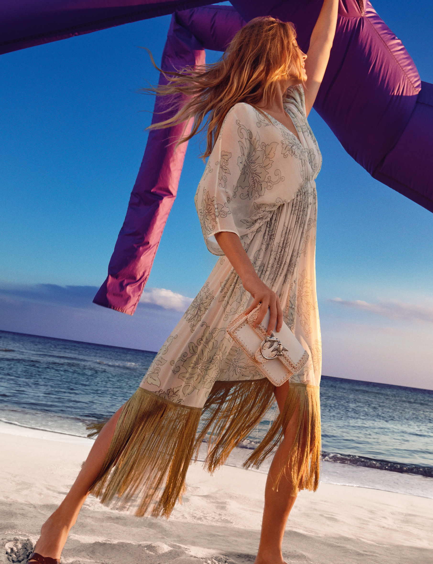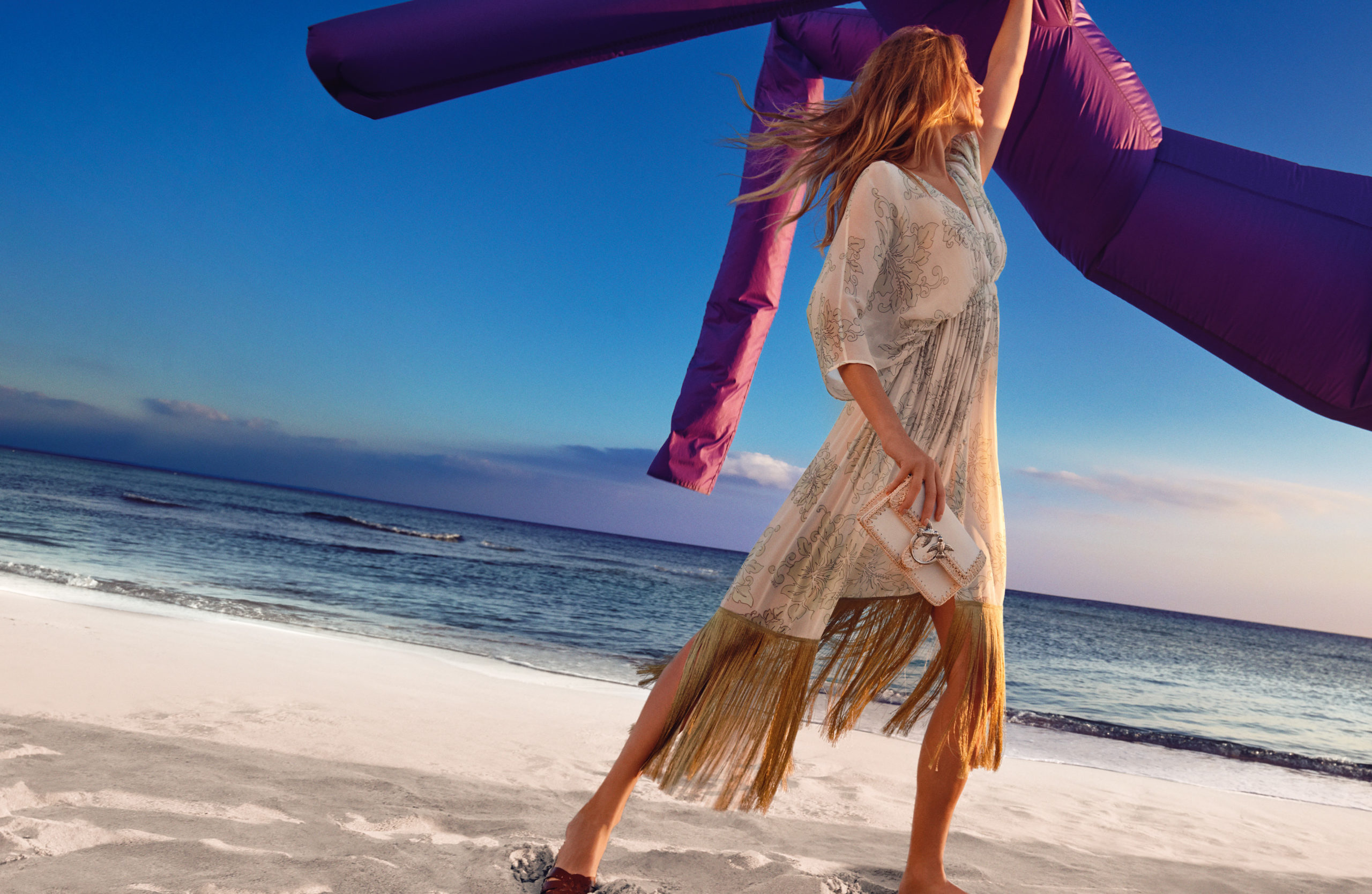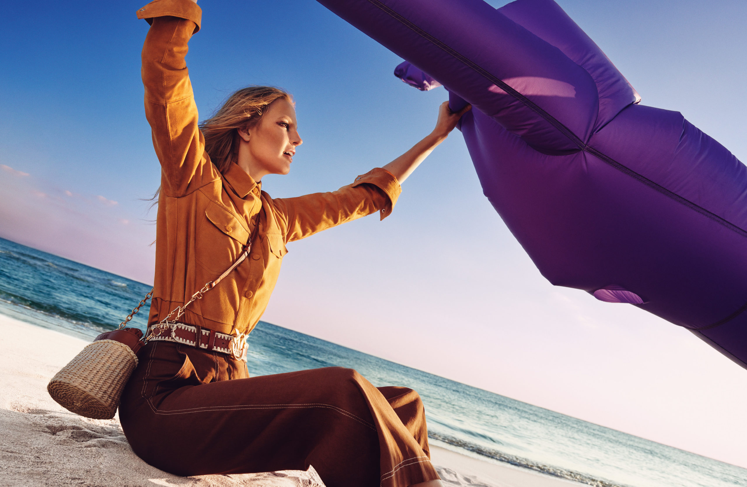 Le moment est venu de s’amuser, comme le fait notre mannequin Elisabeth Erm et « Peter Dance », cet invité violet, sur l’une des plus belles plages d’Italie, sous la chaleur du soleil, à travers l’objectif du photographe Federico De Angelis, avec le stylisme de Carola Bianchi pour la direction créative de Riccardo Ruini.