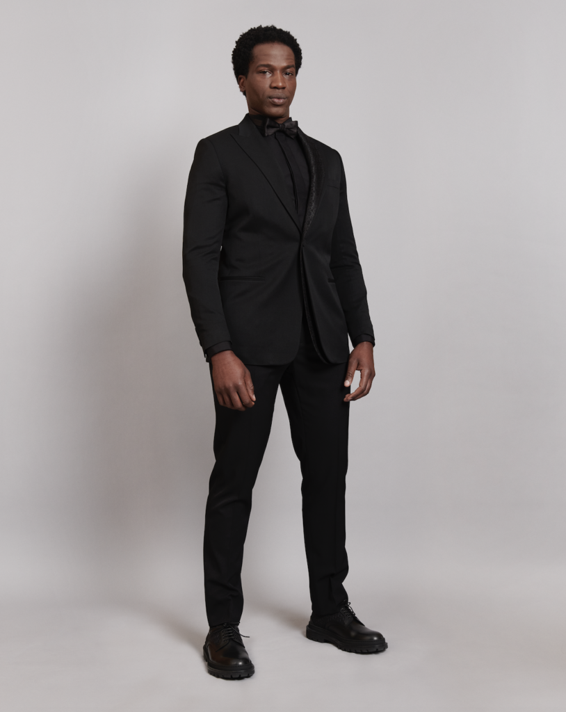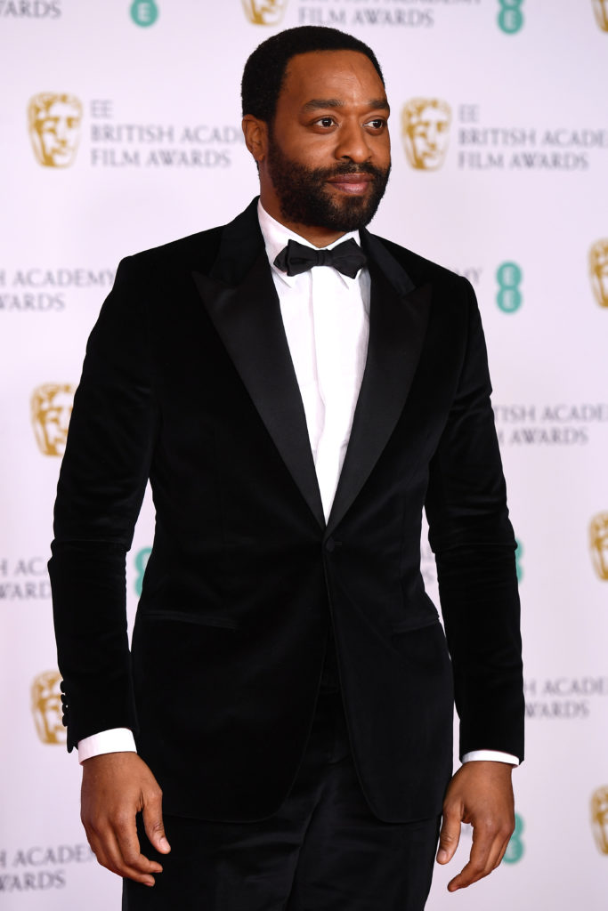 Chiwetel Ejiofor wore a Dior men’s collection black velvet peak lapel tuxedo, a classic white cotton shirt and a black silk bow tie.