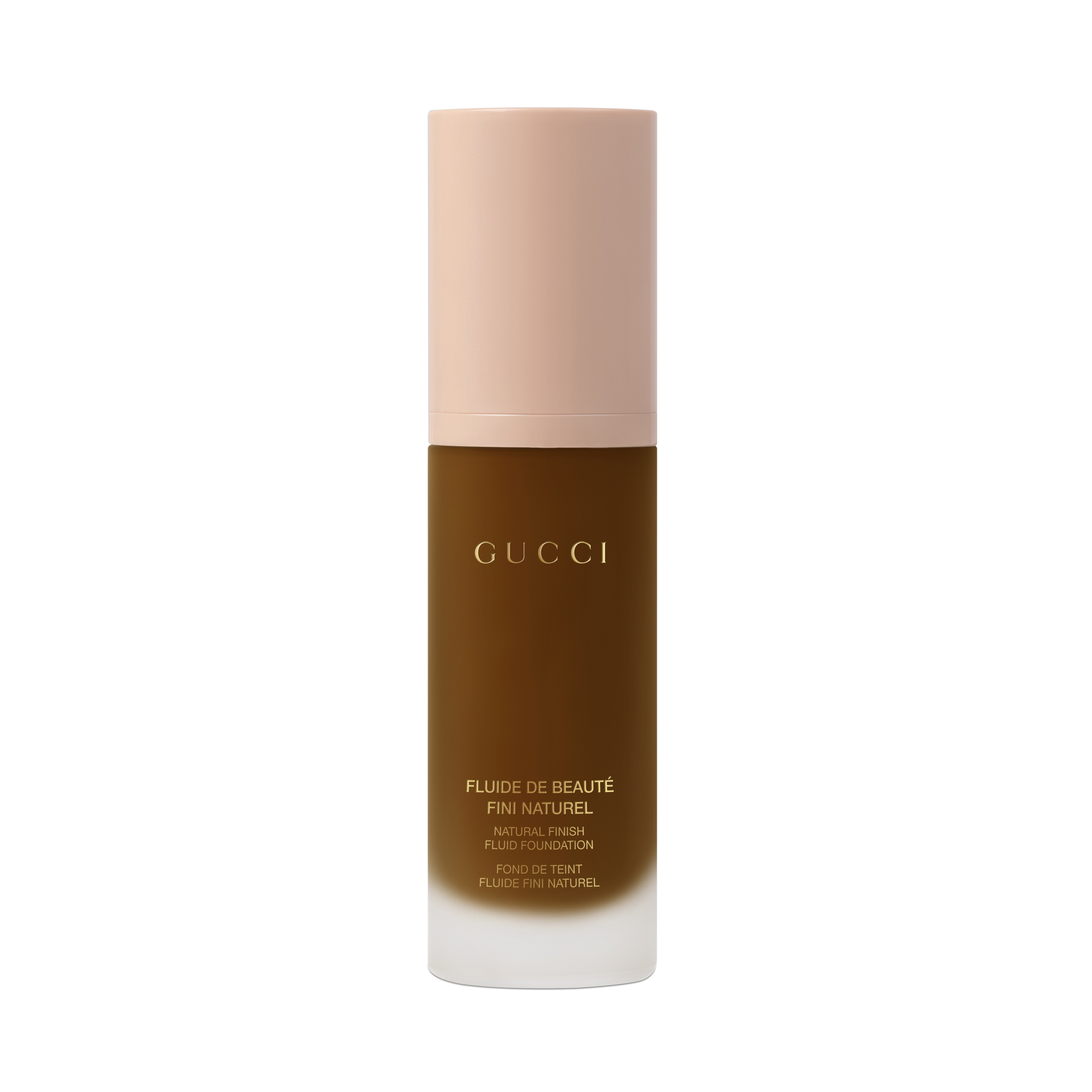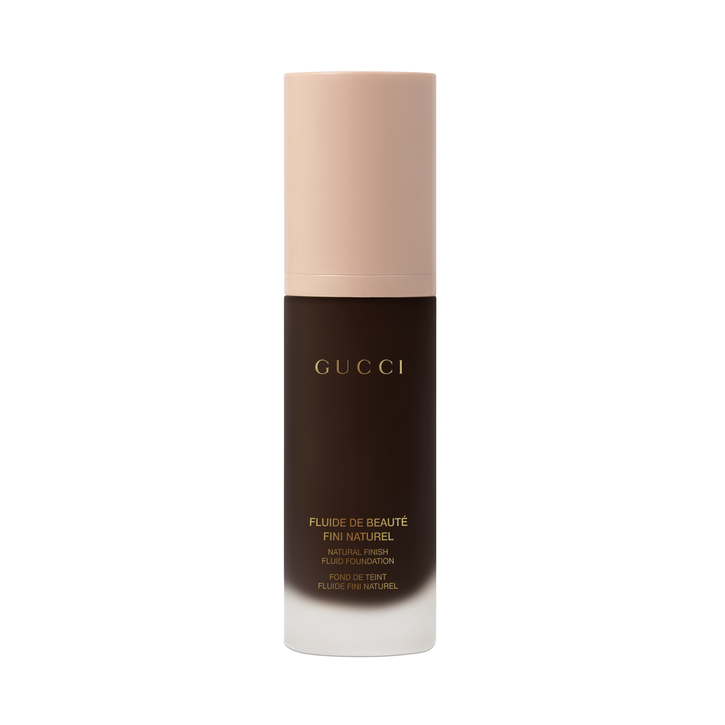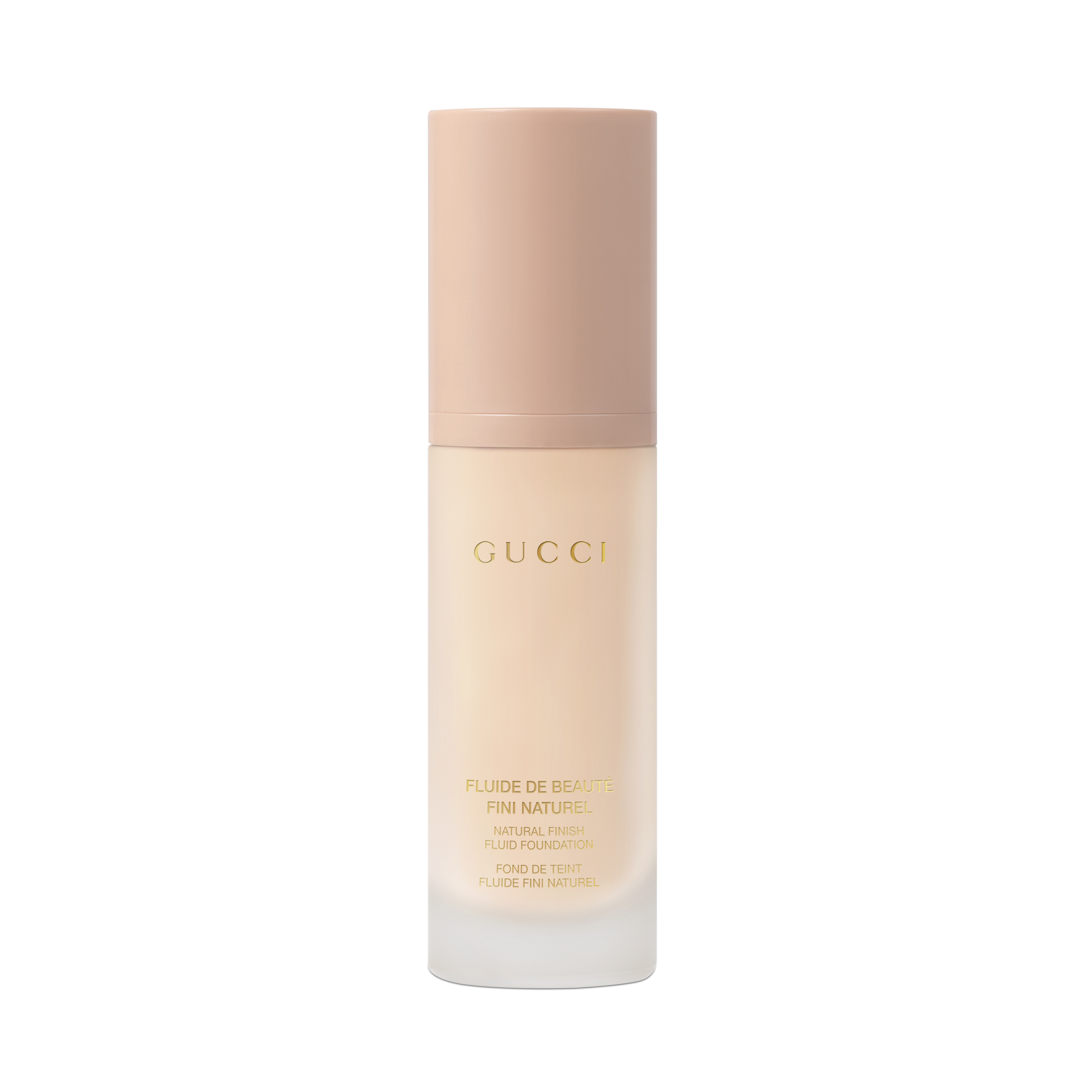 Des nuances très claires pour les sous-tons rosés aux plus foncées pour les palettes neutres, Fluide De Beauté Fini Naturel est disponible en 40 teintes, pour s’adapter à toutes les carnations et à tous les types de peau. Logé dans un flacon épais transparent en verre dépoli et coiffé d’un bouchon rose pâle, il est orné du lettrage emblématique de Gucci.