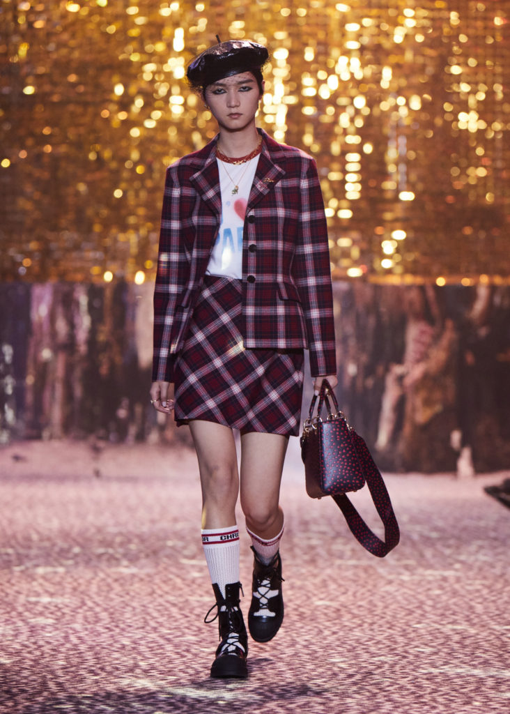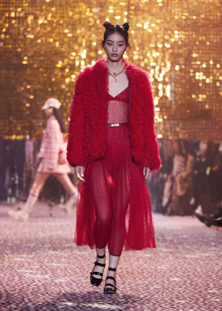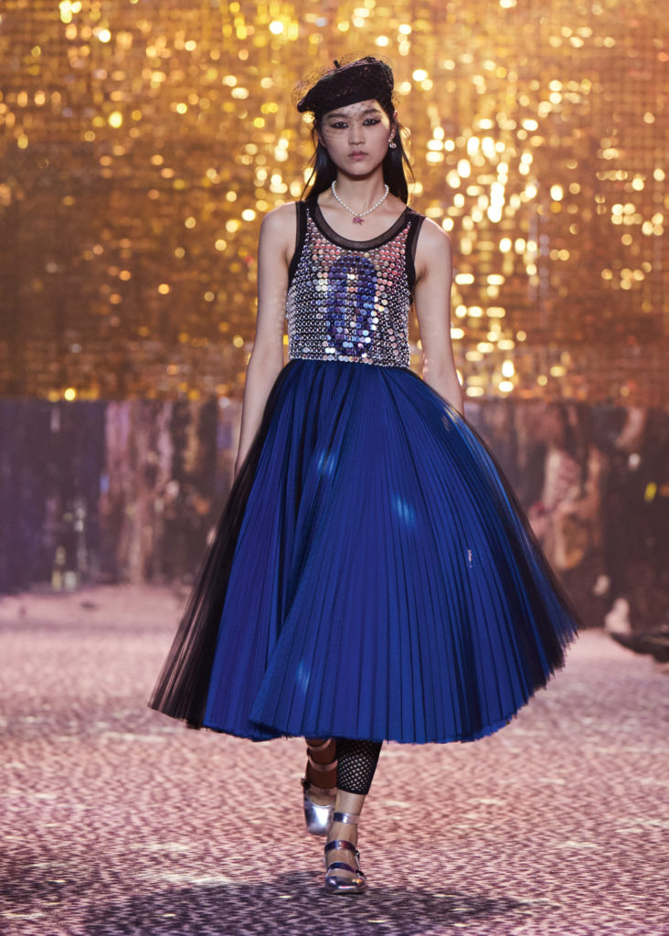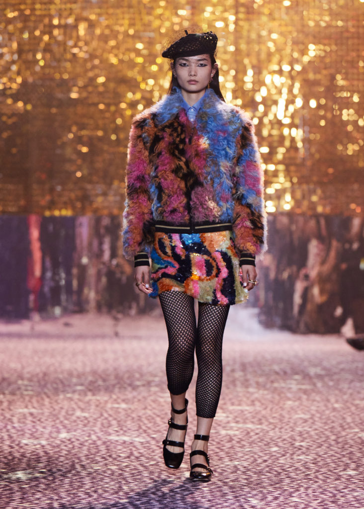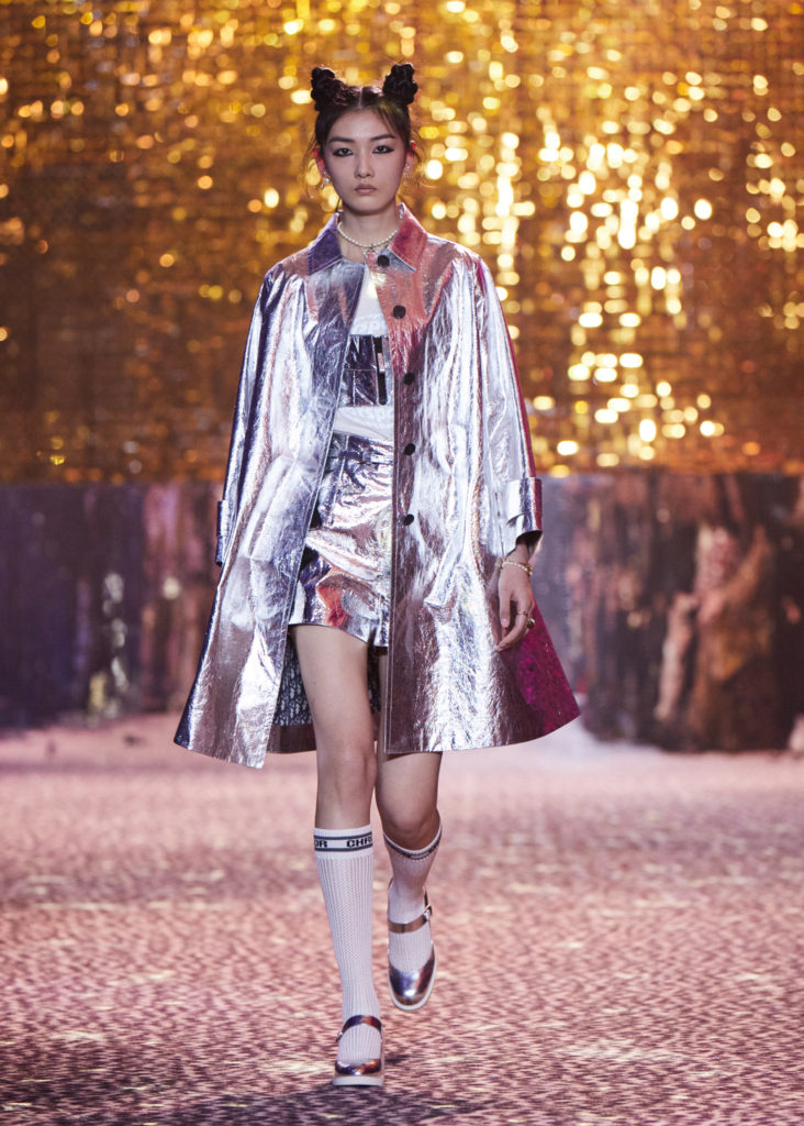 Pour Maria Grazia Chiuri, dévoiler la ligne Fall 2021 à Shanghai*, au Long Museum West Bund, est l’occasion d’insuffler à ses silhouettes une force visuelle en mouvement, une nouvelle énergie. Une célébration de la créativité de la Maison et de la puissance des cultures du monde. S’exprimant dans des couleurs acidulées, des jeux de transparences, des reflets brillants ou argentés, les looks célèbrent une esthétique pop. Les broderies sont sublimées de paillettes géantes, tels les disques miroirs rappelant les boules à facettes qui constellent le décor, illuminant quatre robes inédites. Invitation à la liberté, le motif léopard – qui habille le catwalk – s’épanouit sur de nombreuses pièces, dont l’iconique veste Bar. Une série de modèles exclusifs imaginés pour ce défilé, parés de nuances fluo ou rouge – « la couleur de la vie » selon Monsieur Dior –, enrichissent également la collection présentée au rythme de la composition musicale de Giorgio Moroder**. Ultimes surprises, la chanteuse Joey Yung et le groupe de rock chinois Black Panther livrent des performances live d’exception.