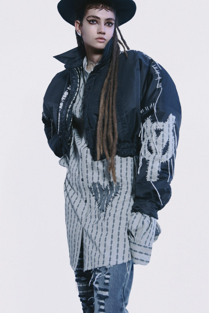 In a world oppressed by many points of view the Creative Director Angelo Cruciani has thought of a poetic and biting GRUNGE streetwear , where defects and decorations are inverted, where holes and unstitching become an essential part. Perfection is ready to change its rules