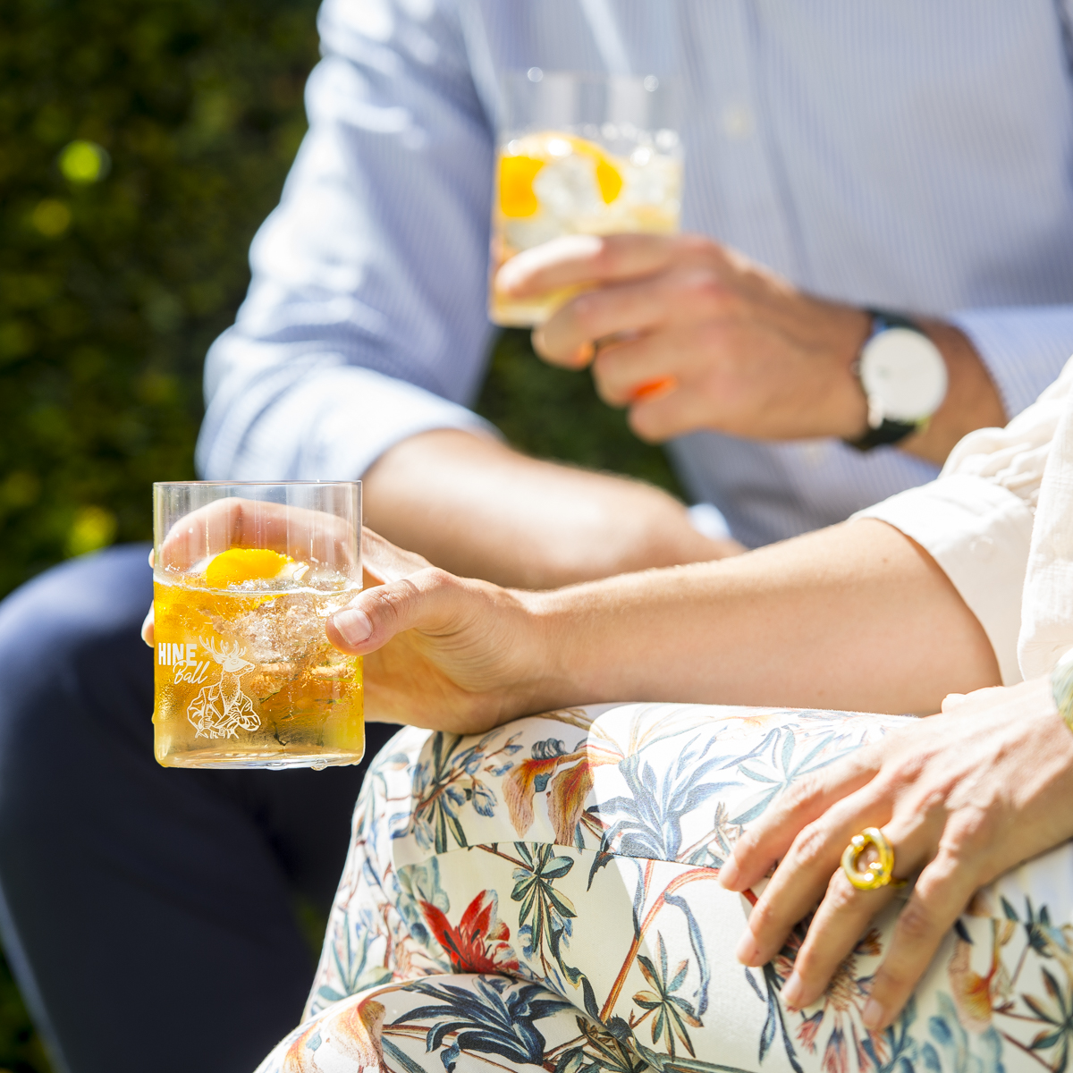 La Maison Hine, fervente adepte des moments de partage entre amis, présente son apéritif signature : le Hine Ball. Une recette rafraîchissante en deux ingrédients pour une réalisation facile derrière un bar ou à la maison : 5cl de H by Hine sont allongés de ginger ale, sur glace. On y plonge un zeste d’orange -et une tranche de gingembre pour les plus aventureux- et le tour est joué !