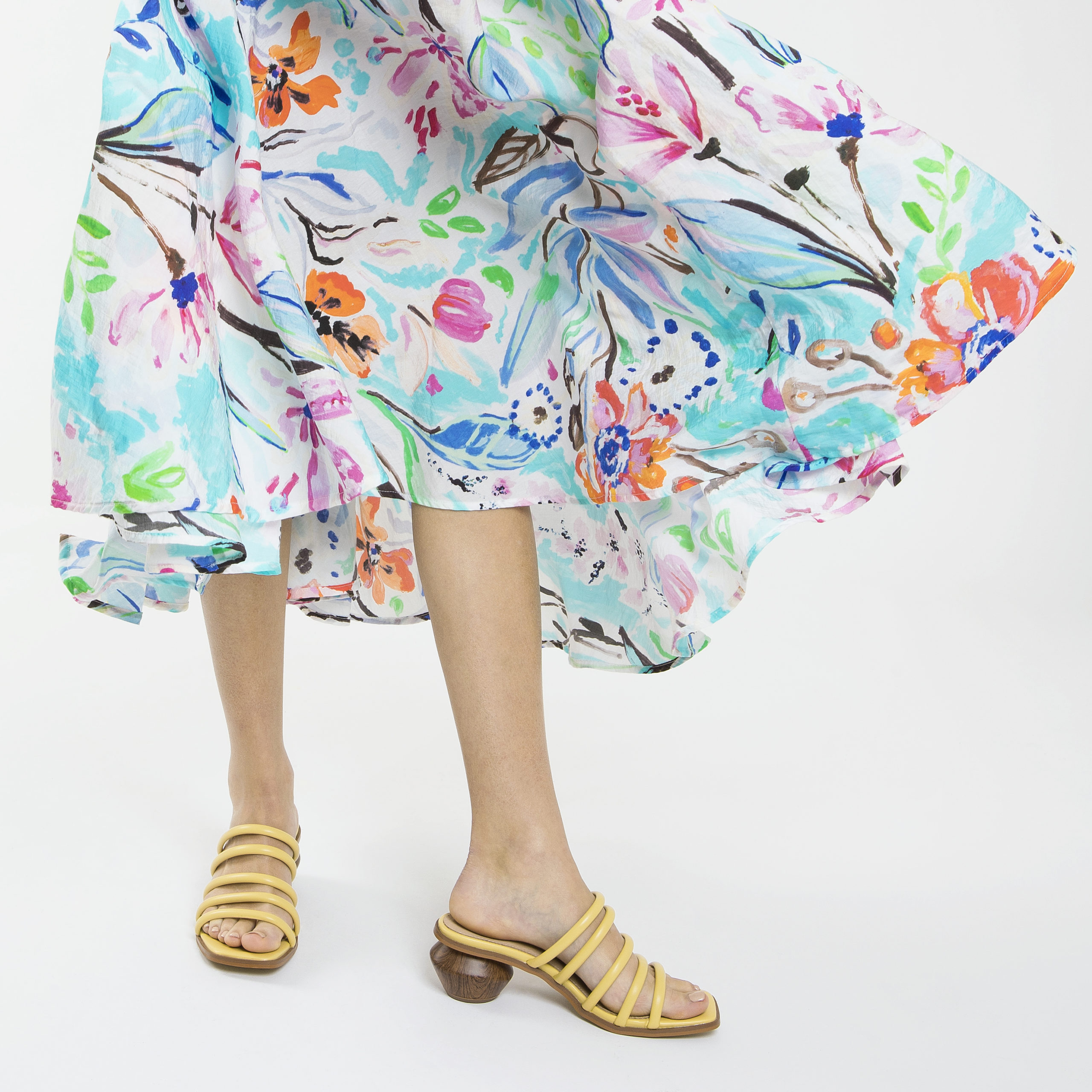 Cette saison, Vanessa Wu mise sur le minimaliste mais insiste sur les détails ! Une collection qui se place tel un oxymore, caractérisée par une utilisation subtile des matières, jonglant entre naturel, couleurs estivales et imprimés. On y retrouve ainsi une multiplicité de talons sculptés, des pièces graphiques et en mouvement, le tout mêlé à un air de Provence. Des souliers à l’image des femmes qui les portent, pour ce printemps été 2021.