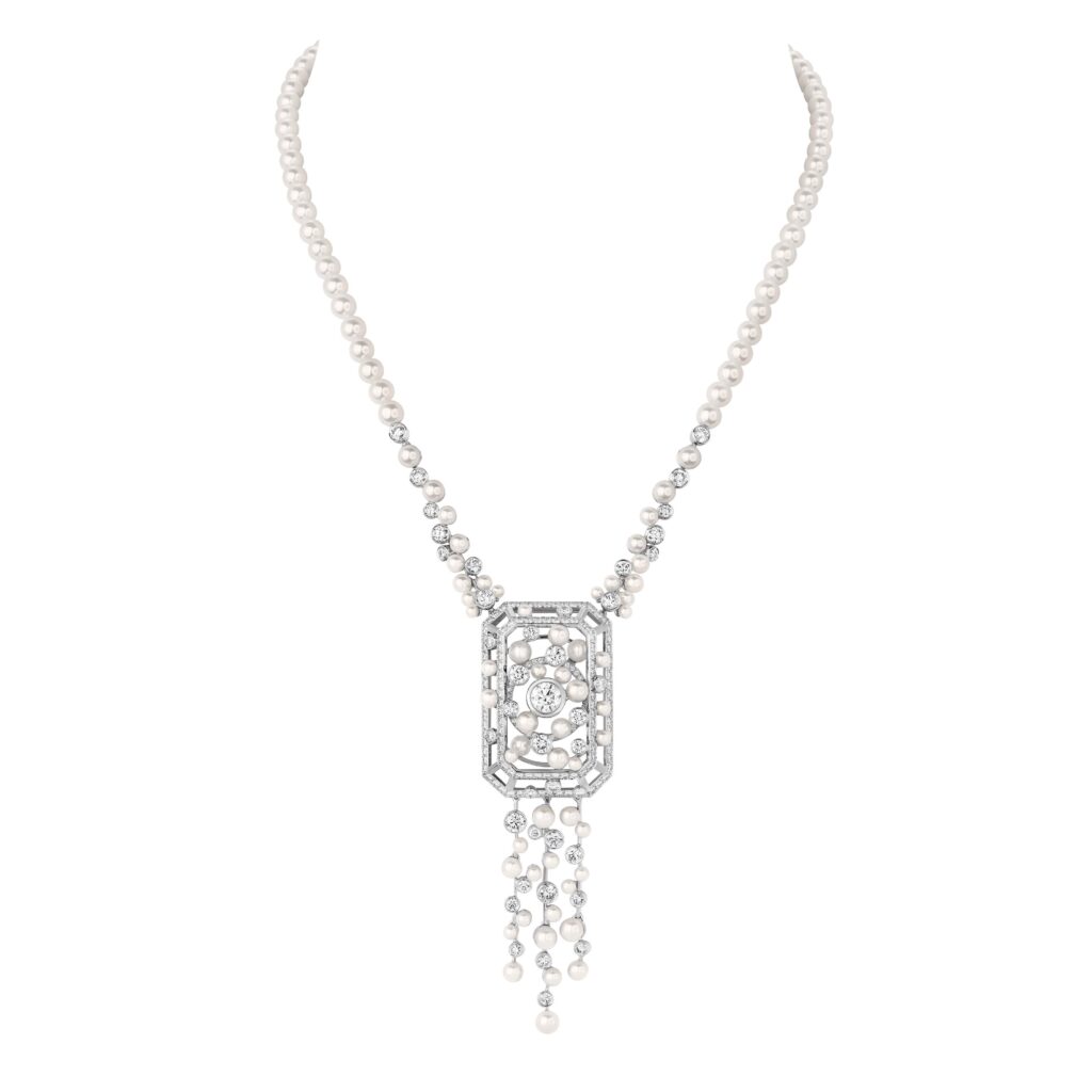 « Gabrielle Chanel a abordé ces deux univers avec les mêmes valeurs visionnaires, privilégiant l’audace et la quête de l’excellence. J’ai voulu retrouver ce geste créatif dans cette collection, conçue comme un cheminement dans les méandres de l’âme du parfum N°5, de l’architecture du flacon à l’explosion olfactive de la fragrance. Le point d’orgue de cette collection inédite est un collier emblématique et exceptionnel serti d’un diamant taillé sur œuvre de 55.55 carats. »