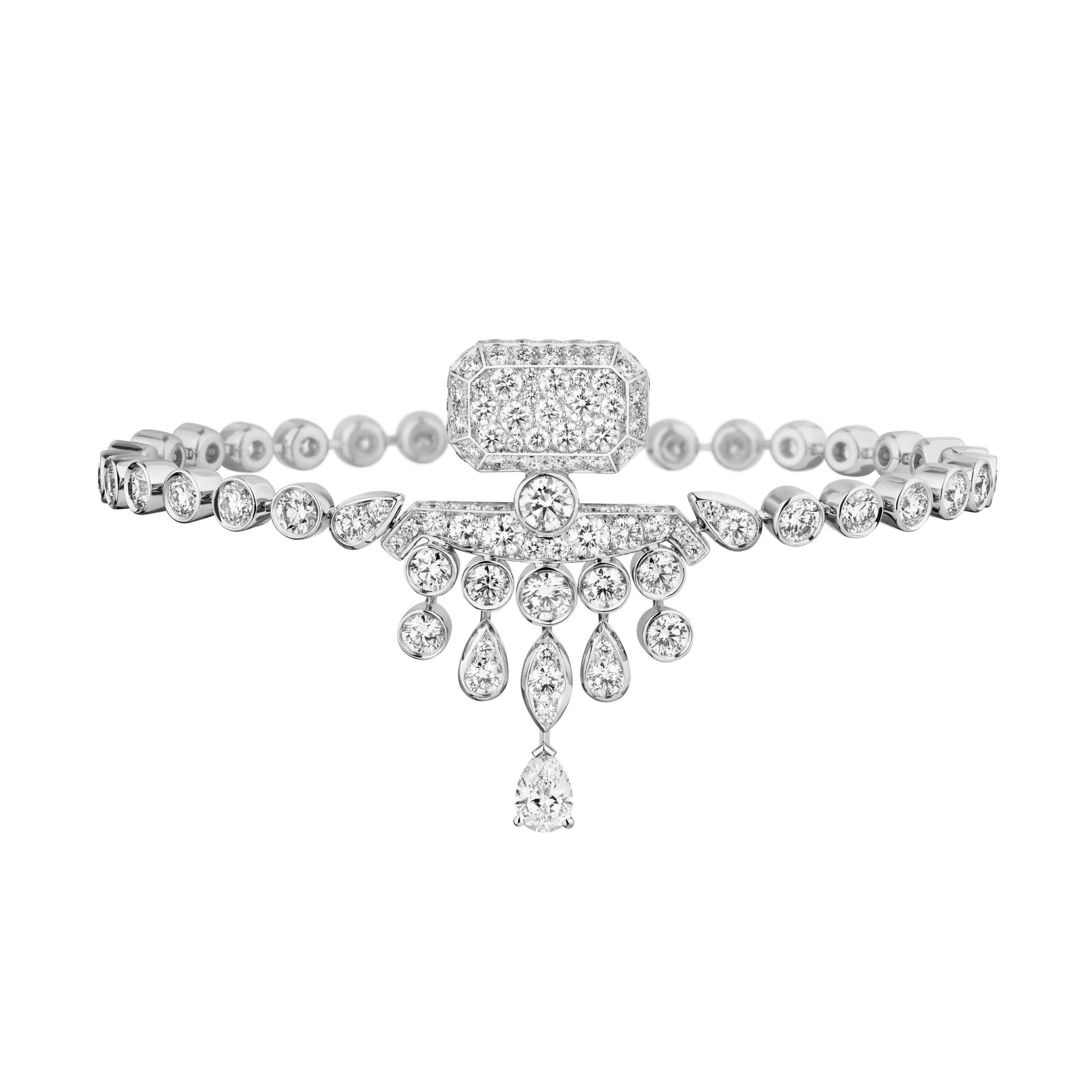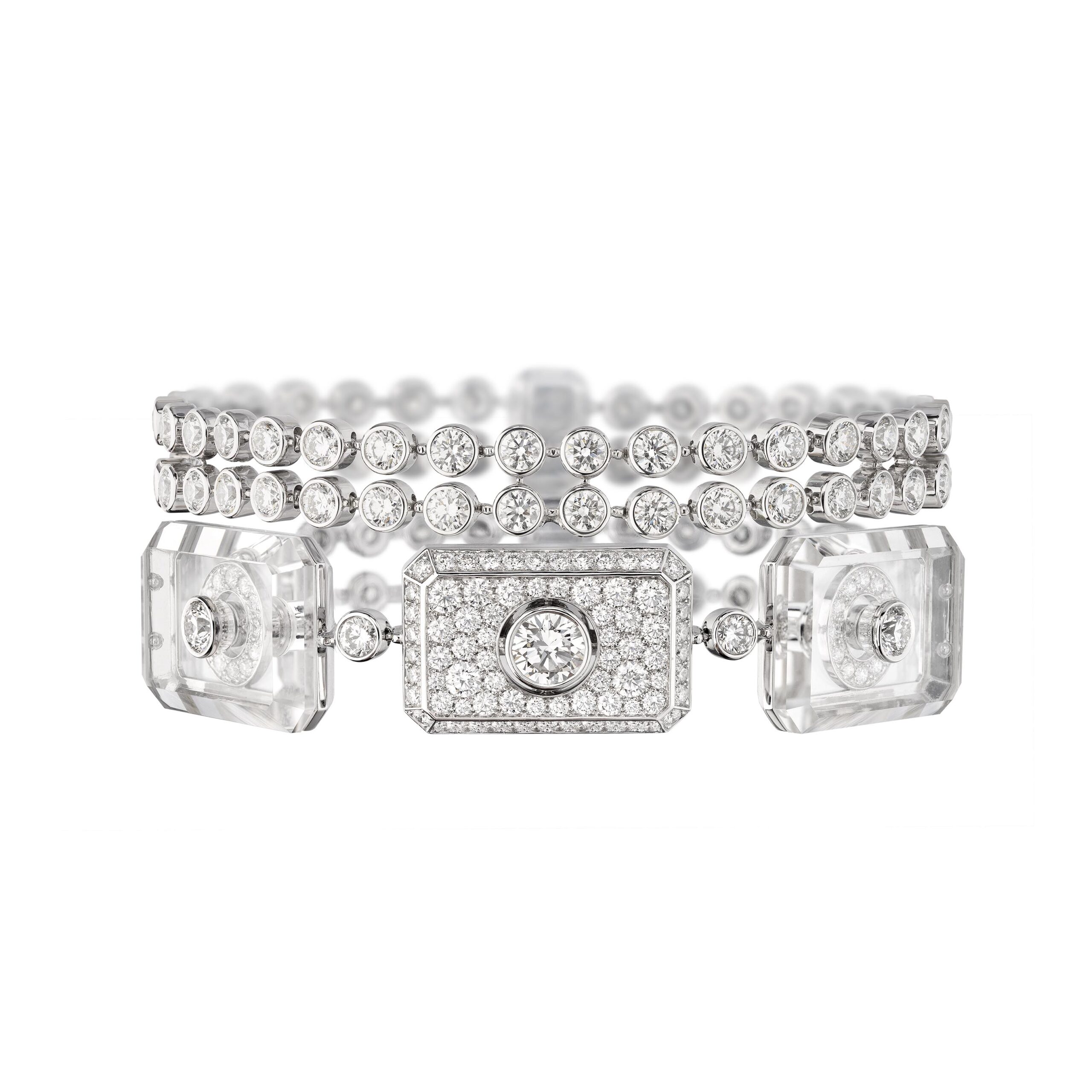 En 1932, Mademoiselle bouleverse les codes de la Haute Joaillerie française avec une seule et unique collection en platine et diamants. Ces « Bijoux de Diamants » augurent de nouveaux portés et transportent la parure dans un autre champ, celui de l’allure.
