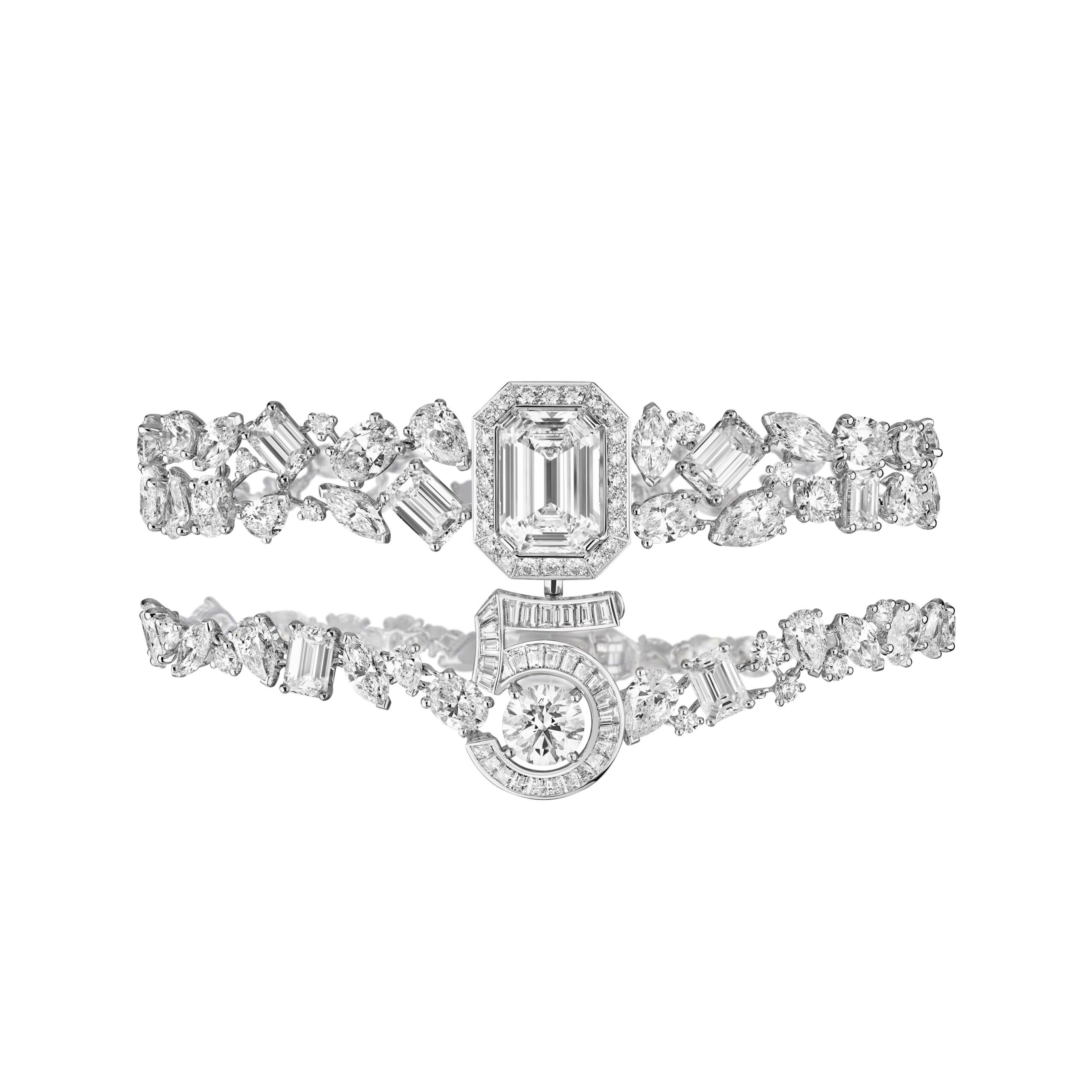 Pour fêter les cent ans de célébrité du parfum N°5, Patrice Leguéreau, Directeur du Studio de Création Joaillerie de CHANEL, a imaginé la « Collection N°5 », premier et unique ensemble de Haute Joaillerie consacré à un parfum.