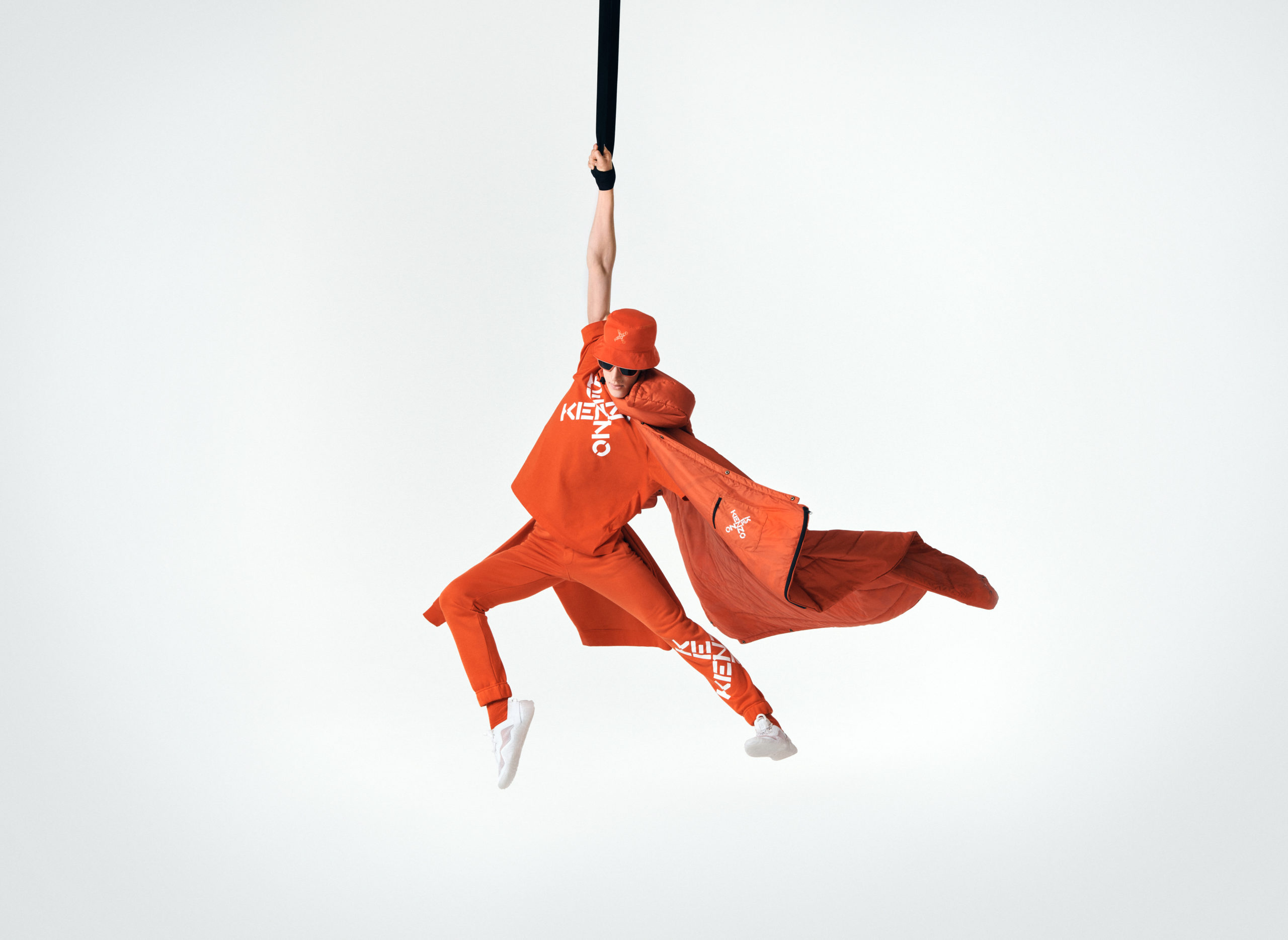 Les silhouettes néo-sportives s’allient au logo KENZO, graphiquement retravaillé en un monogramme, un nouveau drapeau K ou la signature KENZO Sport «X».
