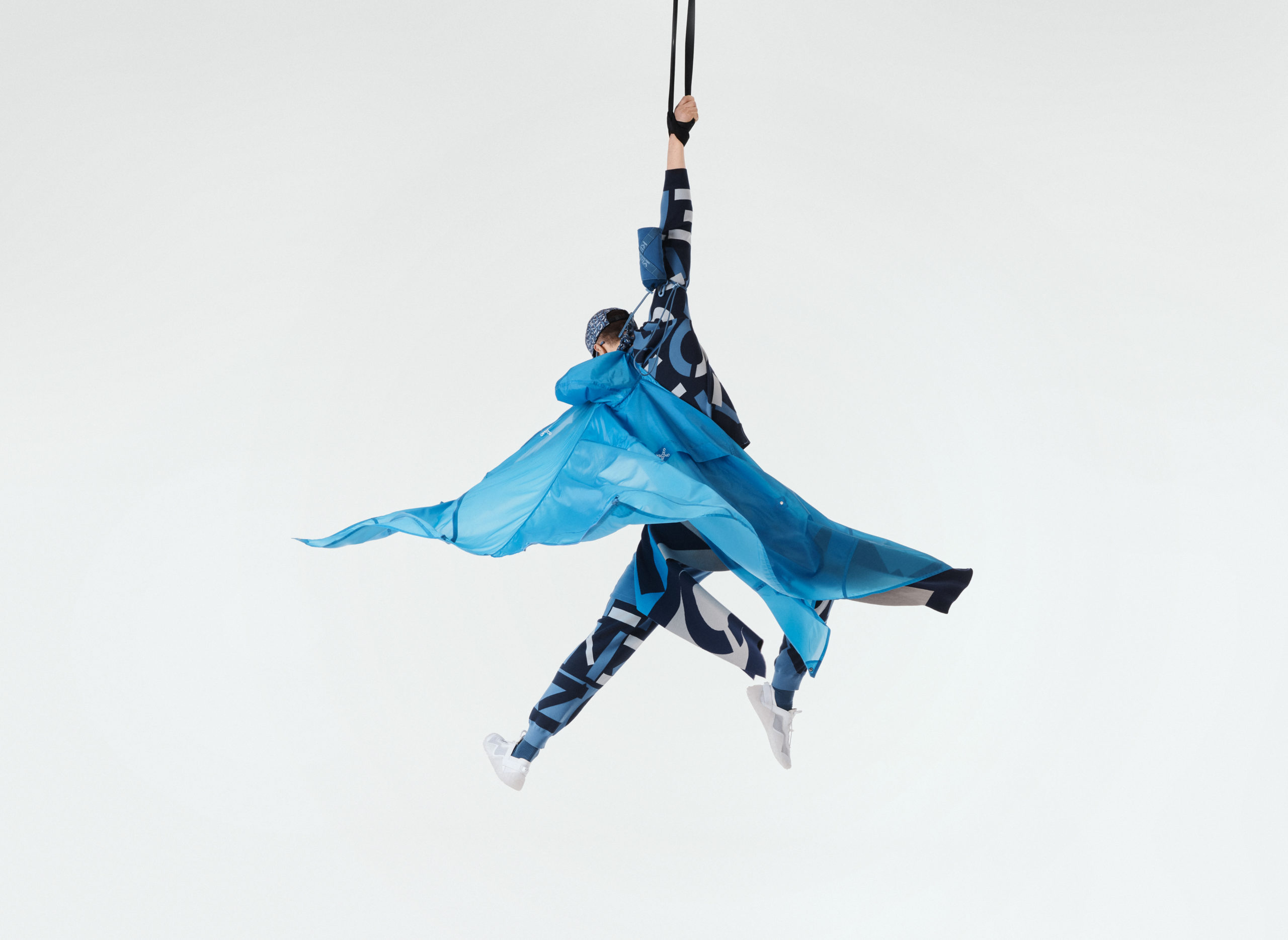 Parkas, coupe-vents, tee-shirts, leggings, bobs… Les hommes et femmes KENZO Sport évoluent avec souplesse. Une couverture multifonctions en édition limitée, conçue en collaboration avec VOITED, est présentée dans trois différentes couleurs.
