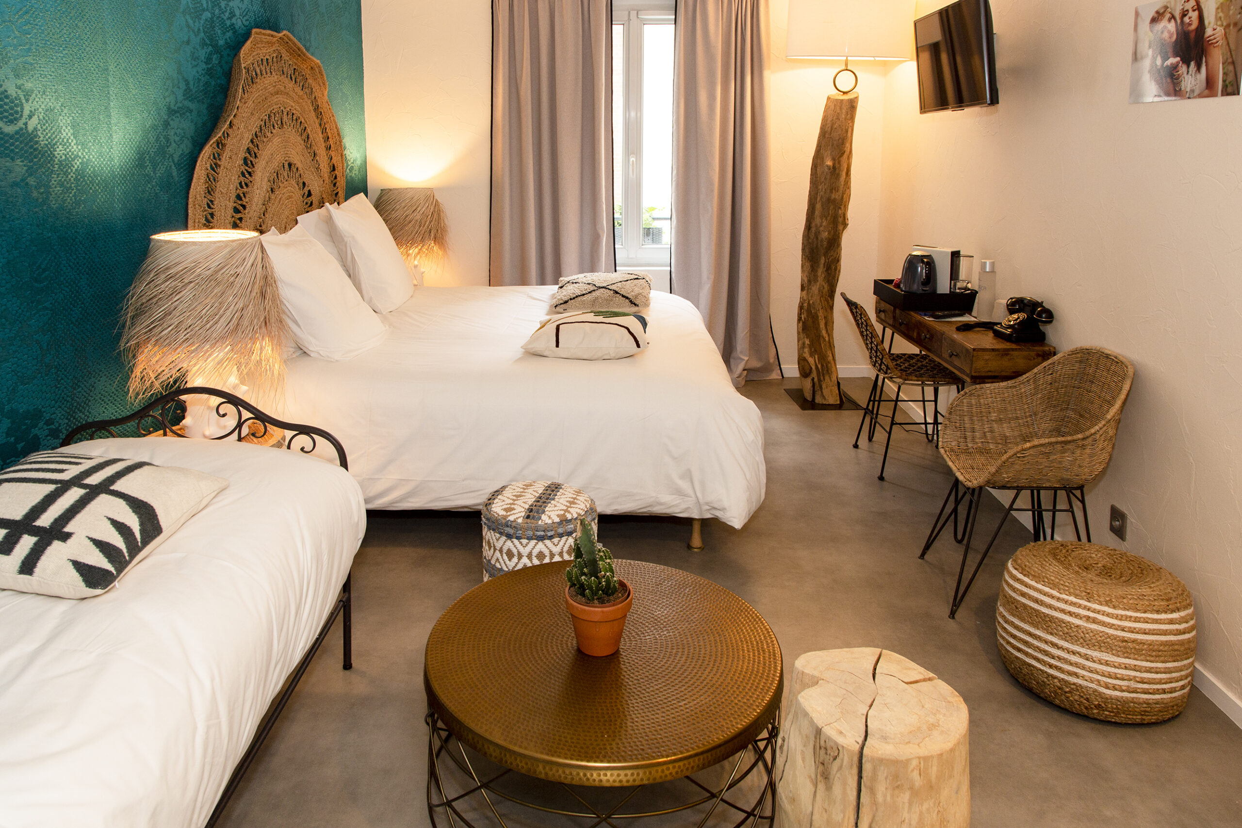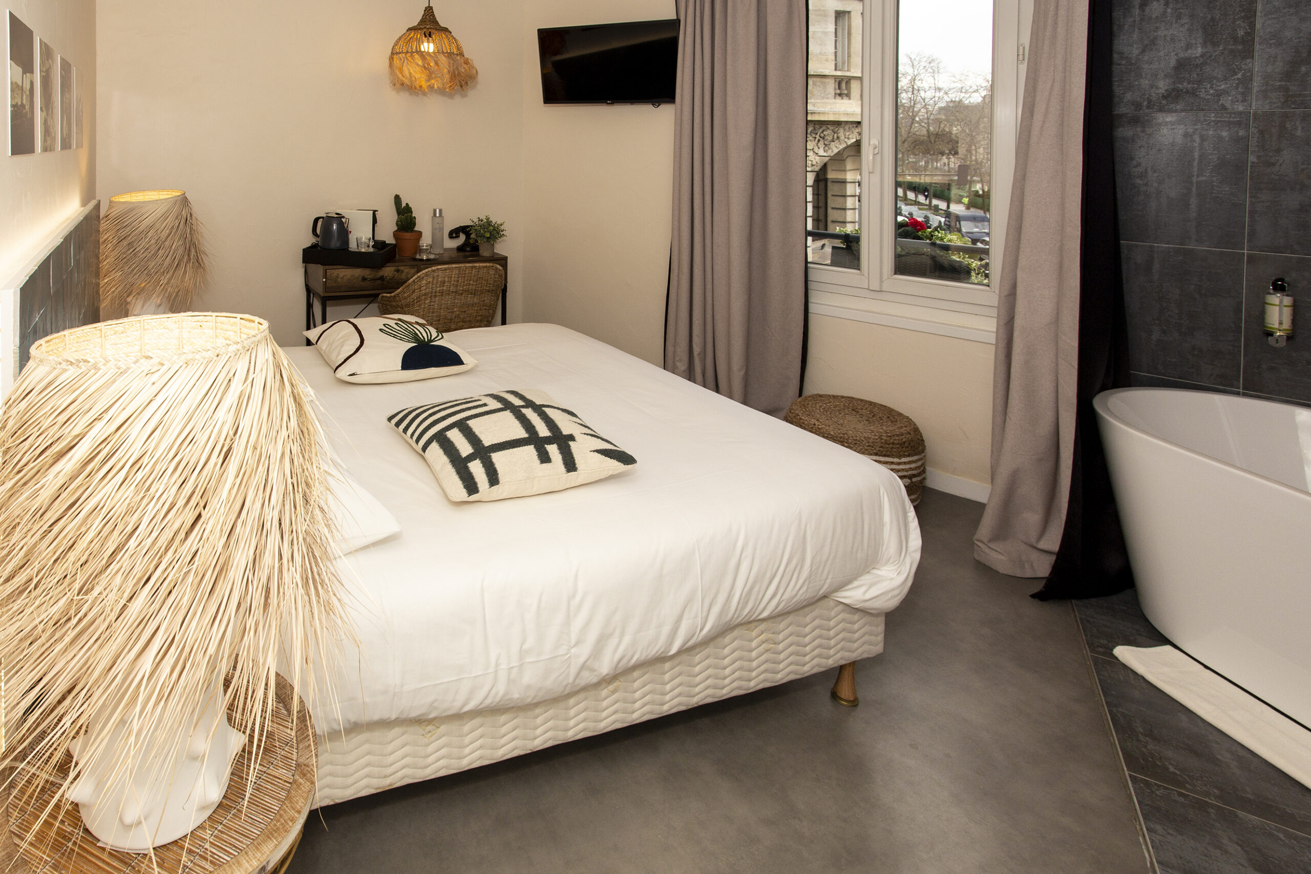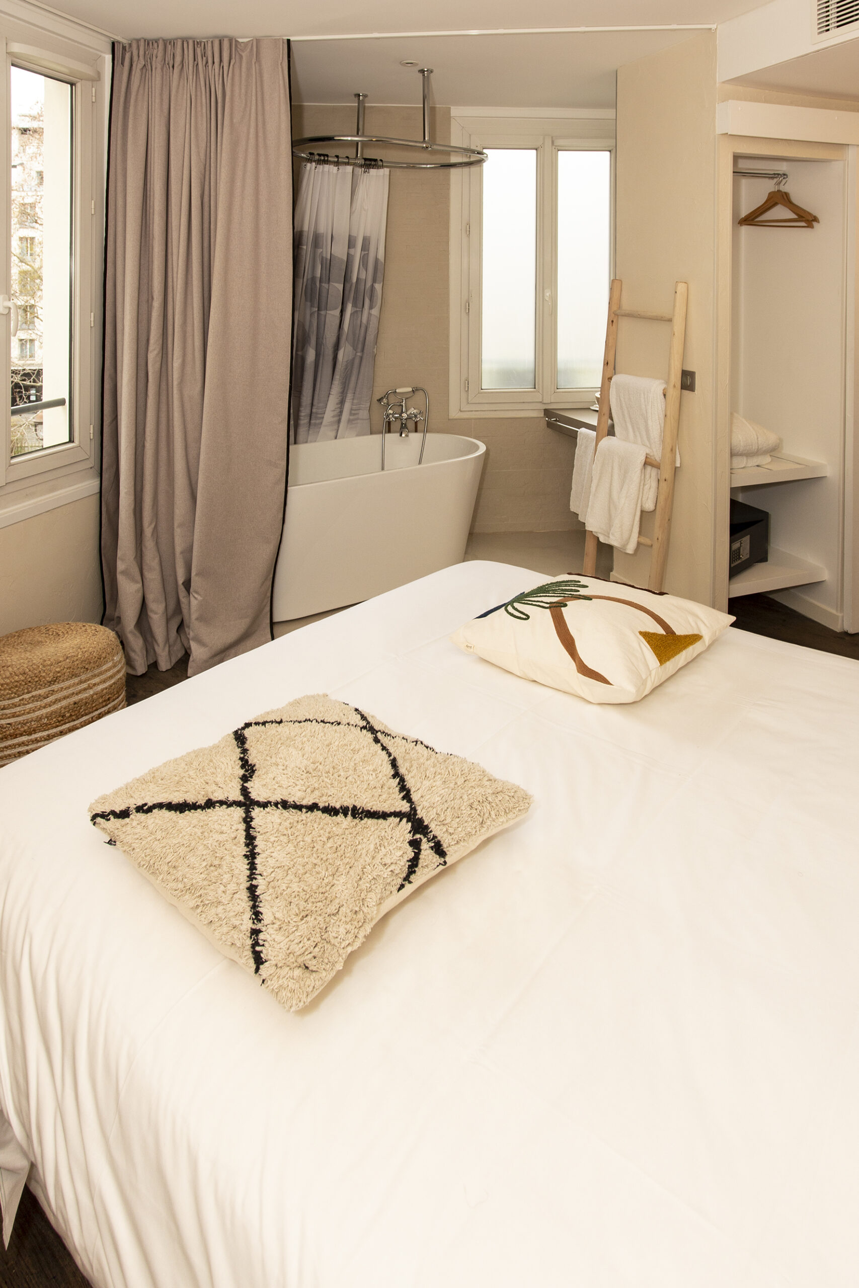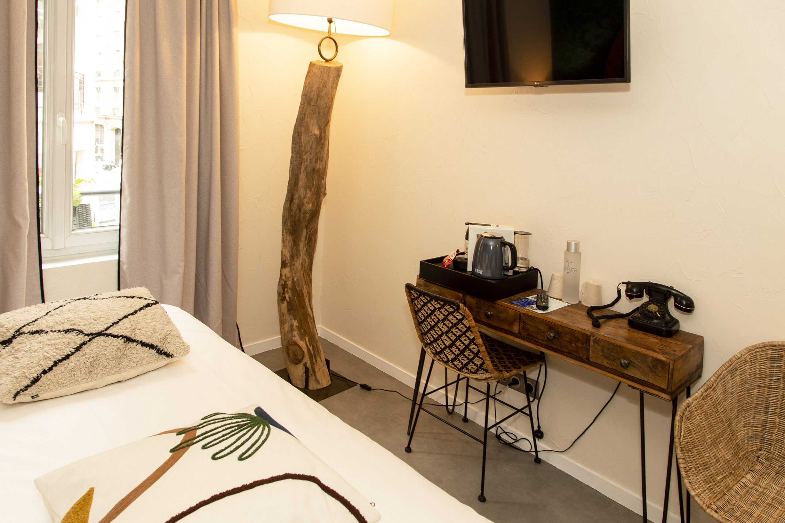 Que ça soit pour traîner, cocooner, se câliner, les chambres ont toutes en commun d’avoir une atmosphère reposante et à l’abri des tumultes de la vie parisienne. Des murs enduits, un mobilier et une décoration boisée, chaque chambre est unique et vous procure un réel dépaysement tout en conservant une prestation qui saura vous surprendre !
