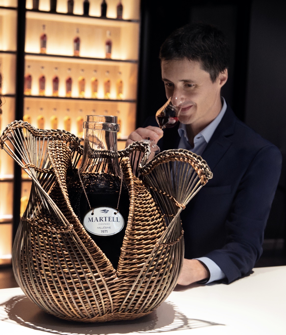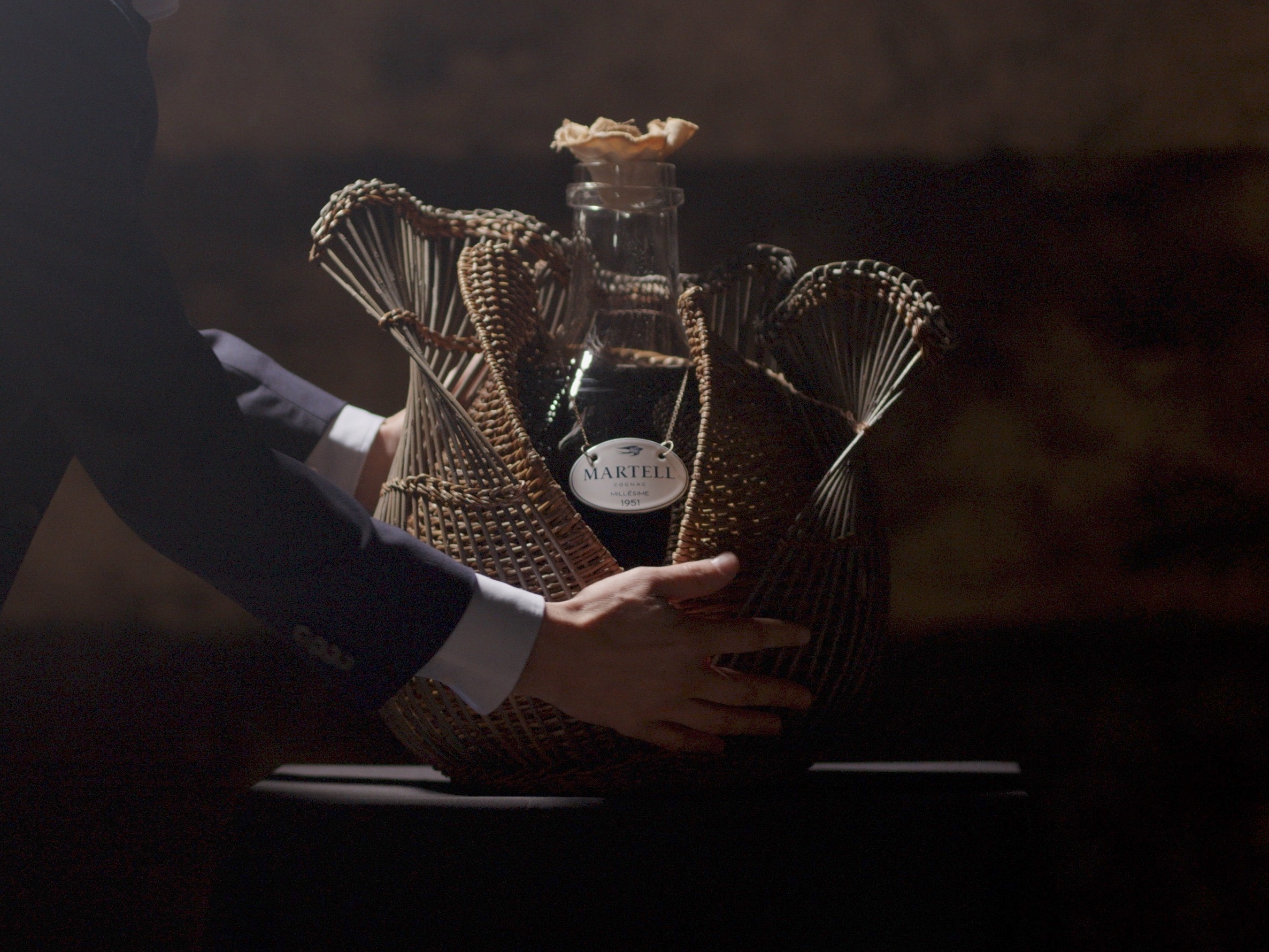 La Maison Martell a fait appel au savoir-faire de trois artisans français pour revisiter la traditionnelle dame-jeanne : un ébéniste qui a sculpté à la main le moule en bois, un souffleur de verre pour réaliser la bouteille monumentale et un vannier pour l’habiller d’osier. Chaque pièce est ainsi unique, réalisée à la commande, dans les ateliers de la Fondation d’Entreprise Martell à Cognac, et livrée avec un certificat signé par Christophe Valtaud.