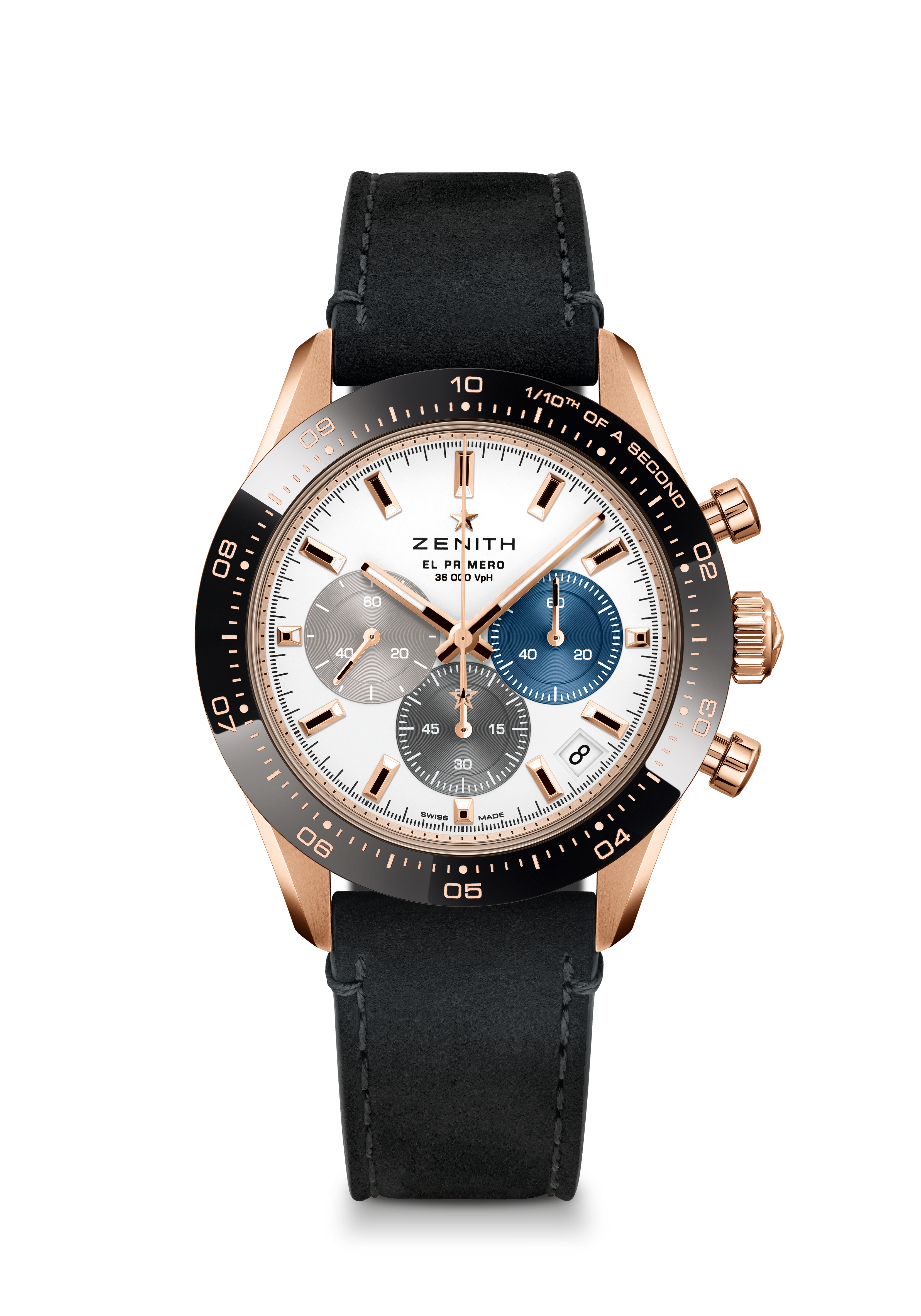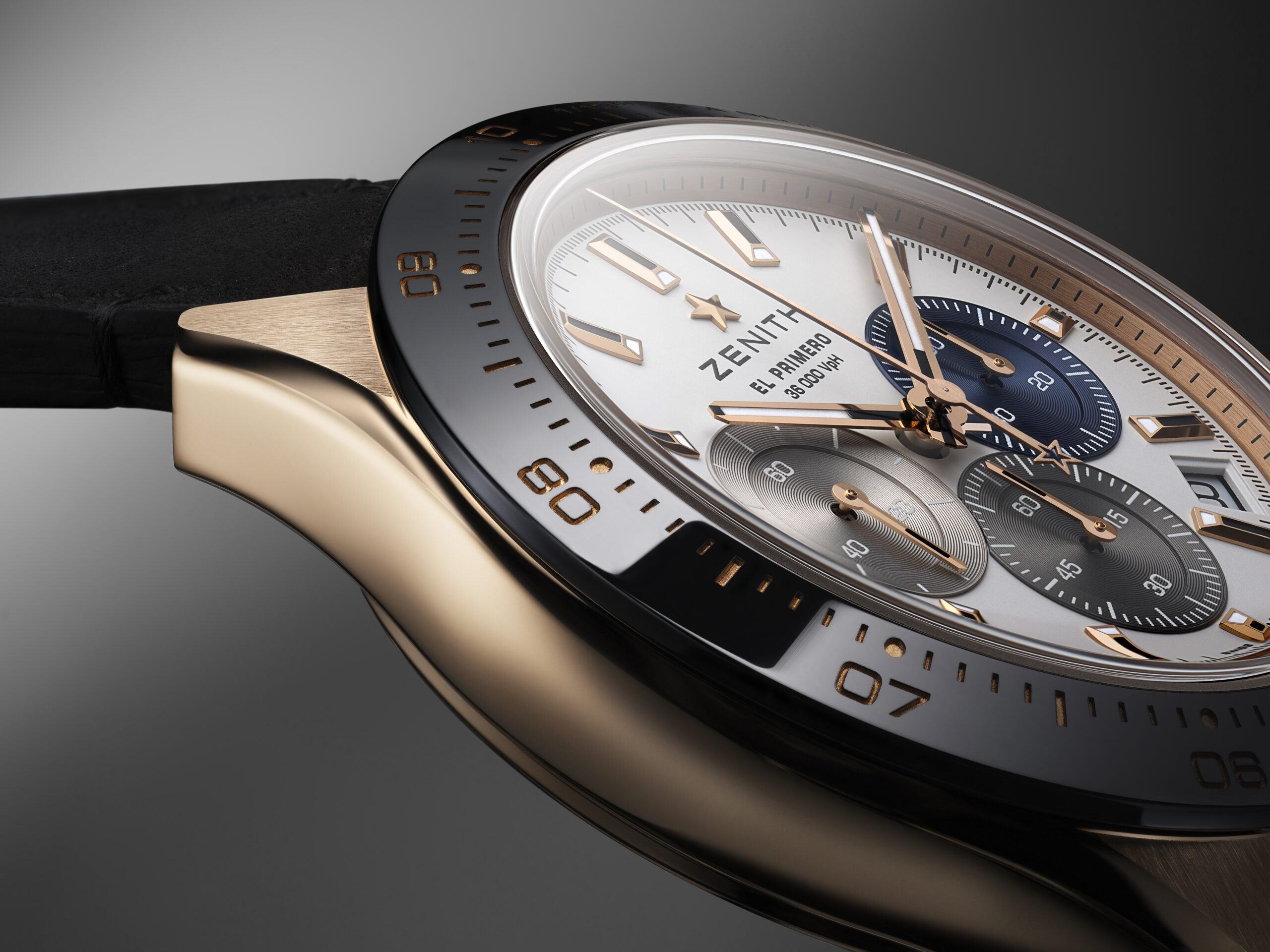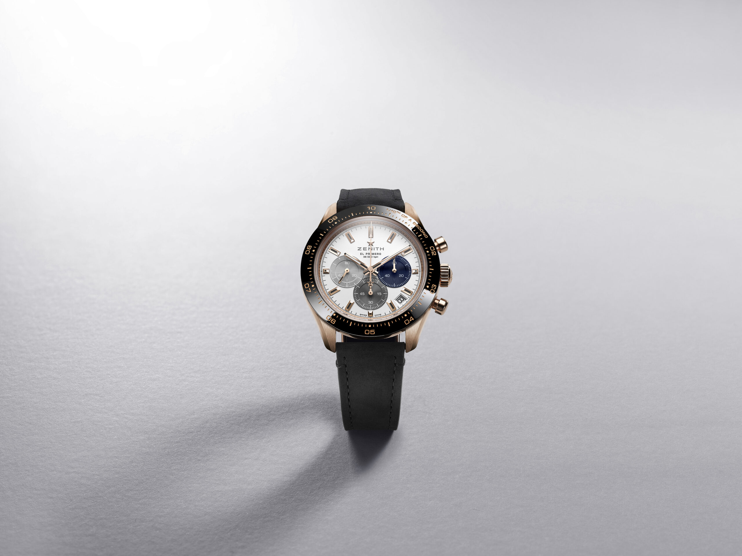 Son esthétique général et sa finition ont également été modernisées par une nouvelle architecture plus ouverte, avec une roue à colonne bleue et un rotor ajouté frappé du motif de l’étoile à cinq branches de Zenith. Le Chronomaster Sport en or rose est disponible dès maintenant dans les boutiques et détaillants Zenith du monde entier.