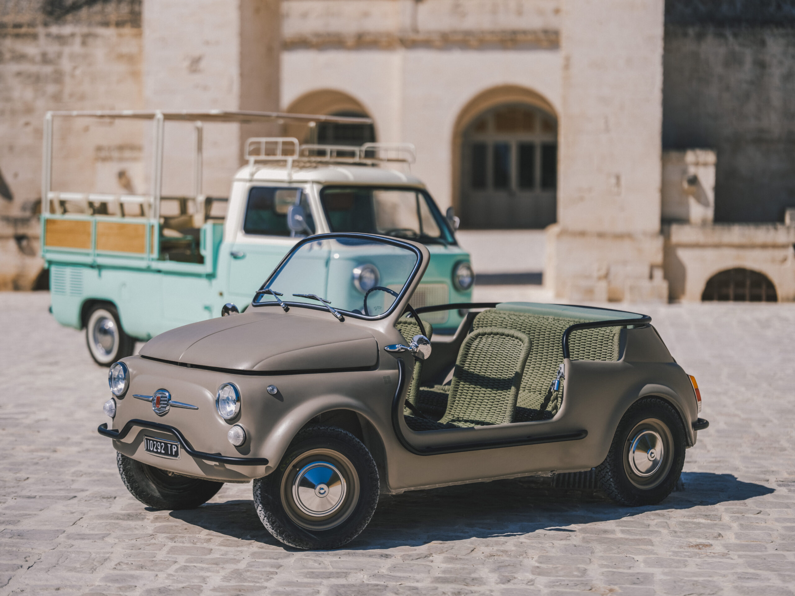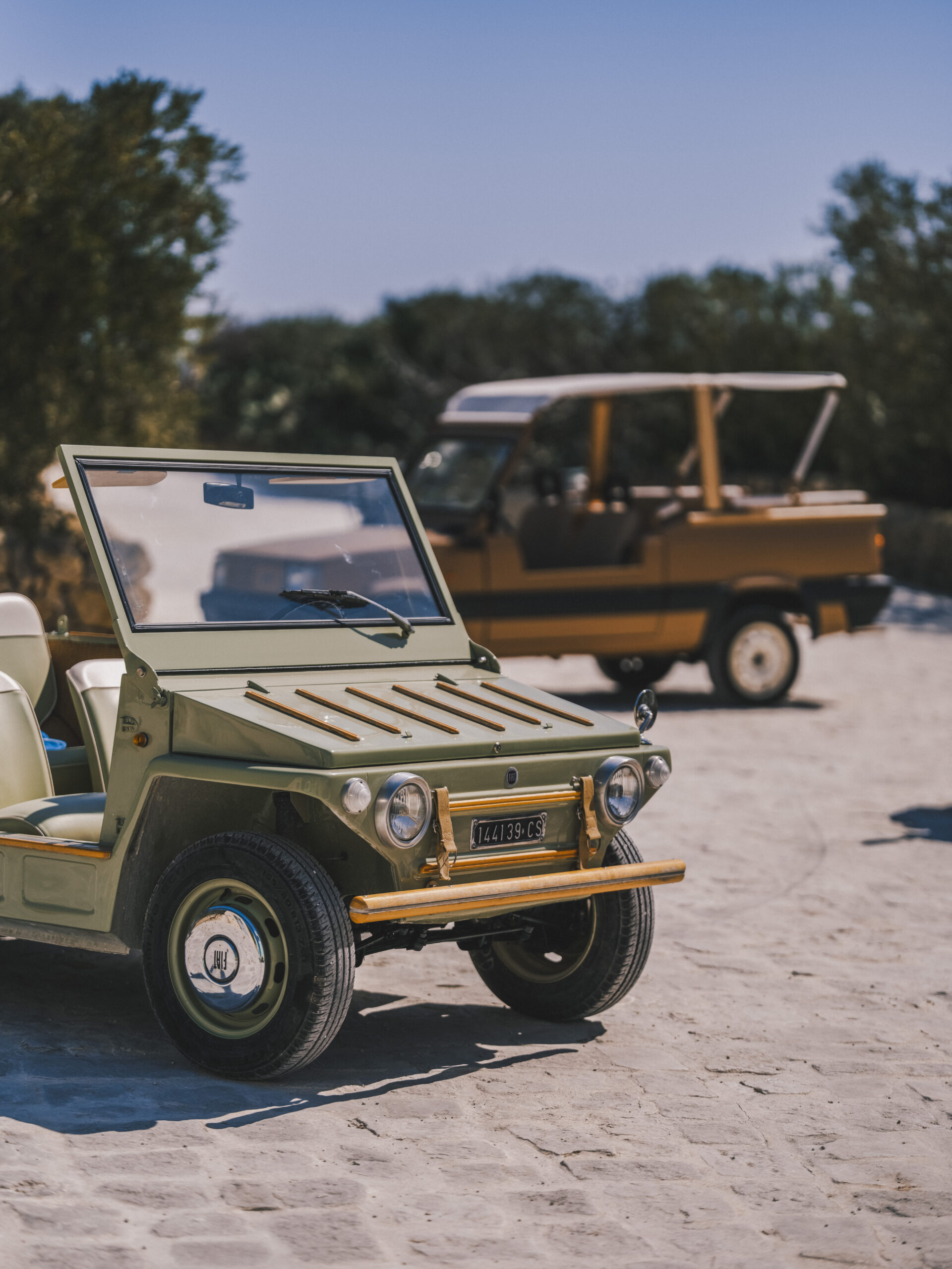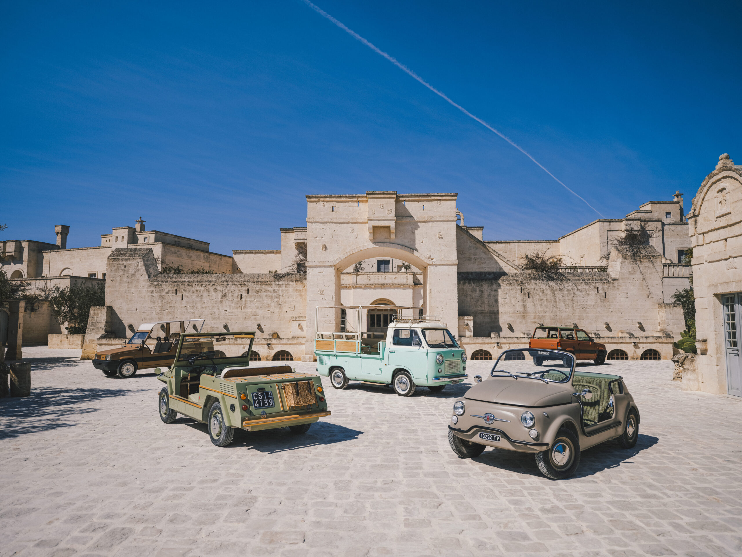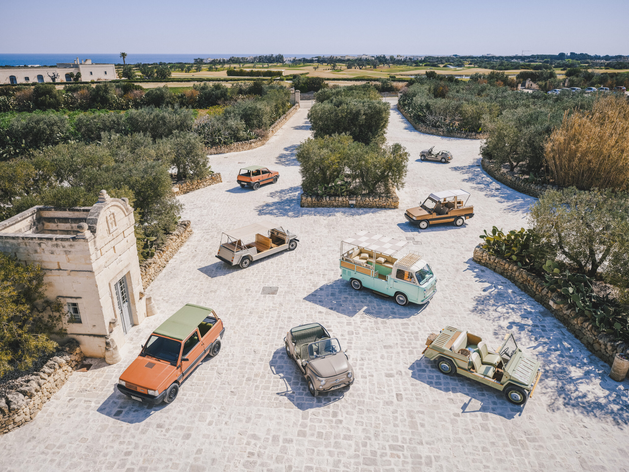 Le lien vertueux entre tradition et innovation se reflète également dans la toute nouvelle gamme de voitures électriques mises à la disposition des hôtes : Fiat 850, 600 Jungla, Panda cabrio, Fiat 500 Spiaggina, toutes de belles voitures anciennes, strictement Made in Italy, transformées en voitures électriques.