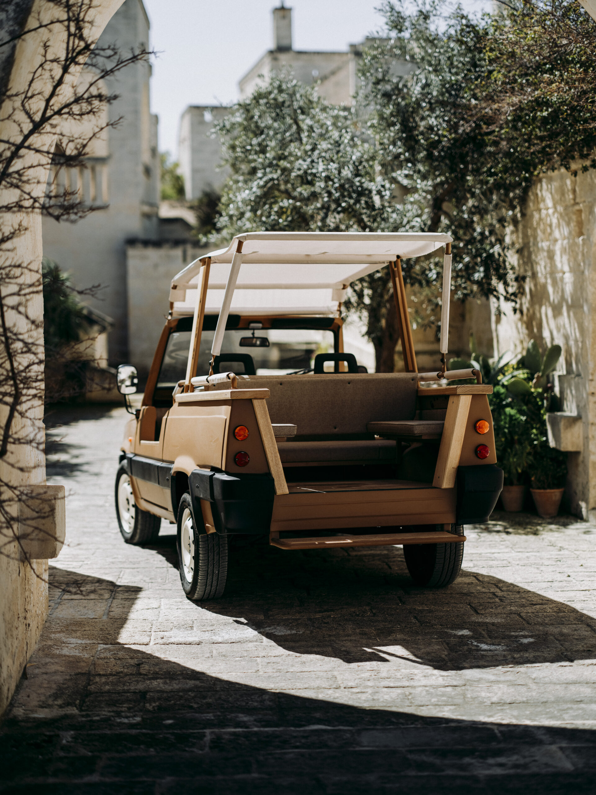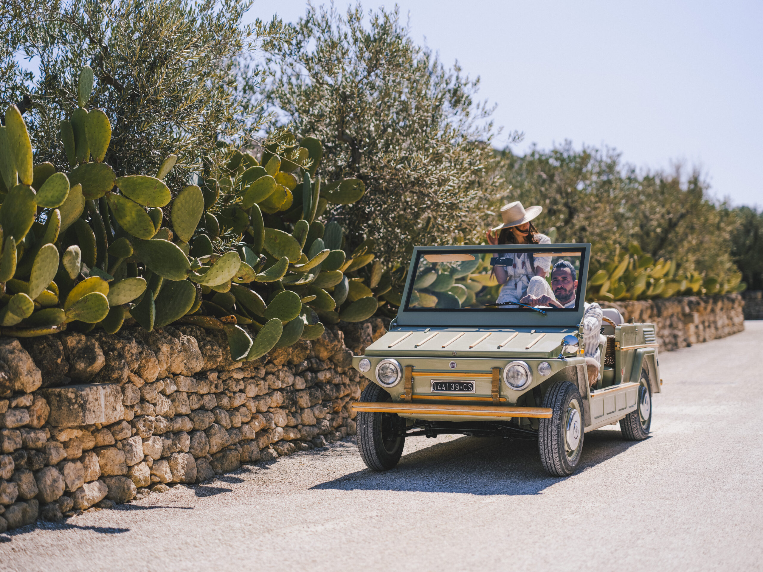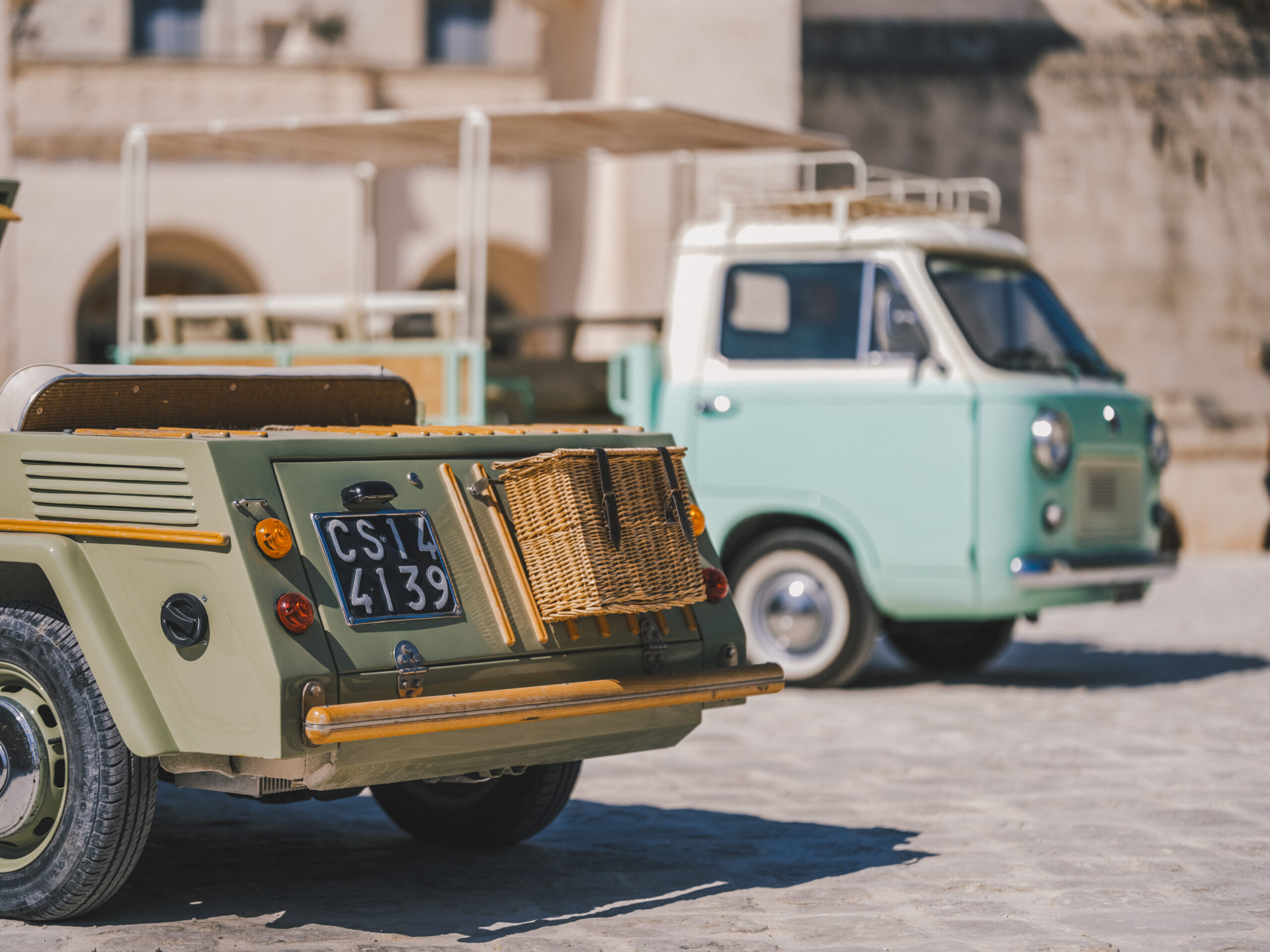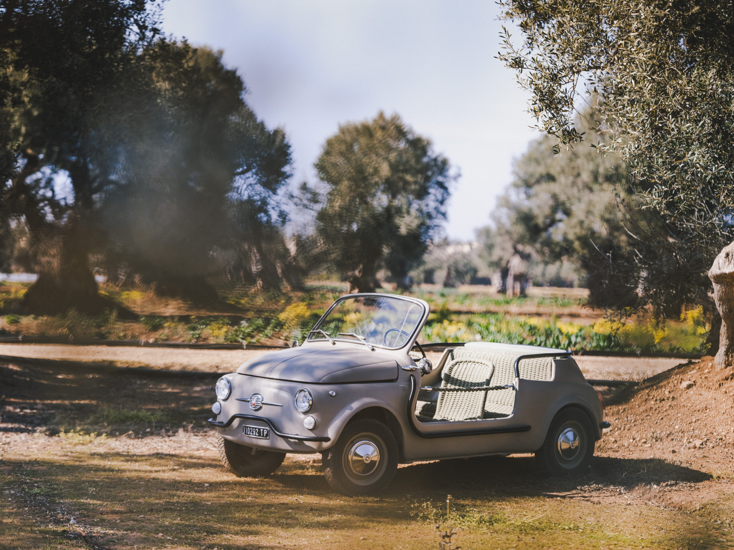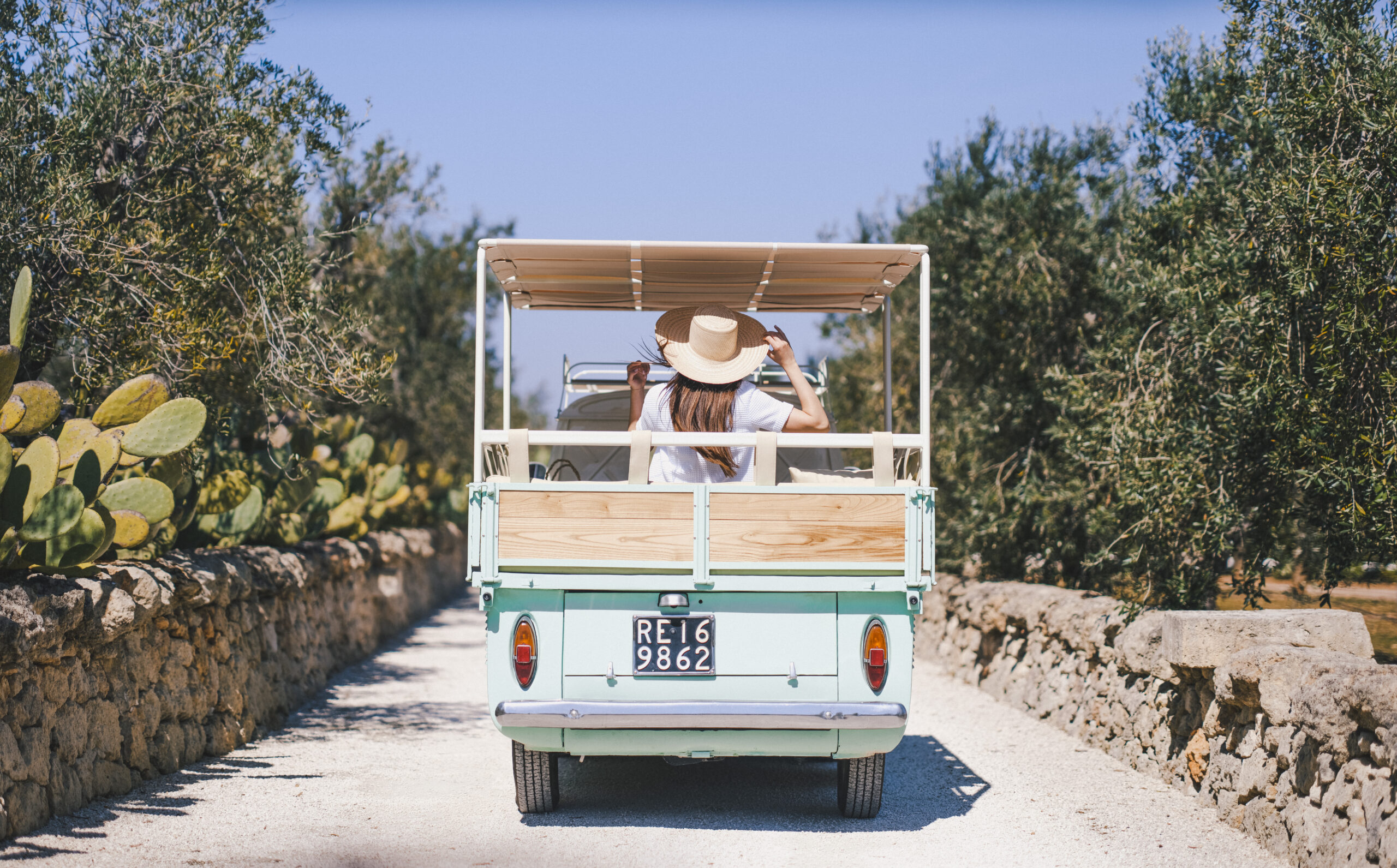 Le lien vertueux entre tradition et innovation se reflète également dans la toute nouvelle gamme de voitures électriques mises à la disposition des hôtes : Fiat 850, 600 Jungla, Panda cabrio, Fiat 500 Spiaggina, toutes de belles voitures anciennes, strictement Made in Italy, transformées en voitures électriques.
