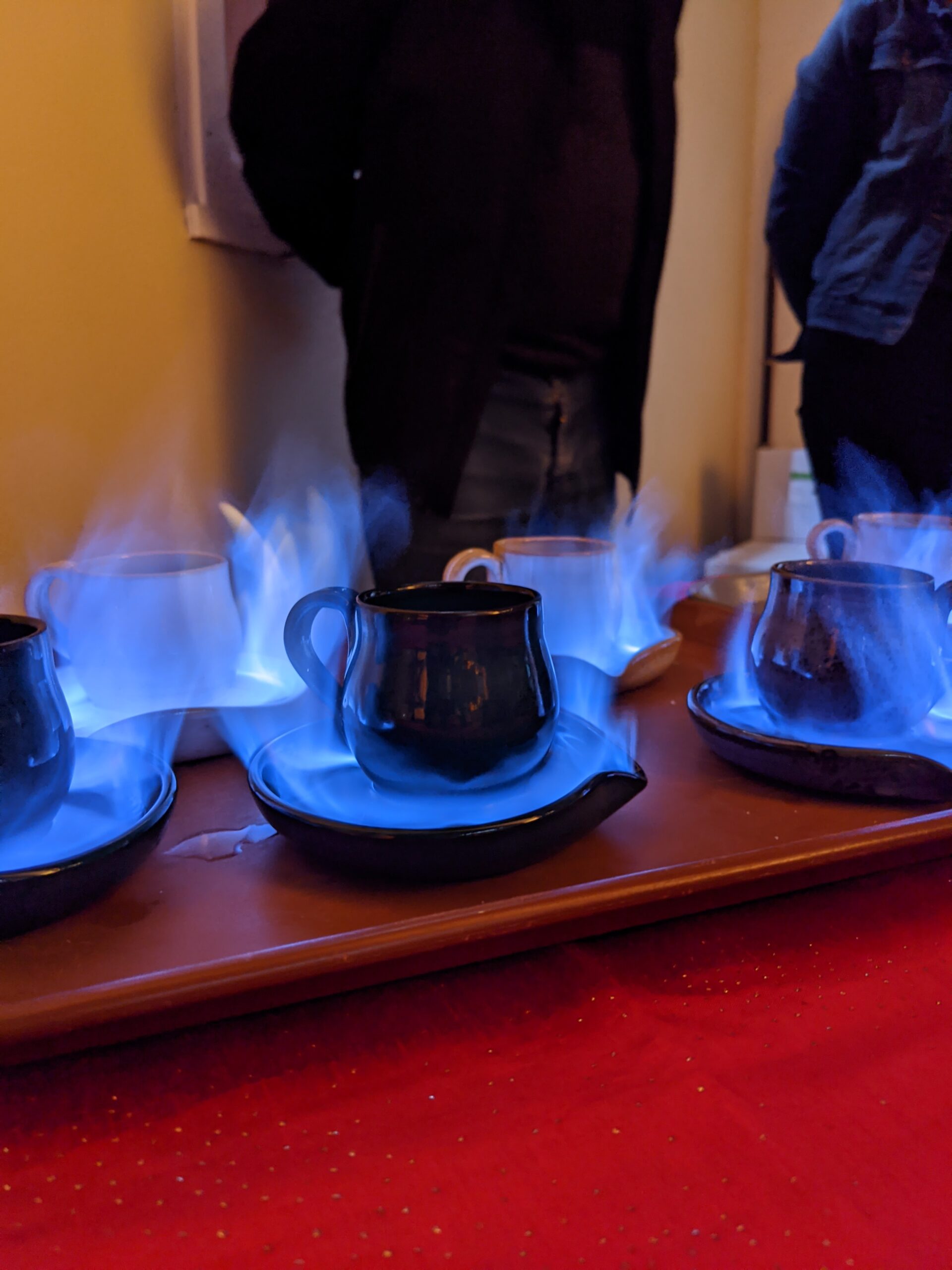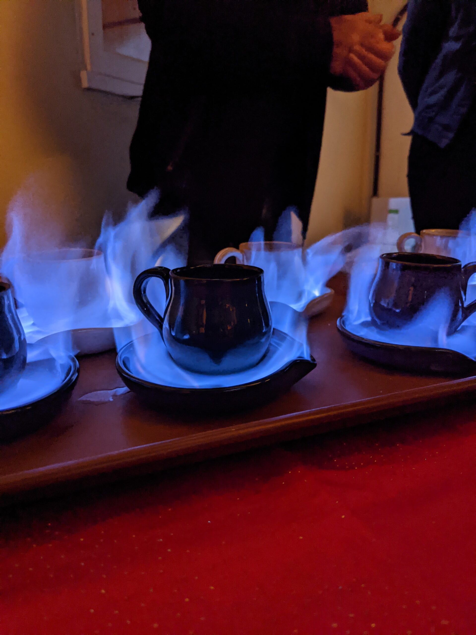 Initiation au secret de ce savoureux café flambé au cognac issu du terroir de notre région : une réduction liquoreuse très peu alcoolisée (2 à 3% Vol.) au goût de confiture de fruits (poire, prune et abricot) que l’on verse dans la tasse de café. Puis les saveurs d’un moka crémeux mêlées au subtil boisé de notre cognac. Imaginez cette harmonie d’un bel équilibre sucré-amer-acide et d’une surprenante longueur en bouche. Imaginez aussi les flammes bleutées qui brillent dans le regard de vos amis et les moments inoubliables que vous partagerez…
