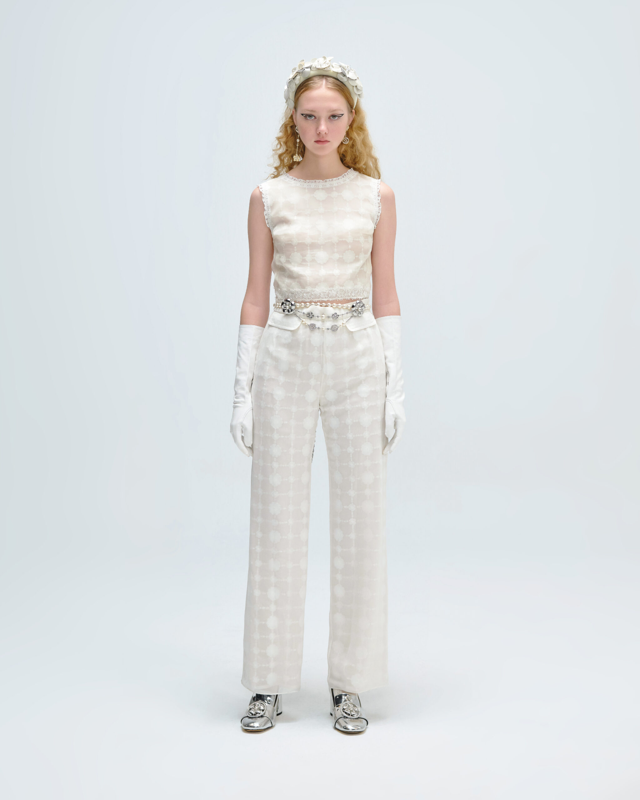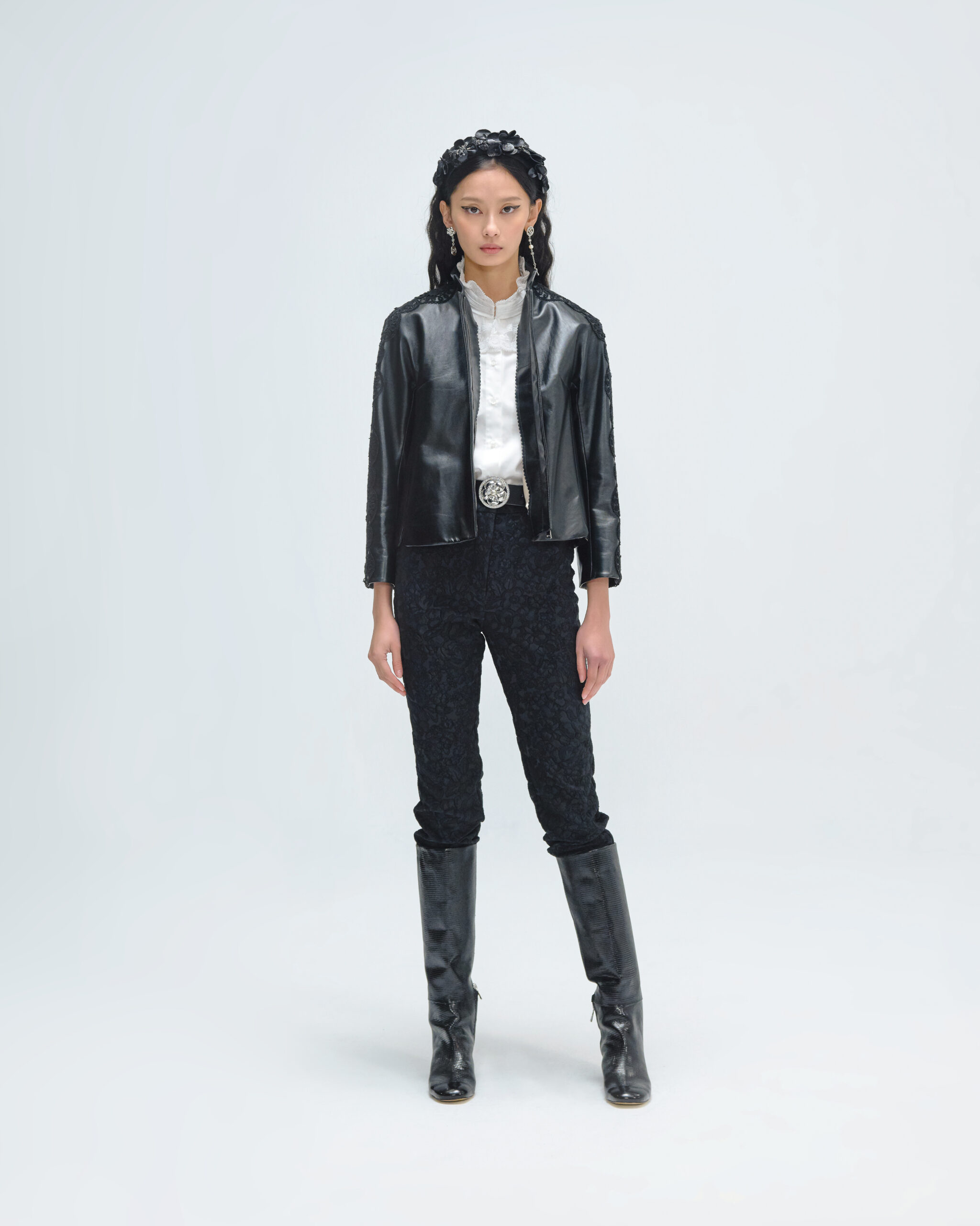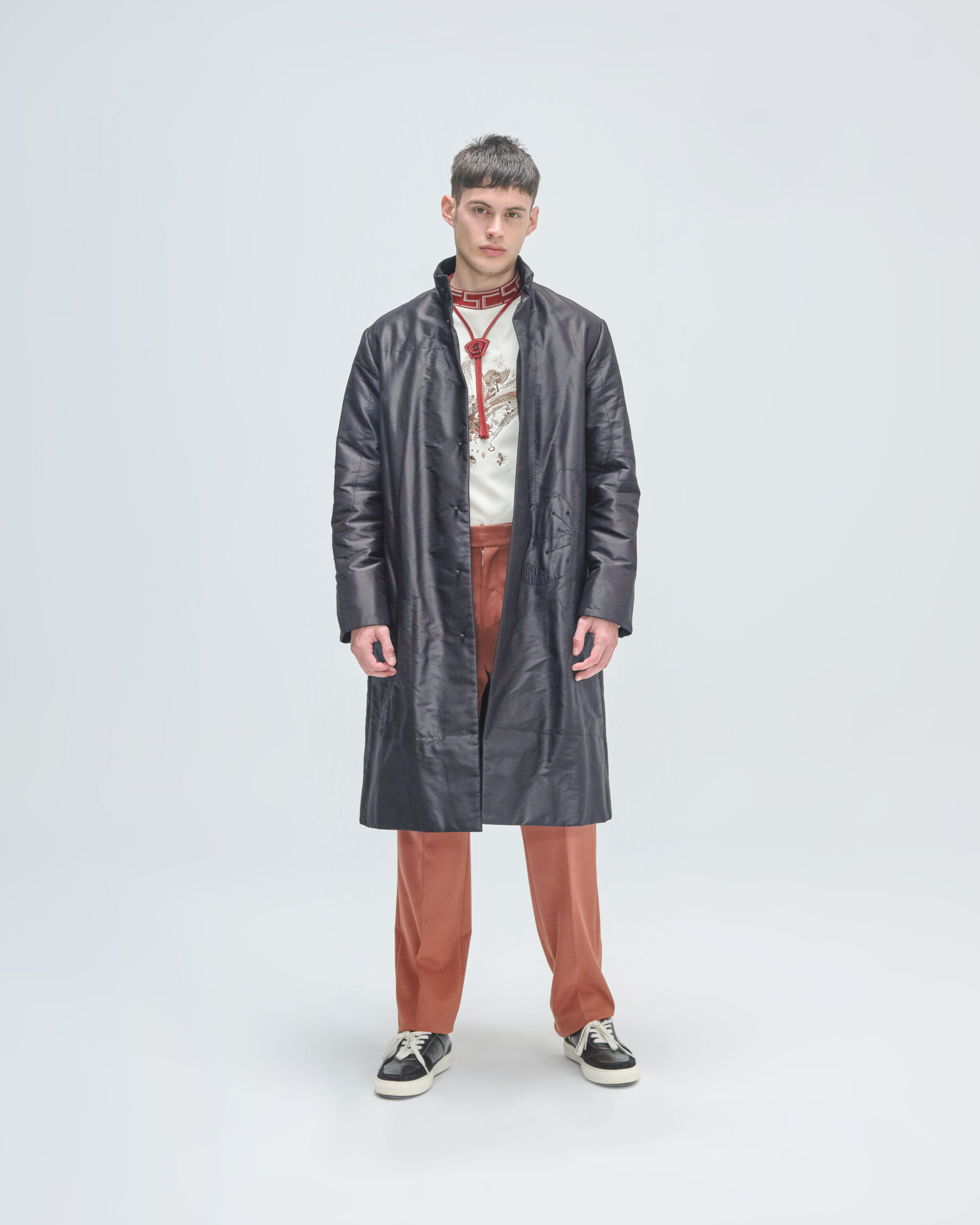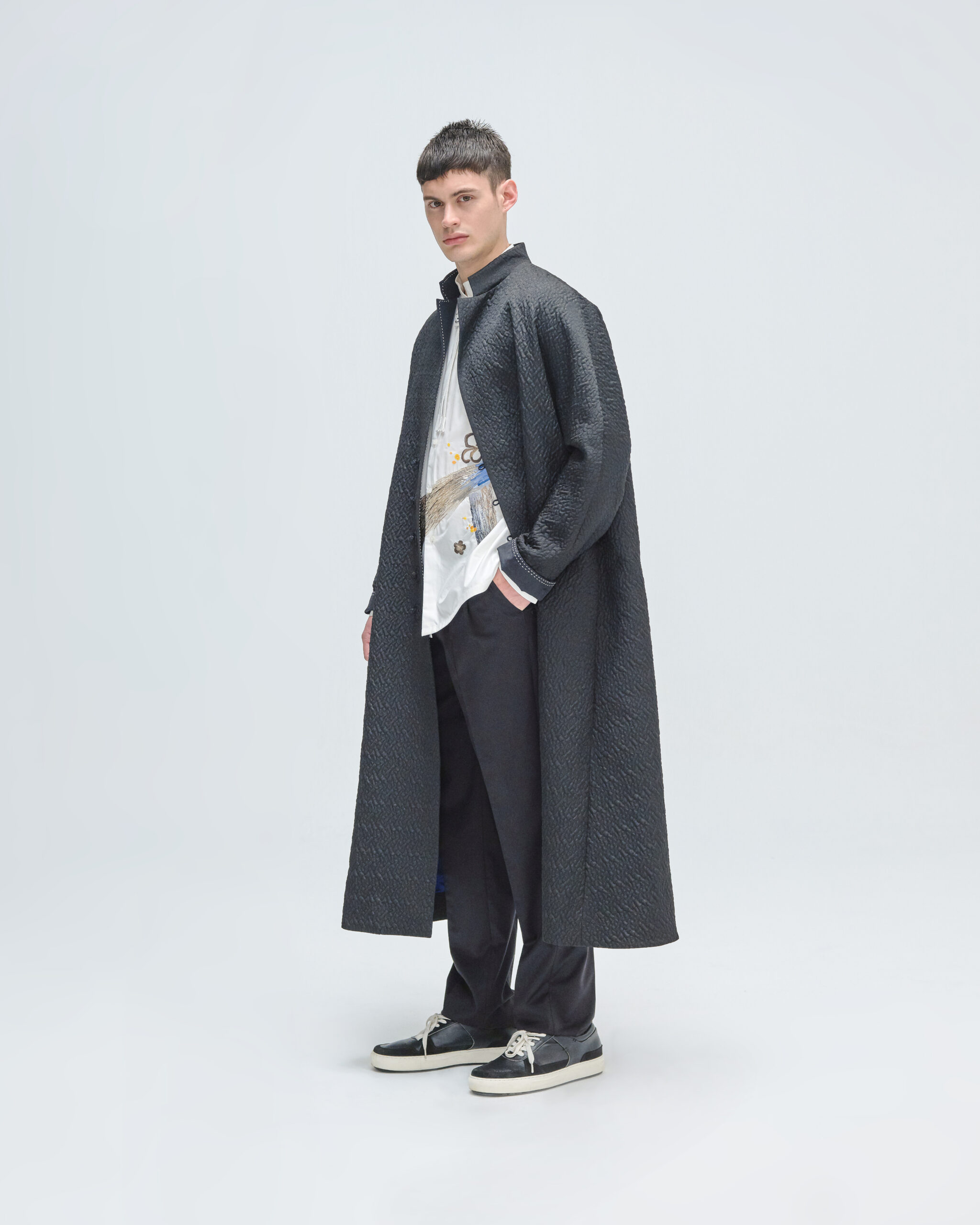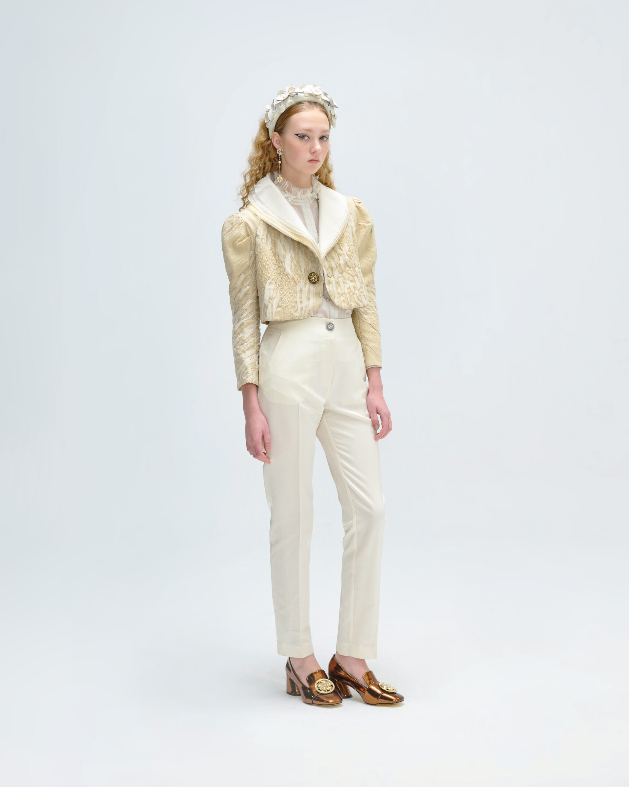 Cette saison s’inspire du prunier qui, face aux vicissitudes de l’hiver, est le premier à fleurir, exprimant ainsi simultanément vigueur et délicatesse. Les motifs uniques de la marque conservent en eux la puissance des coups de pinceau et l’audace des contrastes de couleurs. Les broderies faites à la main, les jacquards, les impressions peintes à la main s’expriment dans le vêtement. L’ensemble des couleurs suit un développement qui commence avec le bourgeonnement pour ensuite atteindre la pleine floraison. Aux classiques noir et blanc se succède une gamme de roses qui, elle-même, se prolonge dans un bleu saturé et un rouge de fleur de prunier, exprimant ainsi, dans les rigueurs de l’hiver, une élégante arrogance. Puis, un jaune doré, un rose pêche, un vert vif et un indigo, tous particulièrement denses, rendent le bourgeonnement encore plus éclatant. Enfin, un blanc, un rose saumon et un vert absinthe, tous délicats, se transforment en un rouge grenade pur et un vert pin intense, exprimant ainsi la floraison complète de la fleur du prunier qui se dresse et se balance au gré du vent. Les vêtements pour hommes rappellent, quant à eux, l’allure des hommes de lettres d’antan. Un grand nombre de gris et de noirs calmes et sereins sont utilisés, auxquels s’ajoutent les quelques couleurs vives des vestes classiques à col montant, des manteaux et des polos. Les motifs uniques de la marque sont utilisés avec parcimonie, ornant le corps du vêtement et le col. La fleur du prunier se métamorphose aussi en boutons chinois qui apparaissent en décalé sur le devant du manteau et sur les poignets, montrant ainsi à quel point la marque maitrise le style élégant et intemporel des hommes de lettres.Pour la collection pré-automnale 2021, Shiatzy Chen persévère dans son savoir-faire et remet de nouveau à l’honneur la fleur de prunier dans ses vêtements. Les vêtements pour homme évoquent l’allure des hommes de lettres d’antan et expriment une certaine poésie. Un style léger et raffiné renforce leur beauté. Les vêtements pour femmes s’inspirent, quant à eux, des jolis contours des années 60. Ils mélangent les couleurs des différentes périodes de floraison et, à travers une déconstruction, introduisent l’idée d’un « habit ravissant », esquissant ainsi le look versatile et abondant des femmes modernes.