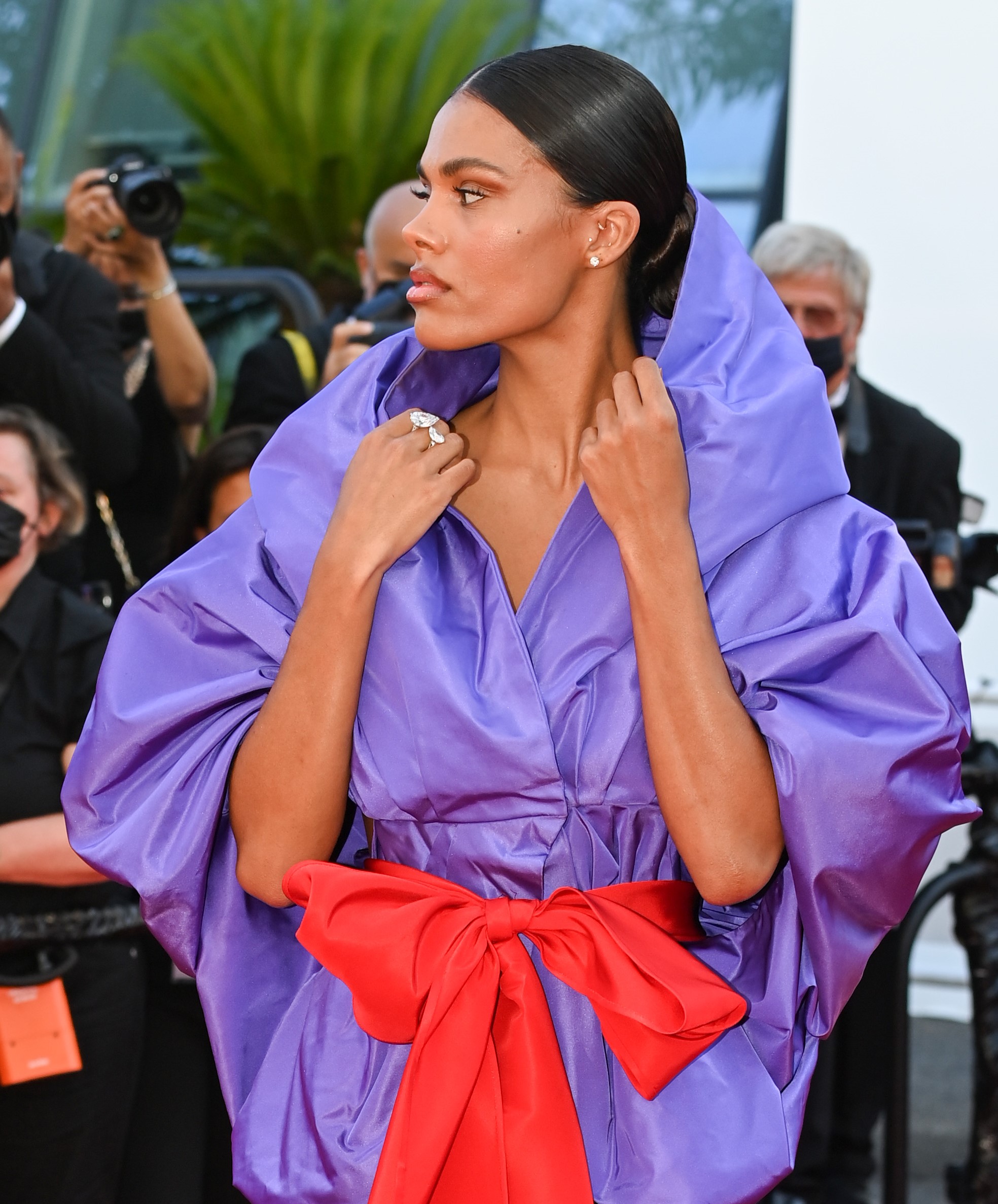 Tina Kunakey was majestic on the red carpet during Cannes Film Festival, wearing a spectacular gown adorned with a Messika iconic Toi & Moi Diamond High Jewelry ring and a pair of discrete earrings.