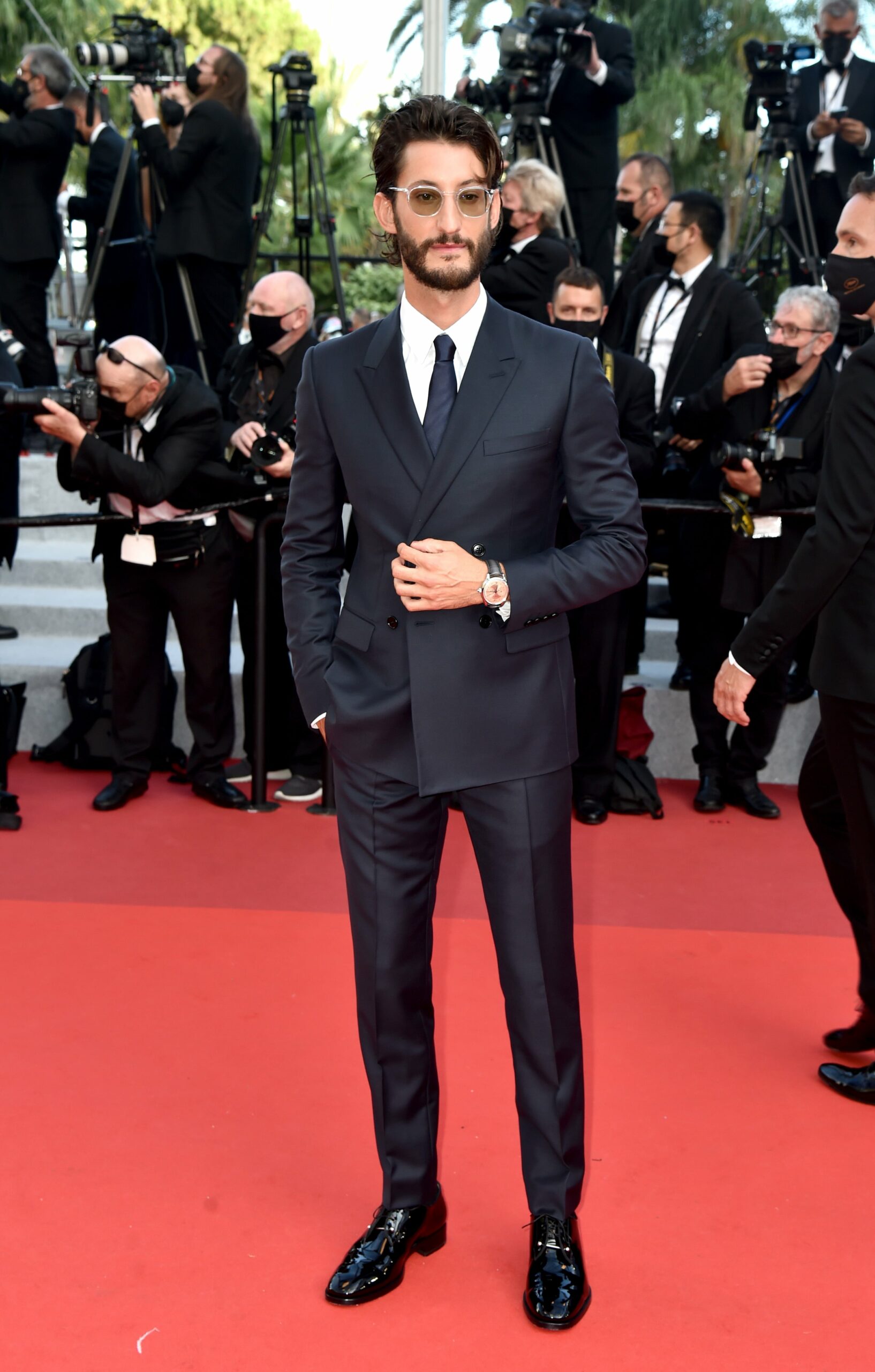 - PIERRE NINEY IS DRESSED BY DIOR HE WORE A NAVY WOOL PEAK LAPEL DOUBLE-BREASTED SUIT, A WHITE COTTON SHIRT WITH DIOR OBLIQUE ALL-OVER DETAIL, A NAVY SILK TIE. PIERRE NINEY IS MADE UP BY DIOR FOR THE FACE : DIOR FOREVER NATURAL NUDE – NEUTRAL 2N DIOR BACKSTAGE POWDER-NO-POWDER – NEUTRAL 2N CANNES, FRANCE – JULY 17: Pierre Niney attends the final screening of « OSS 117: From Africa With Love » and closing ceremony during the 74th annual Cannes Film Festival on July 17, 2021 in Cannes, France. (Photo by Pascal Le Segretain/Getty Images)