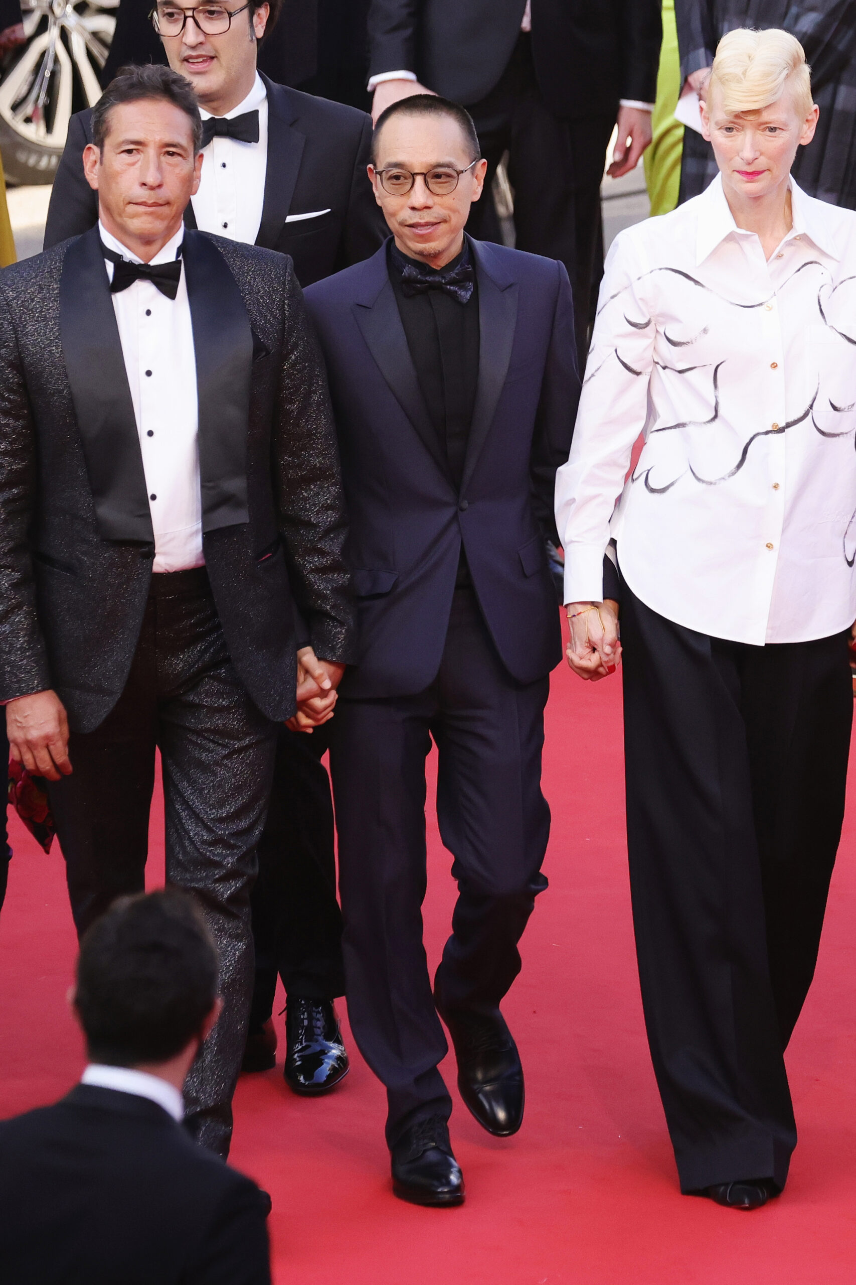- APICHATPONG WEERASETHAKUL IS DRESSED BY DIOR HE WORE A MIDNIGHT BLUE PEAK LAPEL TUXEDO, BLACK COTTON WING-TIP COLLAR SHIRT WITH PLASTRON PIQUÉ, NAVY SILK BOW-TIE AND BLACK LEATHER DERBIES