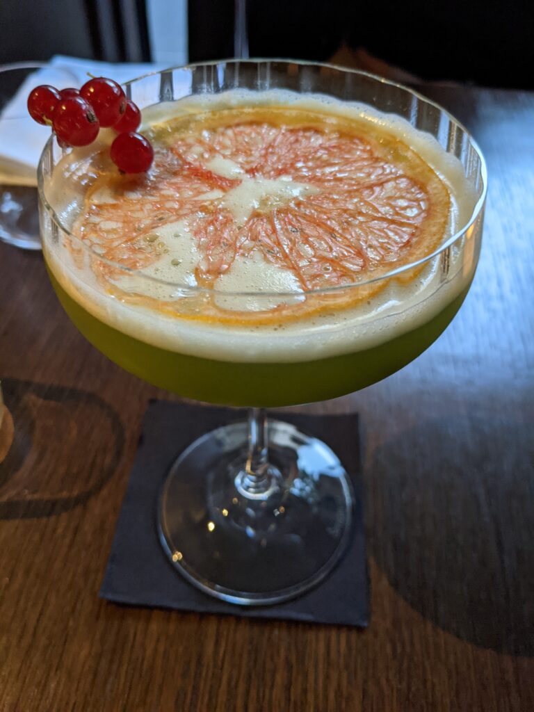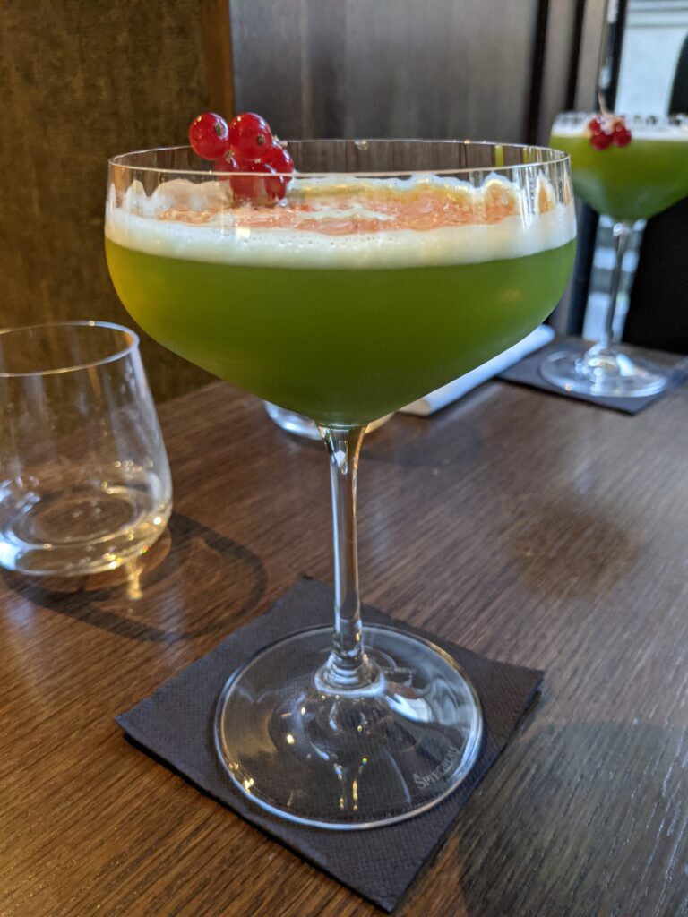 cocktails hybrides français / japonais dans le prolongement du voyage comme Le Shiro, notre coup de coeur, (Hibiki – whisky japonais – purée de kiwi, concombre, citron vert, jus d’aloé vera, menthe fraîche le tout saupoudré de matcha), le Sakura Horoyoi (Roku Gin – gin japonais – tonic hibiscus et fruits rouges frais pour le côté estival) ou le Pink Matcha (mocktail composé de purée de litchi et de fraises, jus de cranberry, menthe fraîche et poudre de matcha).