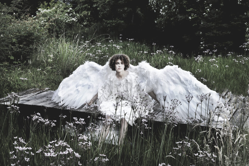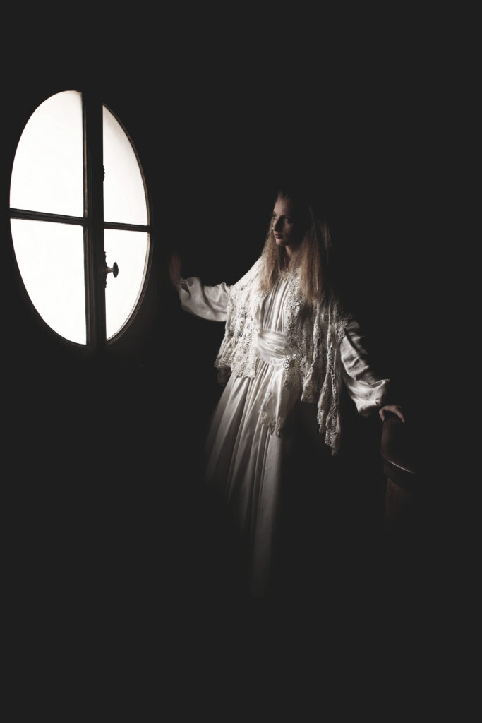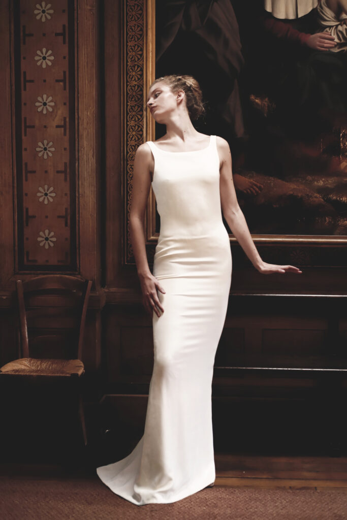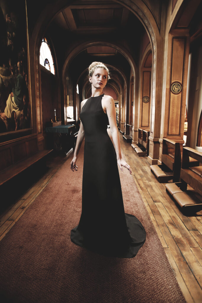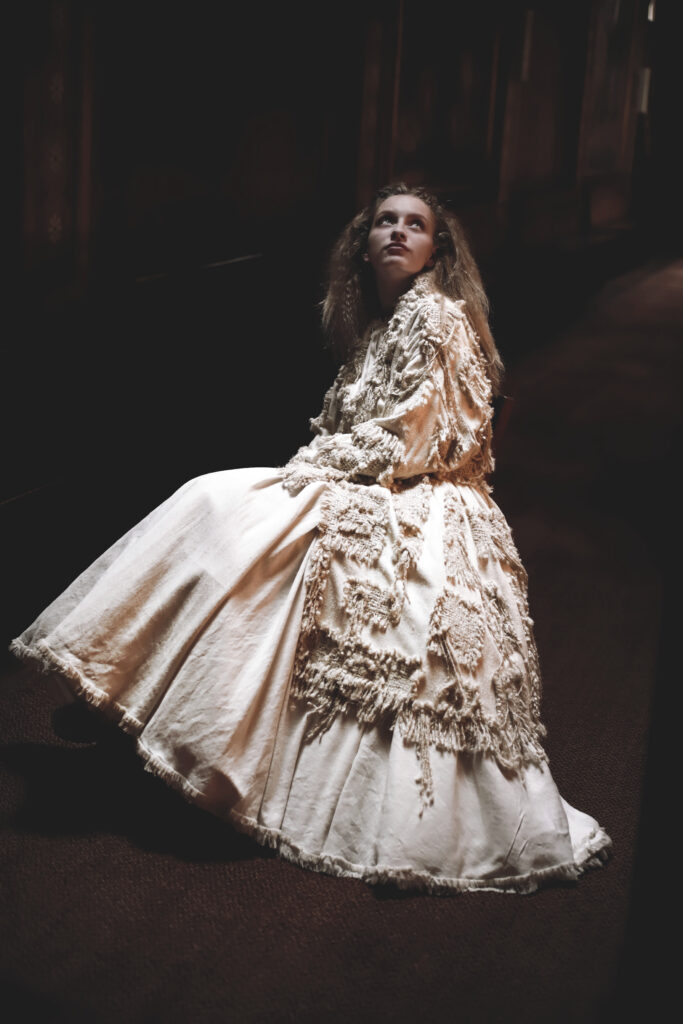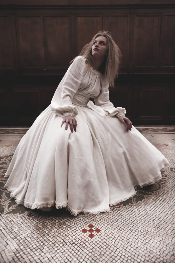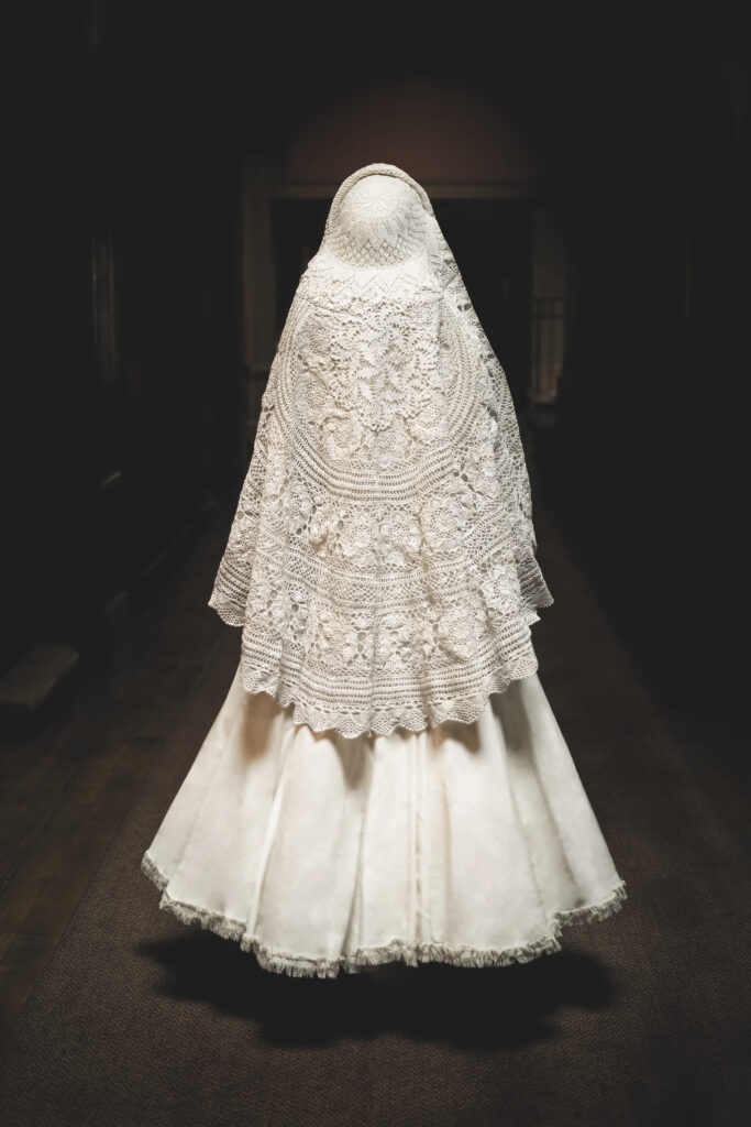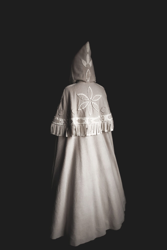 « La Servante, le Passeur et la Relique. Le titre sonne comme une fable philosophique, un conte onirique, une croyance partagée par des fidèles de tous horizons. Mais il parle, avant tout, malgré ses références passéistes, d’une actualité de plus en plus brulante qui a pour sujet la richesse et la pauvreté. Il y a quelque temps déjà, le magazine « L’Histoire » titrait « Les Riches et les Pauvres, 1000 ans d’inégalité ». Loin de moi l’idée d’une quelconque morale ou d’un procès d’intention. Je dois avouer que j’ai eu beaucoup de mal à choisir l’orientation de cette collection. A vrai dire, je ne voulais pas choisir et chaque personnage a finalement trouvé sa place. La Servante, le Passeur et la Relique. La Servante incarne une fille des bois, des clairières et des étangs. Une paysanne qui évolue dans un univers bucolique qui traduit mon envie de dépouillement. Un paupérisme inspiré d’une série de clichés de l’artiste Jackie Nickerson qui a photographié des ouvriers agricoles au Zimbabwe, en 1996, et qui a mis l’accent sur les vêtements uniques et magnifiques que les travailleurs se sont, eux-mêmes, confectionnés. Une identité, une individualité et une modernité à toute épreuve. Les silhouettes s’approprient les influences traditionnelles d’Europe mais en les ayant lavées de tout folklore coloristique. Francisco de Zubarán, grand peintre baroque espagnol et son compatriote, José Ortiz Echagüe, photographe, adepte du pictorialisme, m’ont aussi accompagné dans cette quête d’authenticité. Le blanc, l’écru, l’ivoire, le beige et le grège composent la palette des modèles. Une robe « roumaine » juponnée est la base de l’histoire des tenues de la Servante. On vient, ensuite, ennoblir par superposition de capes, d’imperméables, de gilets, de vestes courtes, de châles … Les matières sont brutes ou à aspect rustique, mélange de lin et soie, de soie et coton, de soie et viscose, organza plastifié, jacquard effiloché, laine mèche et fileté, laine bouillie, crochet et velours plissé façon Mariano Fortuny y Madrazo.