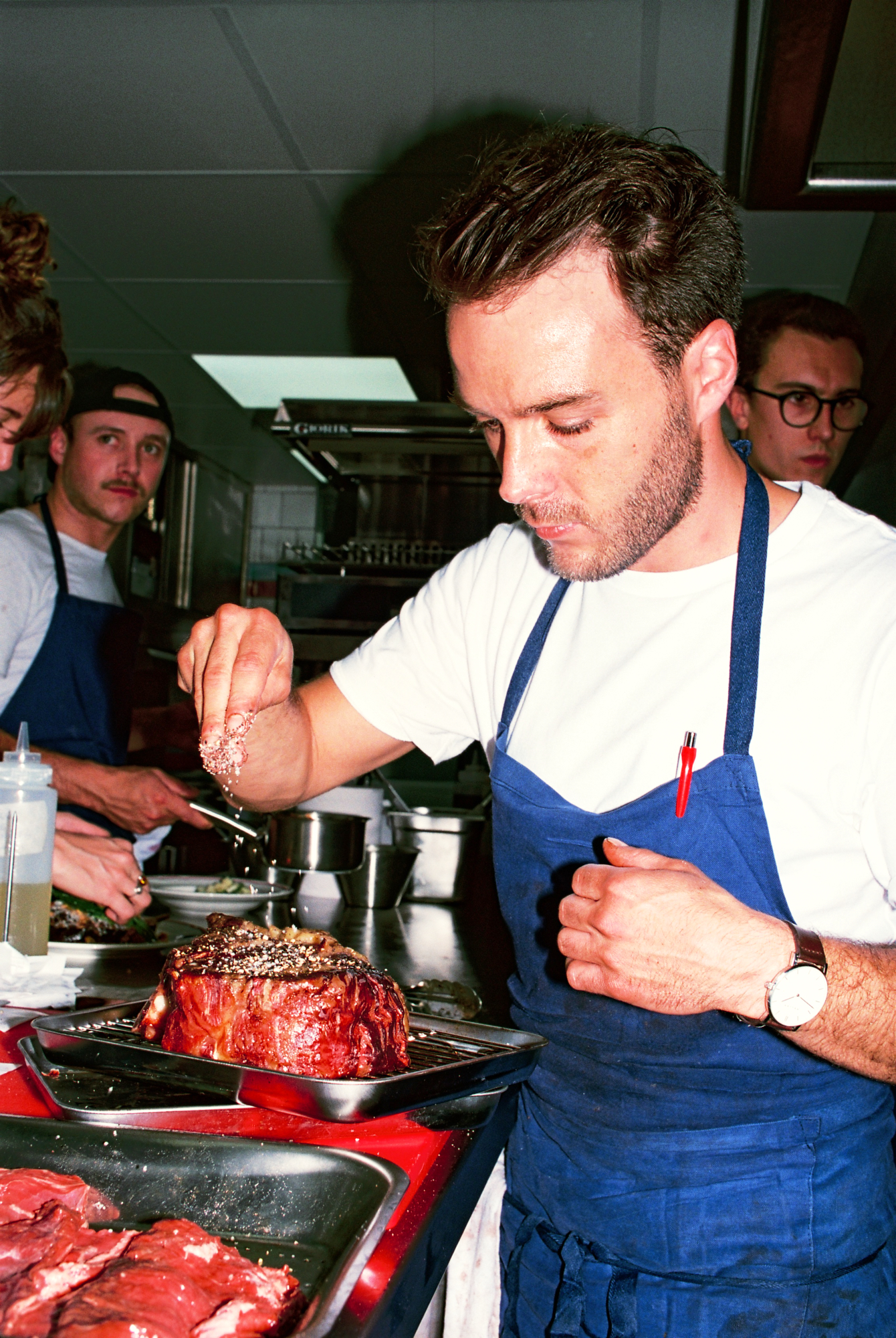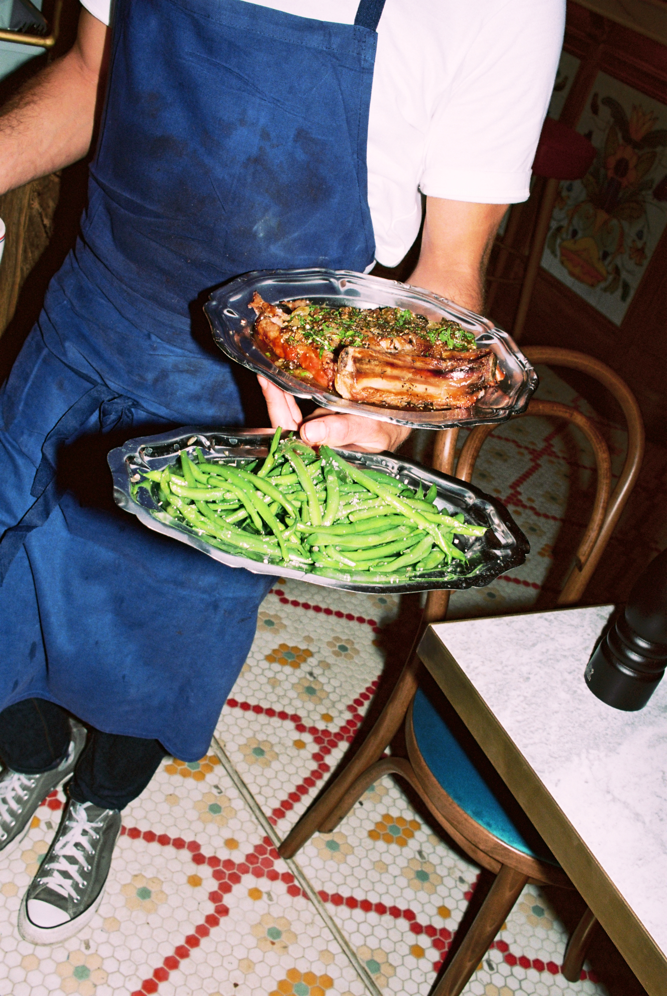 Une solide cuisine traditionnelle à l’image de ses deux chefs, Thibaut Darteyre et Baptiste Swygart : franche, débonnaire, instinctive. Faut dire que ces deux-là, c’est du sérieux. Ils se sont rencontrés au Richer, Baptiste alors stagiaire Ferrandi sous le joug bienveillant de Thibaut. Le premier est ensuite passé chez Dersou pour atterrir chef au Pressing, tandis que le second a fait l’ouverture de l’Hôtel des Grands Boulevards aux côtés de Giovanni Passerini. Et puisque la suite c’était ensemble ou rien, les voilà tous deux à Bellanger pour lancer la machine et ouvrir la voie à une cuisine simple, assenée de générosité mais sans vanité. La suite était toute tracée avec l’ouverture de cette deuxième cantine de haute voltige : une carte composée à 4 mains et un tandem derrière les marmites.