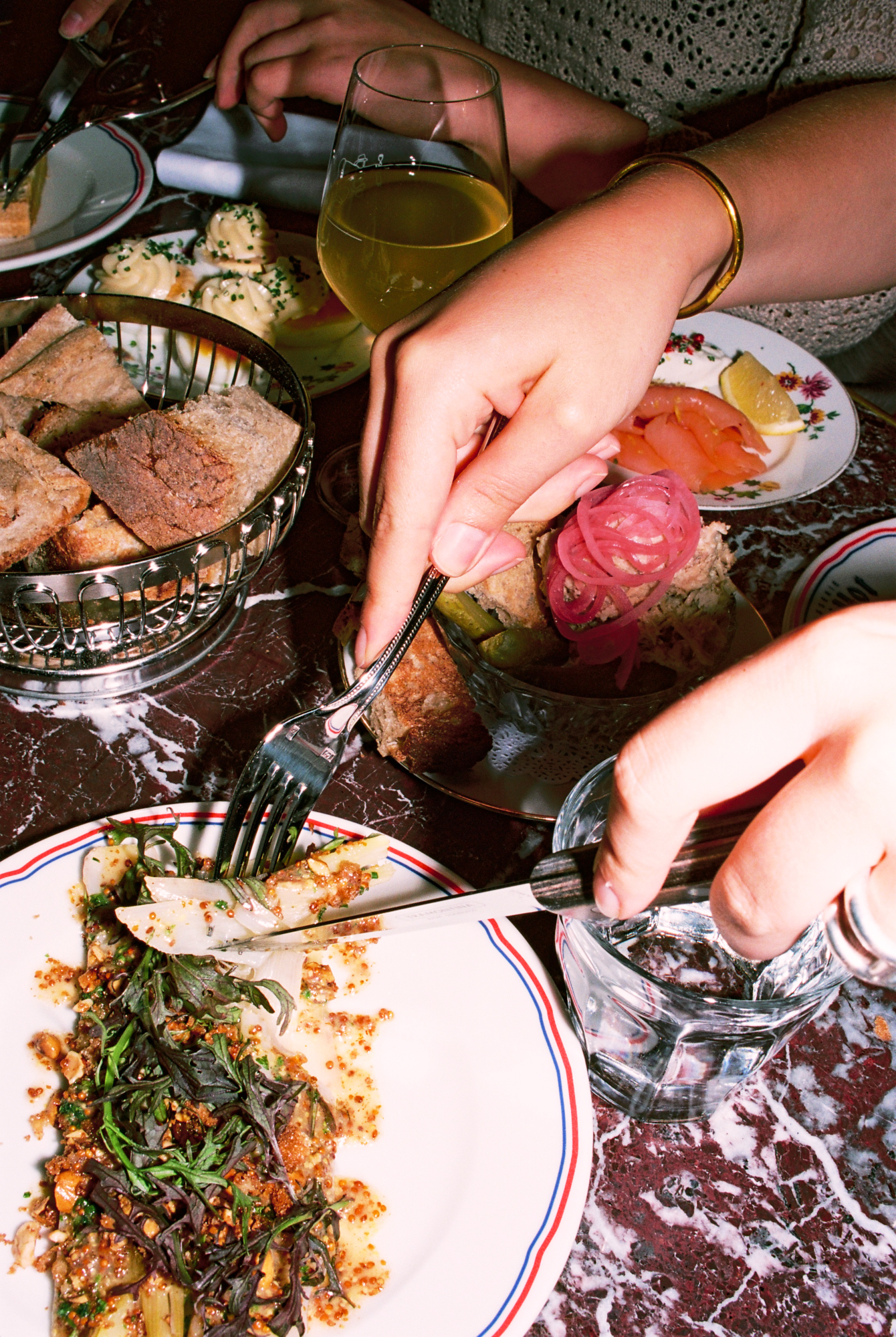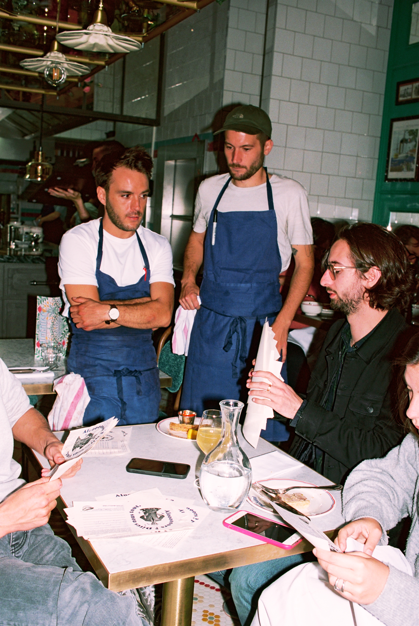 A la carte, des entrées et des plats réconfortants qui font la part belle à notre fascinant patrimoine culinaire français. Voyez donc : poireaux vinaigrette braisés, croûtons et noisettes torréfiées, tartare de Salers et frites allumettes, saucisse aveyronnaise au couteau braisée… Tout ça servi par une flotte de serveurs réjouissants et ultra souriants qui rendent l’ambiance délectable et bon enfant.