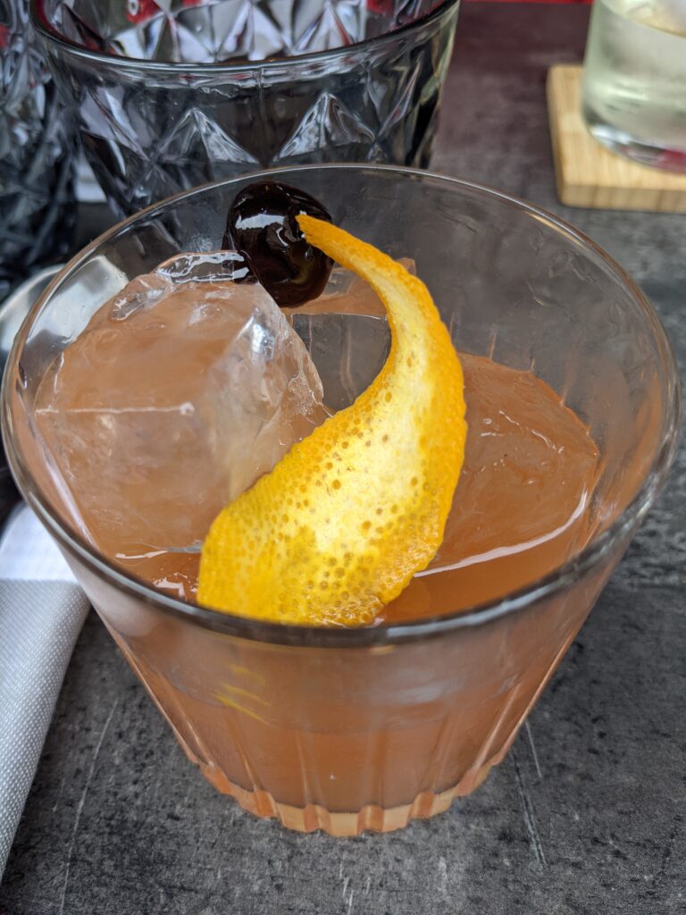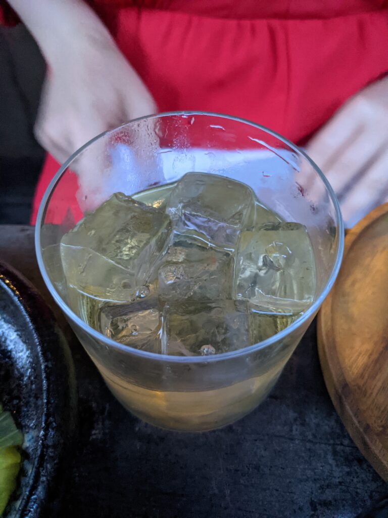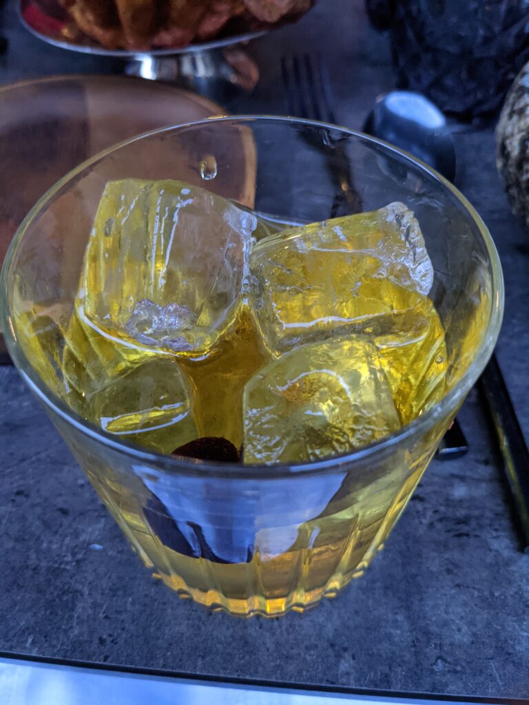 cocktail a un verre dédié comme le cocktail « Le Fils Prodige » présenté dans le verre « la tête de l’ange de David », un clin d’œil au maitre des lieux avec du Pisco Gallos infusé au maté, verjus de Bourgouin, sirop d’Agave, citronnelle, Amargo Chuncho, un bitter. Délicieux !