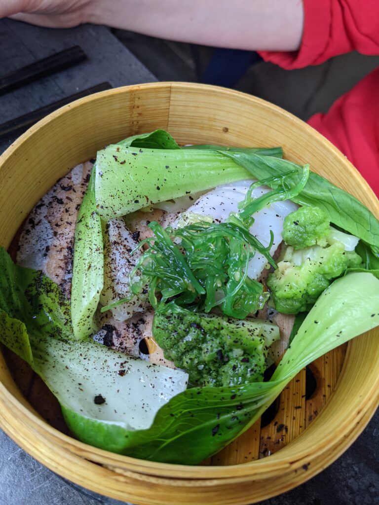 Dehecq pendant la longue période de confinement. Il faut dire que ce passionné de pèche sous-marine, de nature et de rugby avait besoin de faire fonctionner son imagination pour ne pas avoir la sensation de tourner en rond comme un poisson dans un bocal. Entre le style street-food en plein essor et les traditionnelles influences asiatiques, ses origines bretonnes et du Nord, un panachage d’idées lui sont venues à l’esprit. Il a discuté beaucoup de ses recettes notamment avecRomain Calvo, le directeur radicalement plus sudiste, un toulousain d’origine espagnole. Ce dernier a apporté les influences de cette