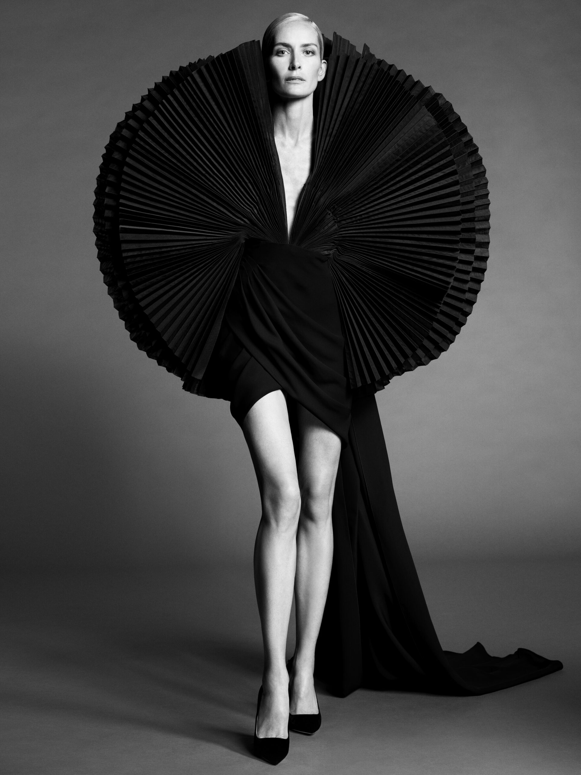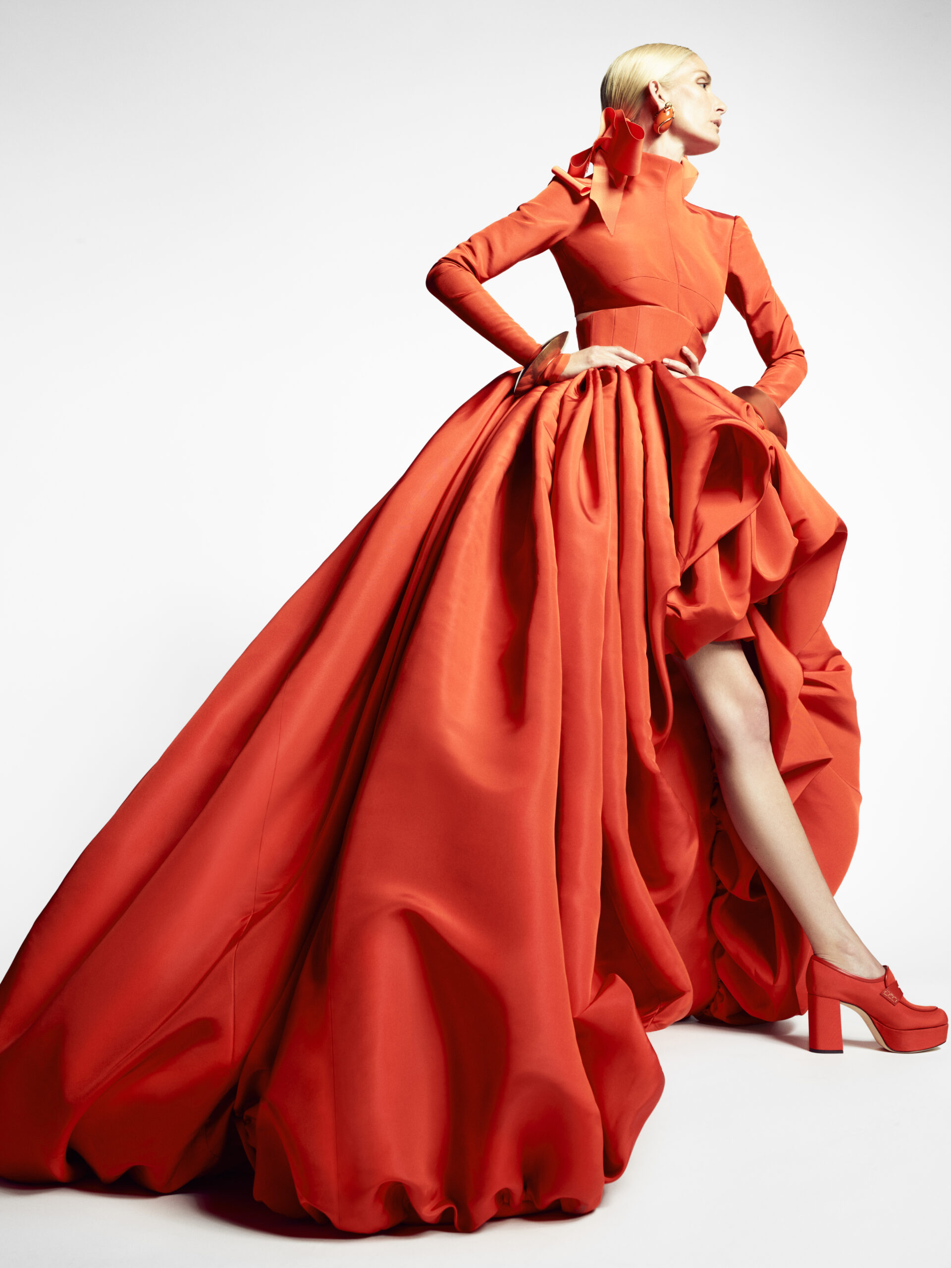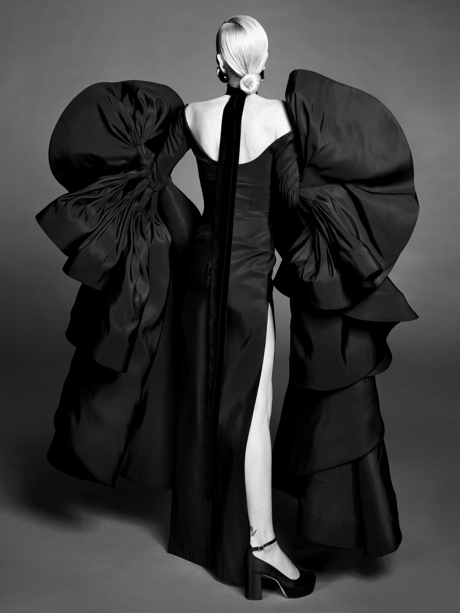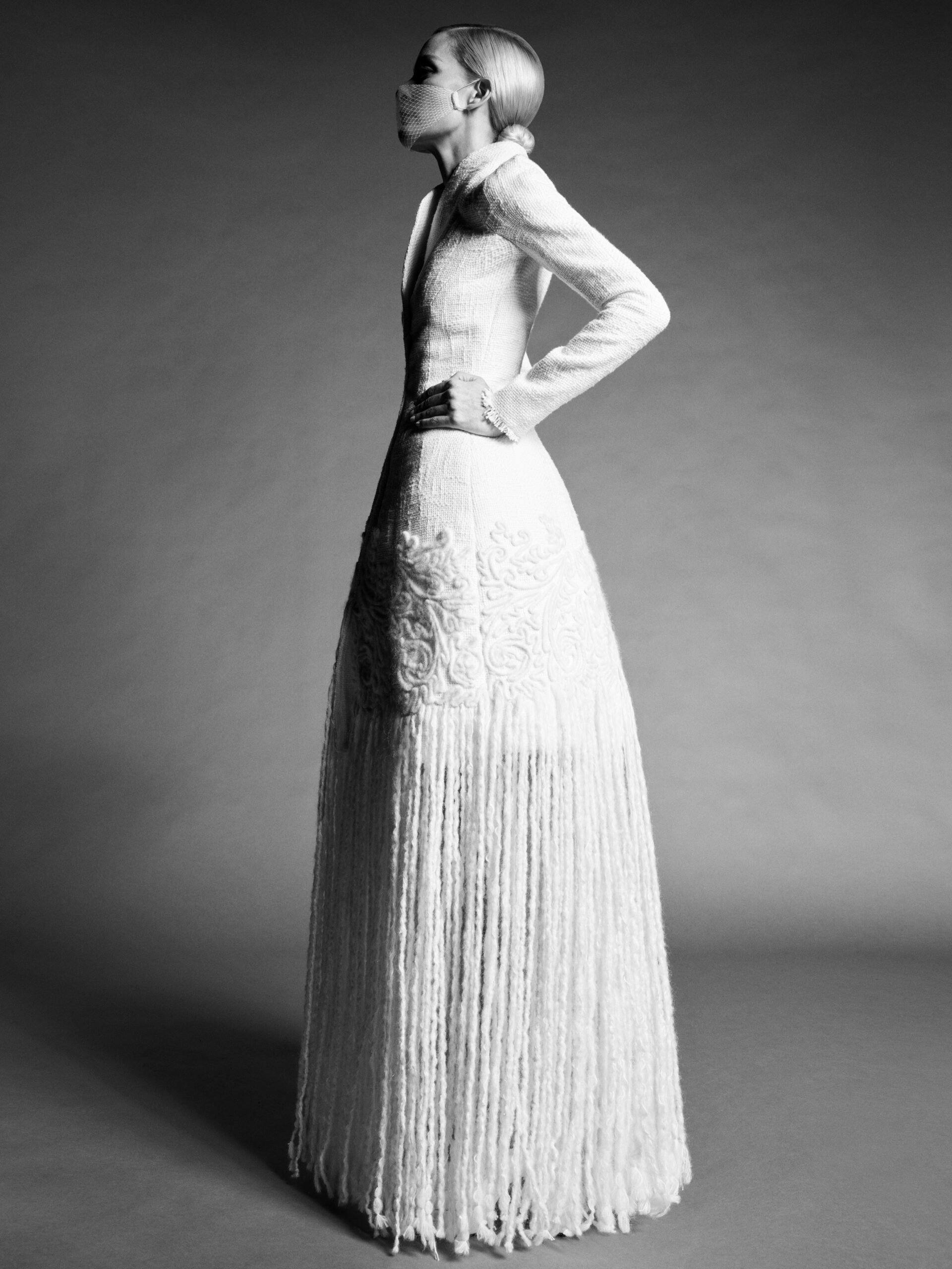 In our work, finding her is a process. With the clarify afforded by the echo-chamber emptiness of the moment, our gaze turned inwards – to the history of couture, to our own history – looking for the source of in- spiration. To the idea of a muse.