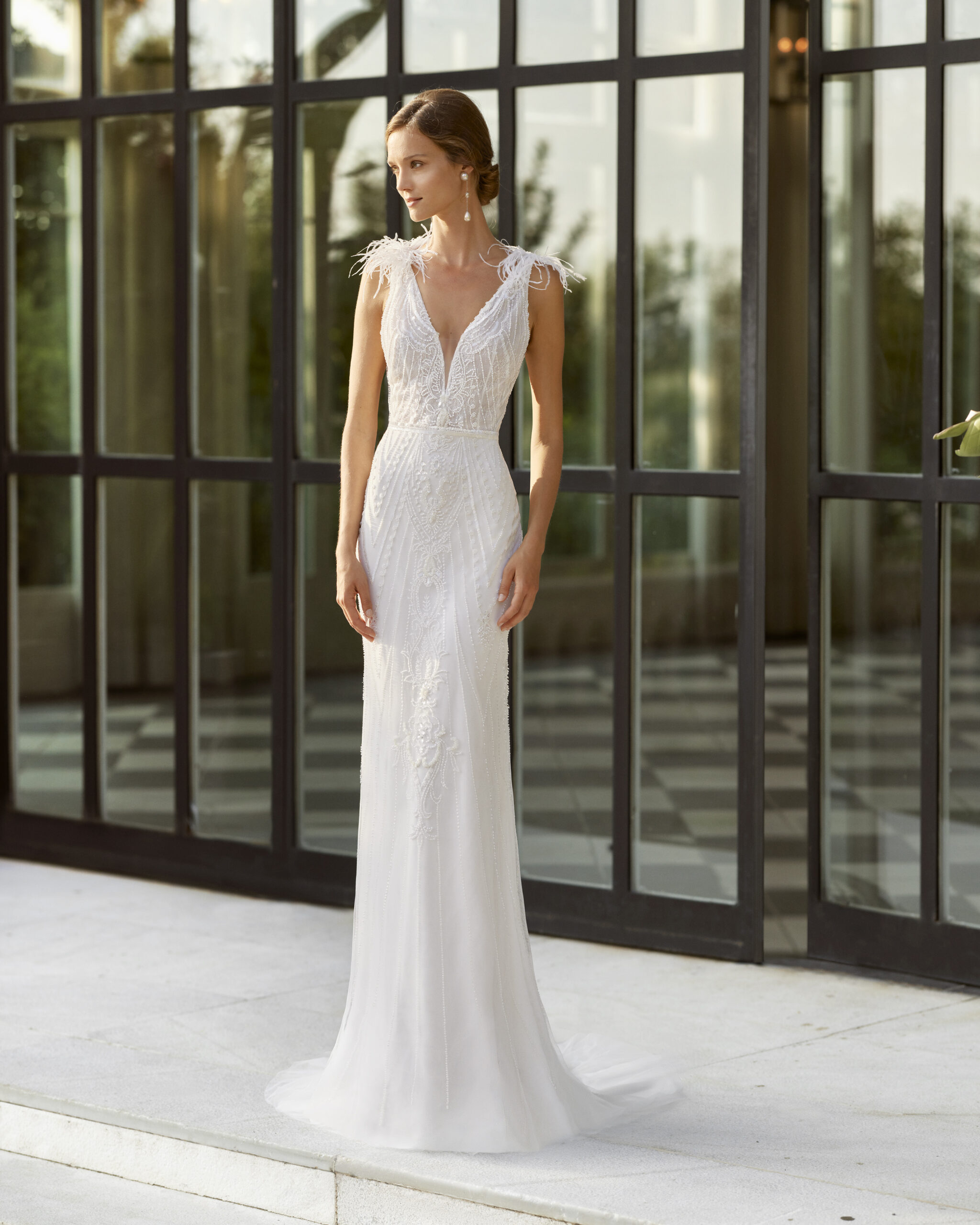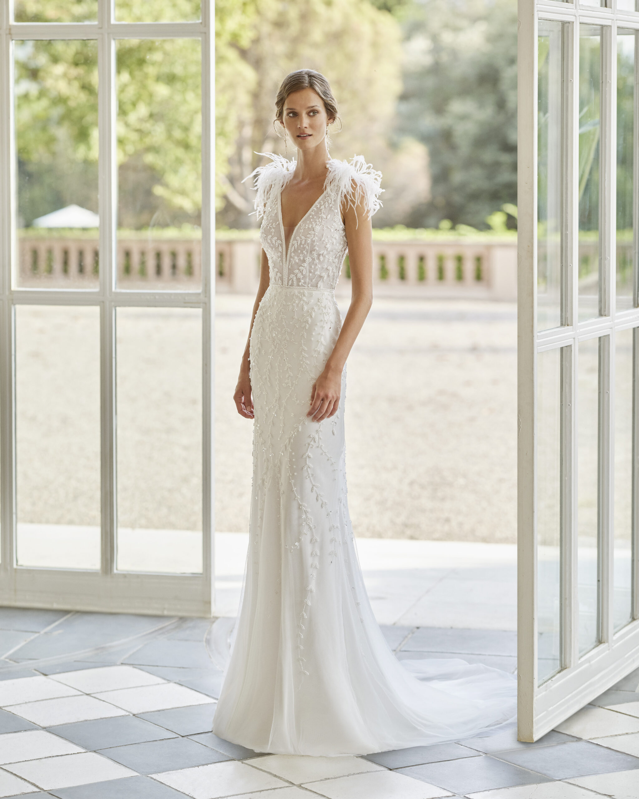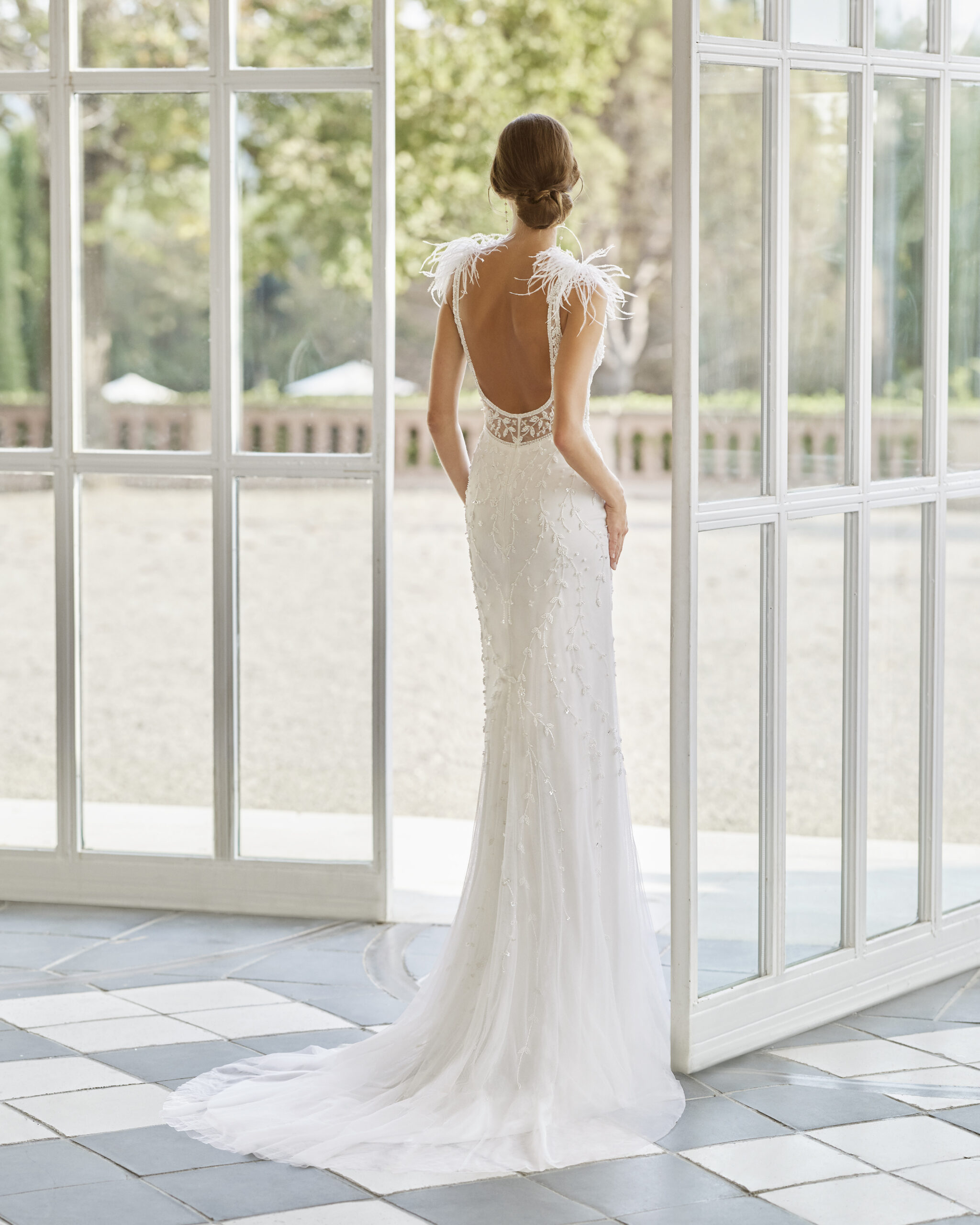 ROSA CLARÁ étoffe ses propositions de mode nuptiale avec ROSA CLARÁ Gatsby, une collection inspirée du luxe et du raffinement des fabuleuses années 20 du XXe siècle. Une époque qui a marqué le début de la libération de la femme et qui, un siècle plus tard, continue à nous émerveiller par son opulence et sa féminité avec des designs parsemés de pierreries, de paillettes et de plumes, dotés d’une grande modernité grâce à leurs structures légères et leurs coupes confortables.