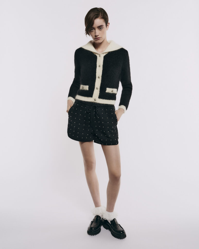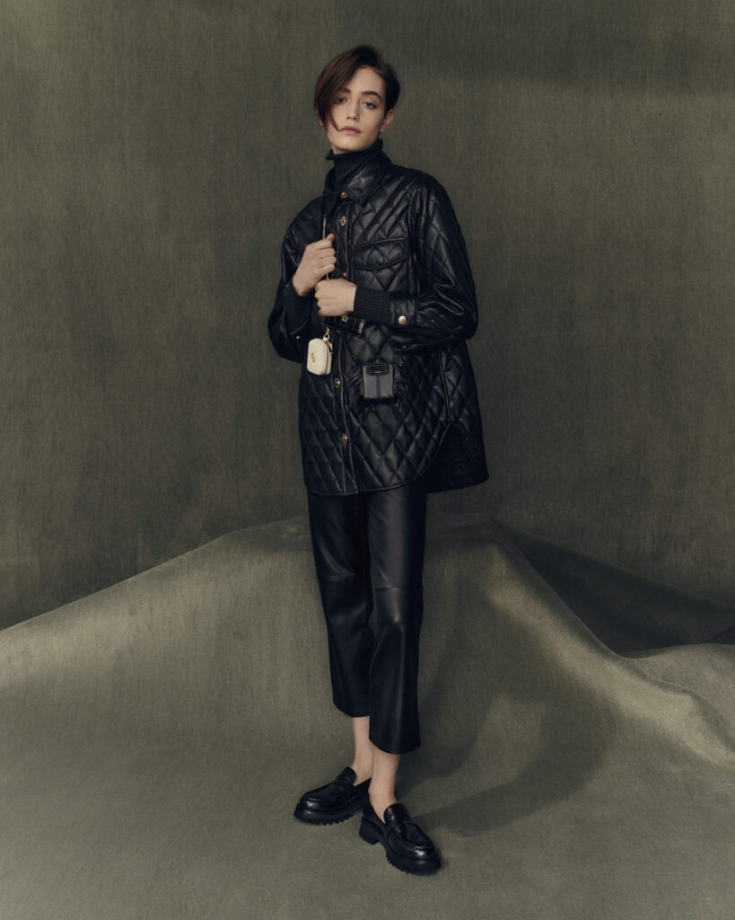 Vestes et manteaux suivent cette envie de grands espaces. Rien de trop ajusté, on donne un bol d’air à la silhouette. Les fausses fourrures perdent un peu de structure, les pantalons et shorts donnent aux jambes de nouveaux moyens d’expression, les hauts jouent avec les justes proportions. Lorsque les shorts empruntent au sport leur liberté de mouvement, on les twistte en denim matelassé, boyish féminisé. Partout, les petits cols s’envisagent oversize, impactants mais charmants.