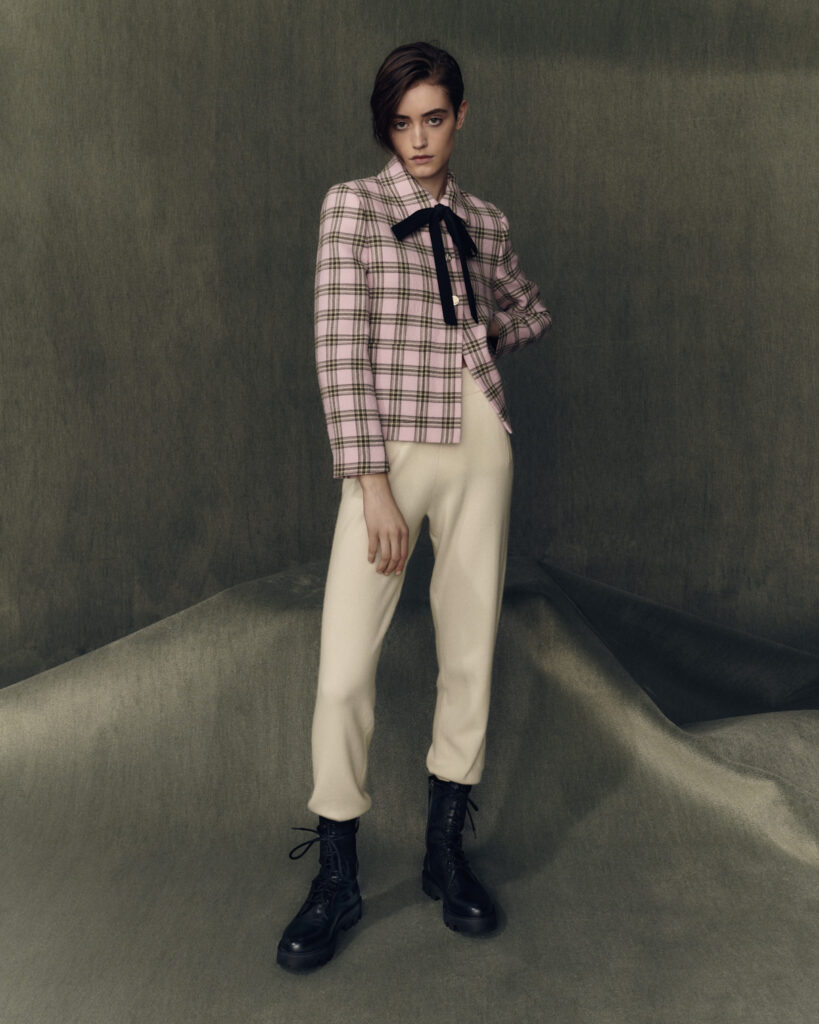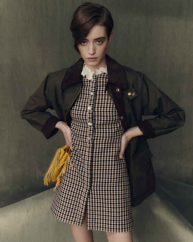 La tendance touche la campagne anglaise, revue et corrigée par une jeunesse prête à s’émanciper. On laisse son cottage dans une certaine fluidité, preppy mais confy, en pulls amples et doudounes matelassées, dans un tweed qui libère plutôt que d’enserrer. Cagoules et combat boots se chargent d’encanailler.