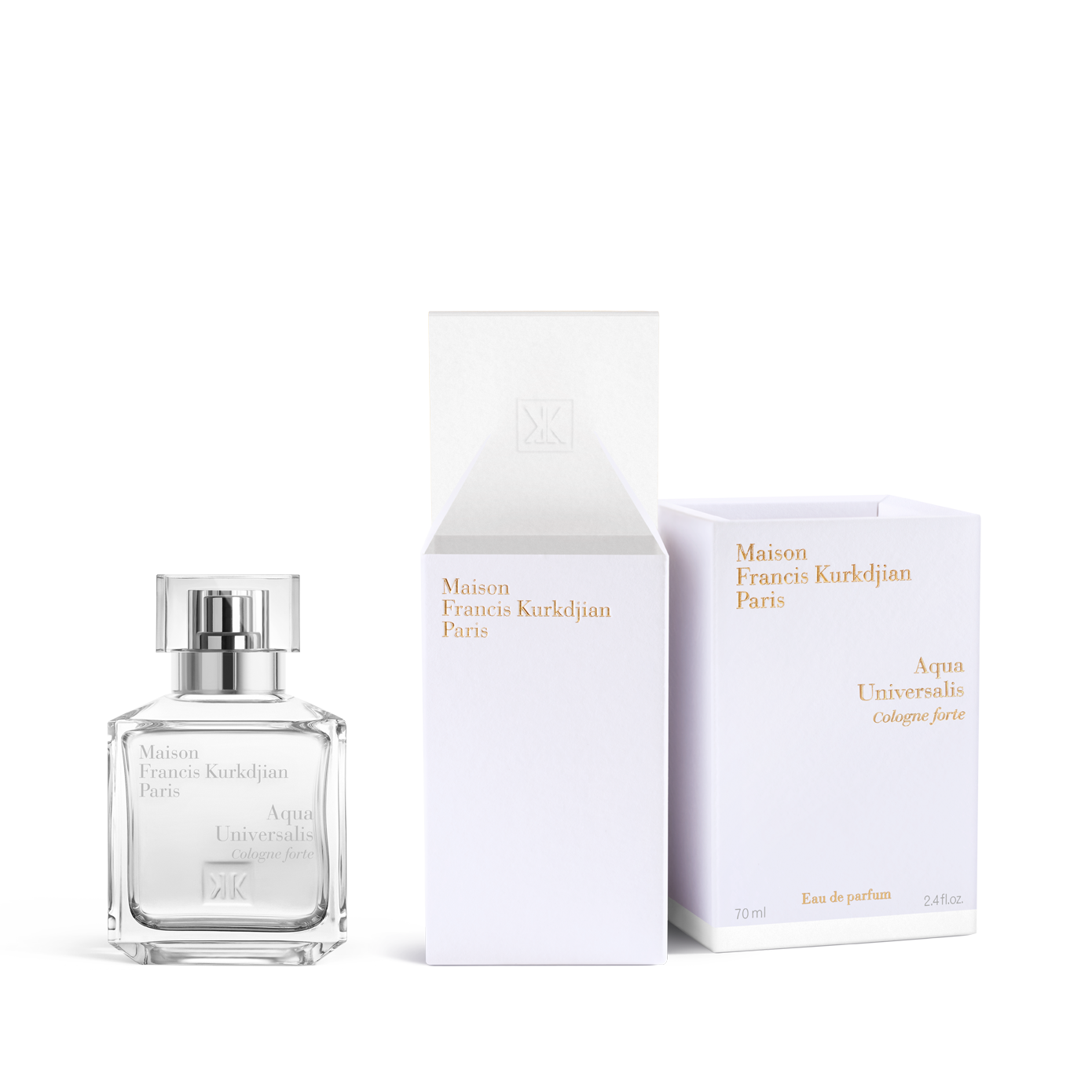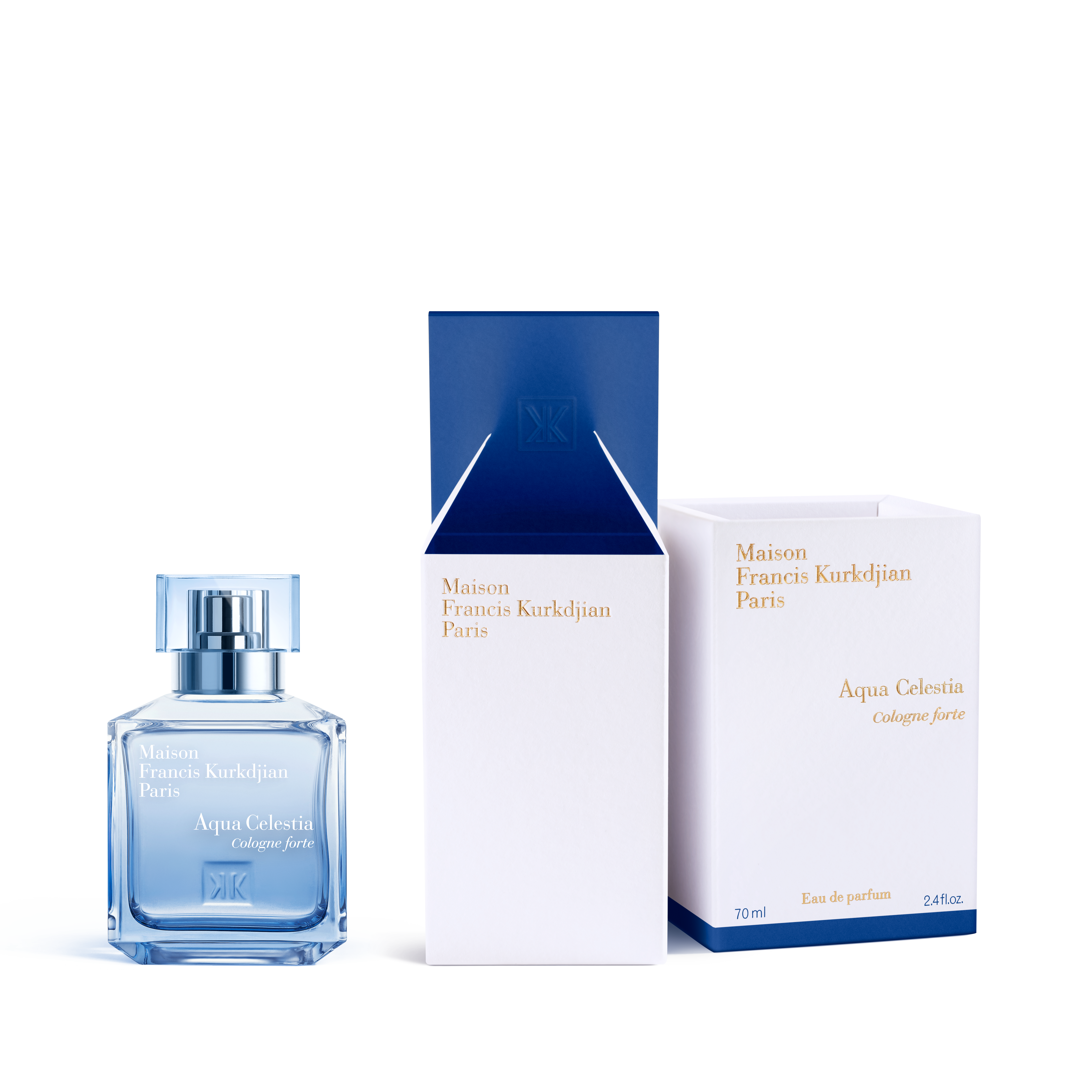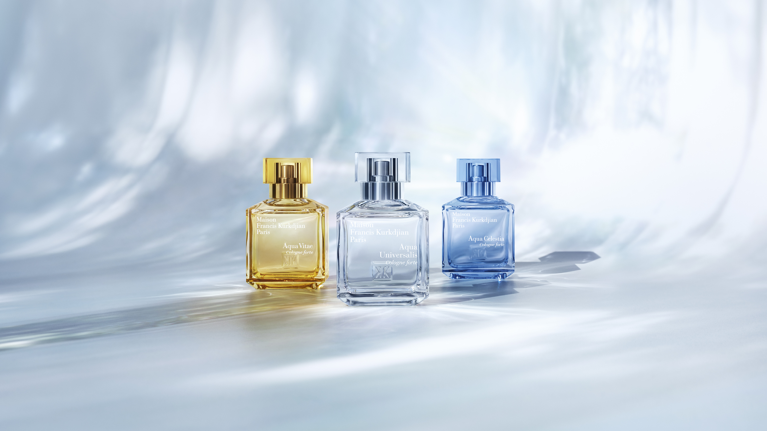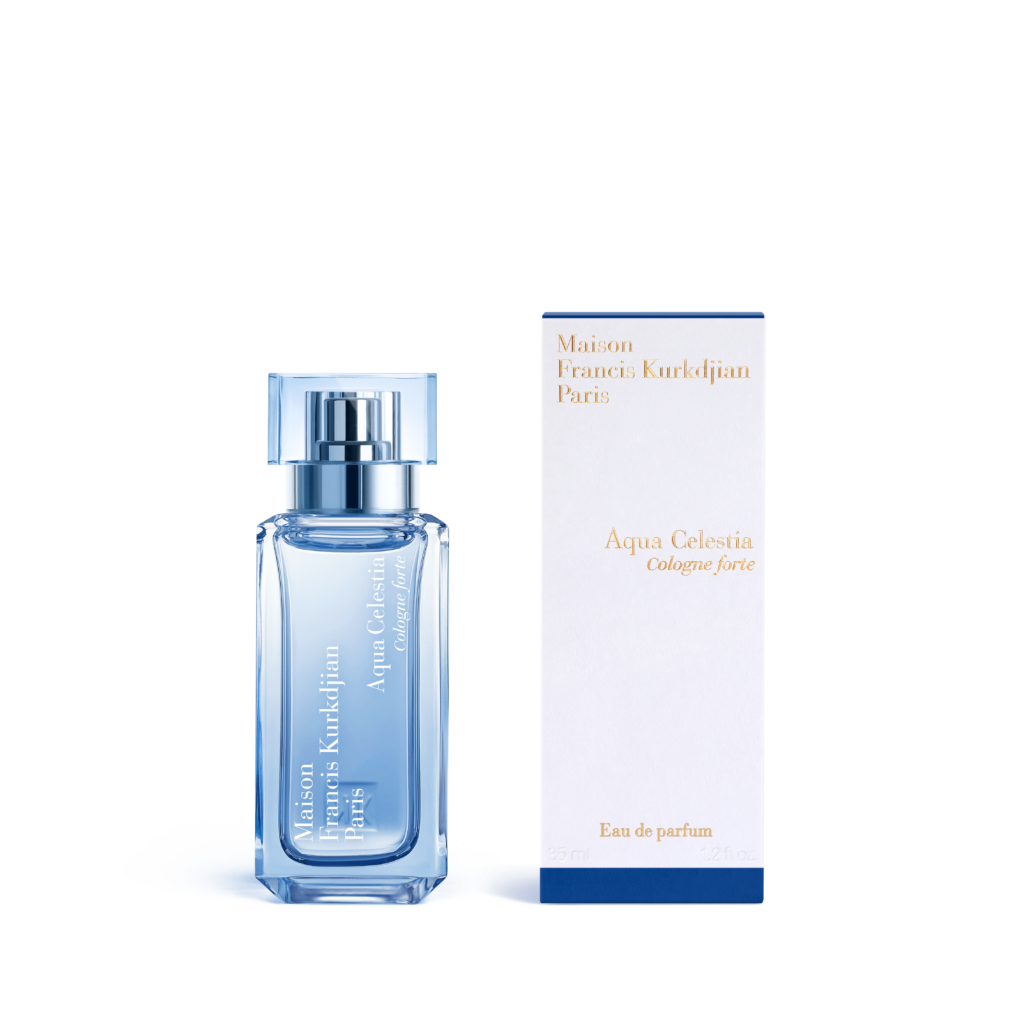 Pour Francis Kurkdjian, l’idée principale des Cologne forte est d’exprimer la fraîcheur par les sensations que procure la lumière. Aqua Universalis Cologne forte, c’est l’idée de la blancheur poussée à l’extrême, une pure bouffée d’air frais, la sensation de propre et non l’odeur du propre. Aqua Vitae Cologne forte symbolise le soleil à son zénith avec un embrasement floral traversé par une percée d’air chaud. Aqua Celestia Cologne forte, c’est la rencontre des bleus de la mer et du ciel, une ligne d’horizon qui invite à l’évasion.