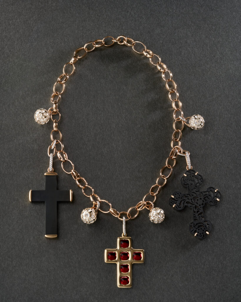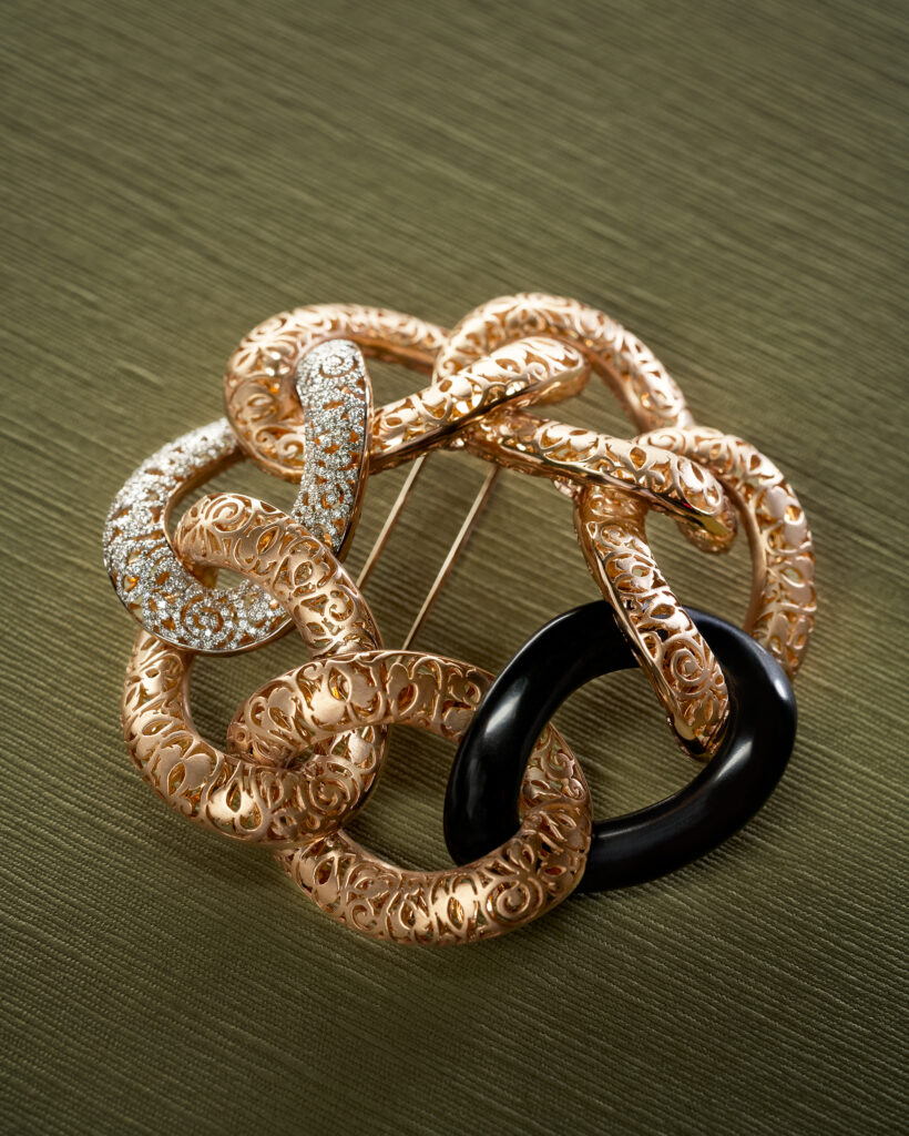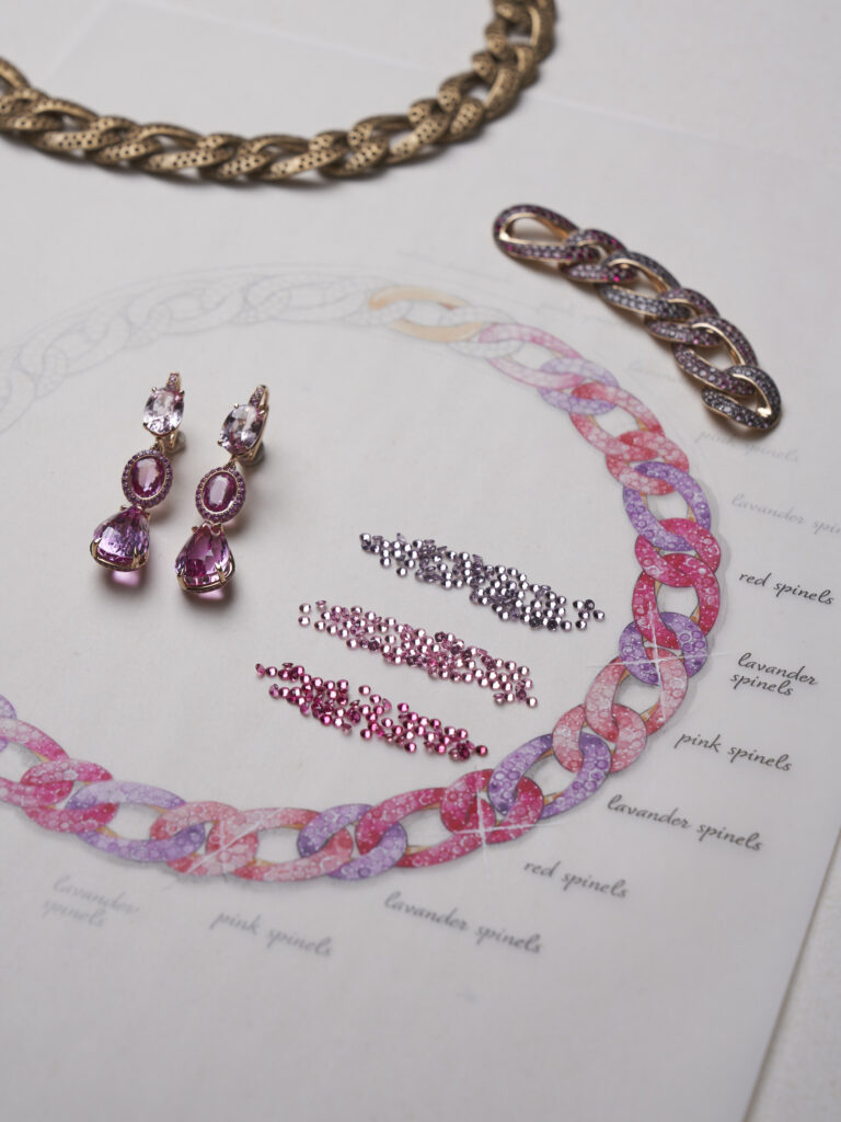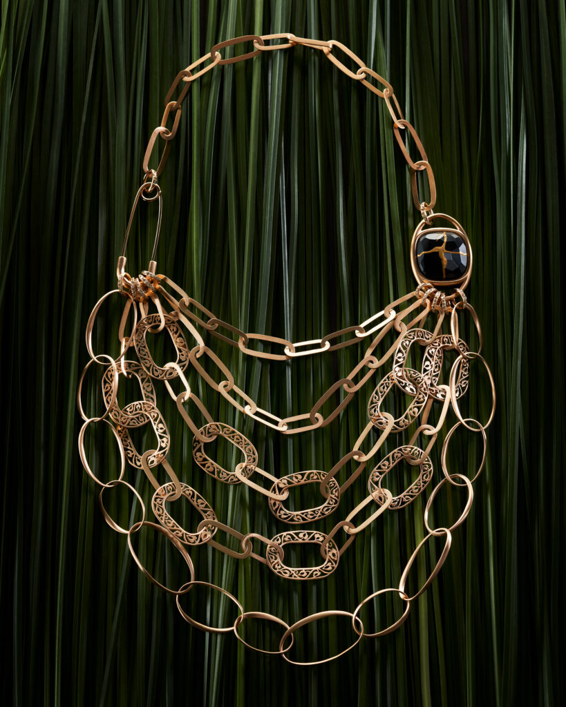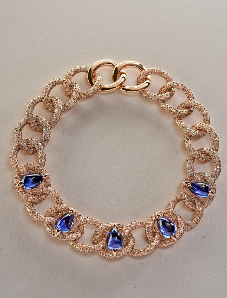 Après avoir insufflé sa liberté de ton à sa première collection de haute joaillerie, La Gioia, présentée en 2020, Pomellato célèbre aujourd’hui un double renouveau. A la métamorphose de pièces vintage s’ajoute la création ex nihilo de modèles faisant écho à l’une des grandes spécialités de Pomellato, les chaînes et gourmettes. Un choix audacieux car ce type de bijoux est très peu exploité dans la haute joaillerie. En mettant ainsi en lumière les maillons d’or, Pomellato fait évoluer le style et le porté de ces pièces et les transporte dans un registre plus contemporain.