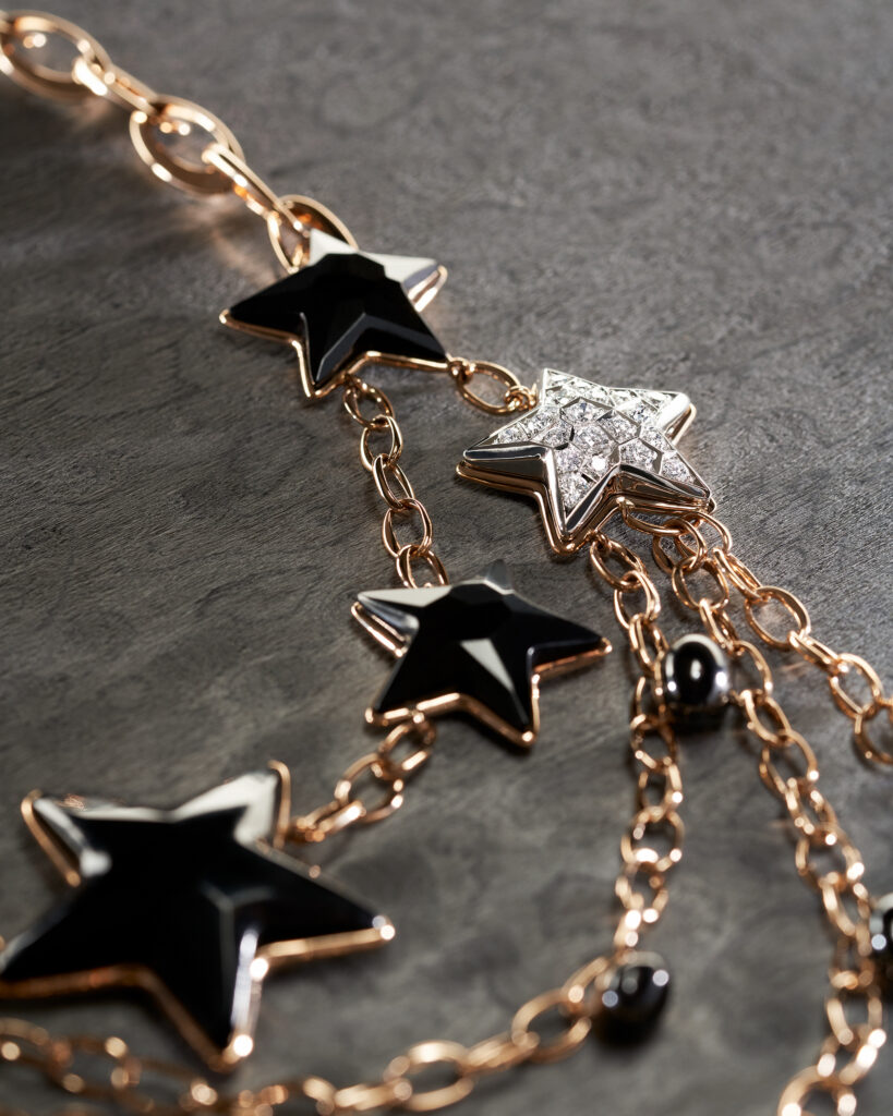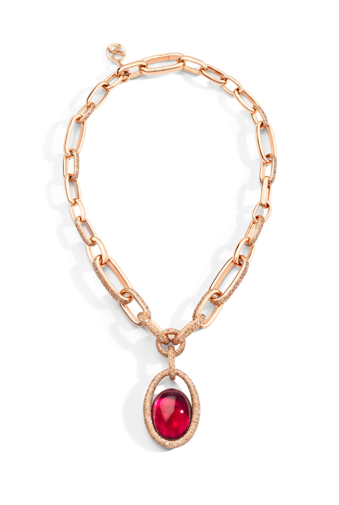 Retrouver une vraie liberté de création. Faire souffler un vent de renouveau dans le domaine de la haute joaillerie. Intégrer les bijoux dans une démarche durable. Dans ce nouveau chapitre de la Gioia, Pomellato s’affranchit des contraintes du temps en faisant renaître des pièces historiques aux côtés de créations contemporaines qui mettent en lumière chaînes et sautoirs. Au travers de ce dialogue inédit entre le passé, le présent et le futur, Pomellato repense les codes de son univers dans ce nouvel ensemble de modèles spectaculaires et audacieux.