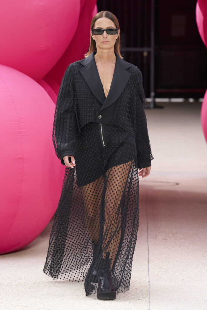 Comme pour les saisons précédentes la collection est 100% réversible, mais pour la première fois, chaque silhouette avance une par une, afin de laisser deviner aux invités s’il s’agit bien d’une seule et même pièce, malgré les deux possibilités.