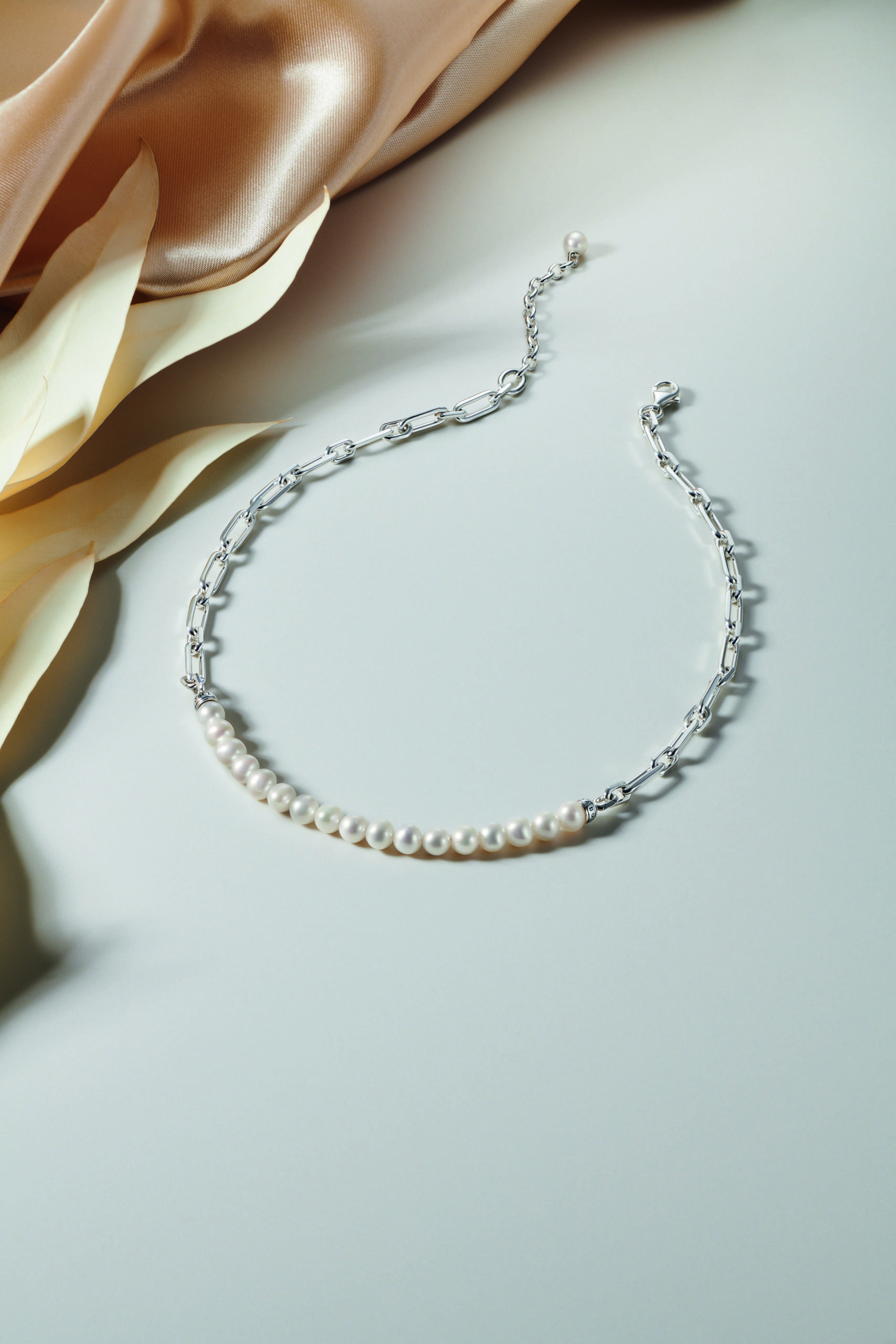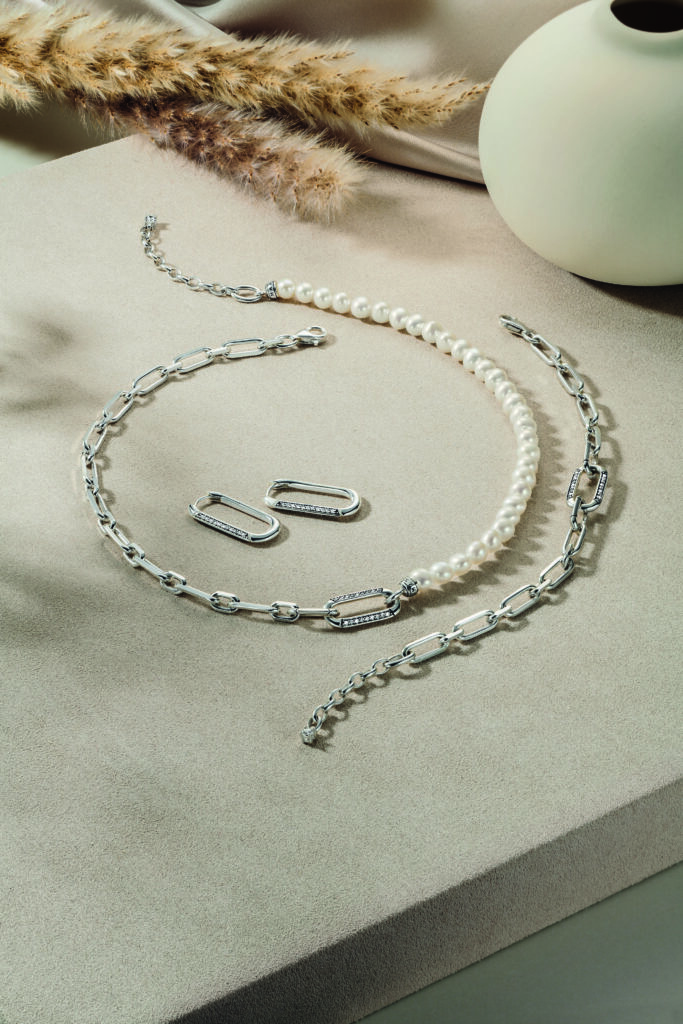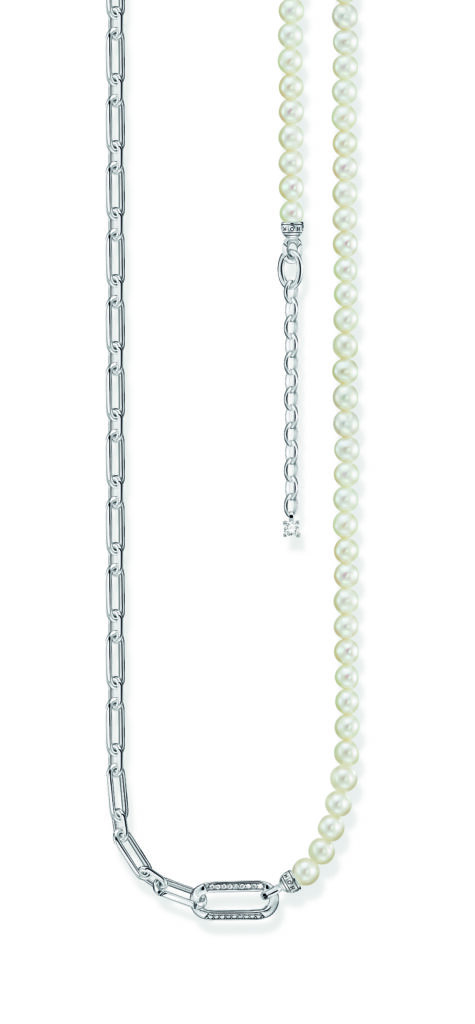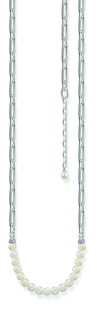 Des maillons de chaîne vigoureux forment un magnifique contraste avec les perles blanches de culture d’eau douce des superbes colliers, bracelets et boucles d’oreilles de la série Pearls & Chains. En associant avec goût des éléments disparates, THOMAS SABO revisite de façon innovante les classiques de la bijouterie.