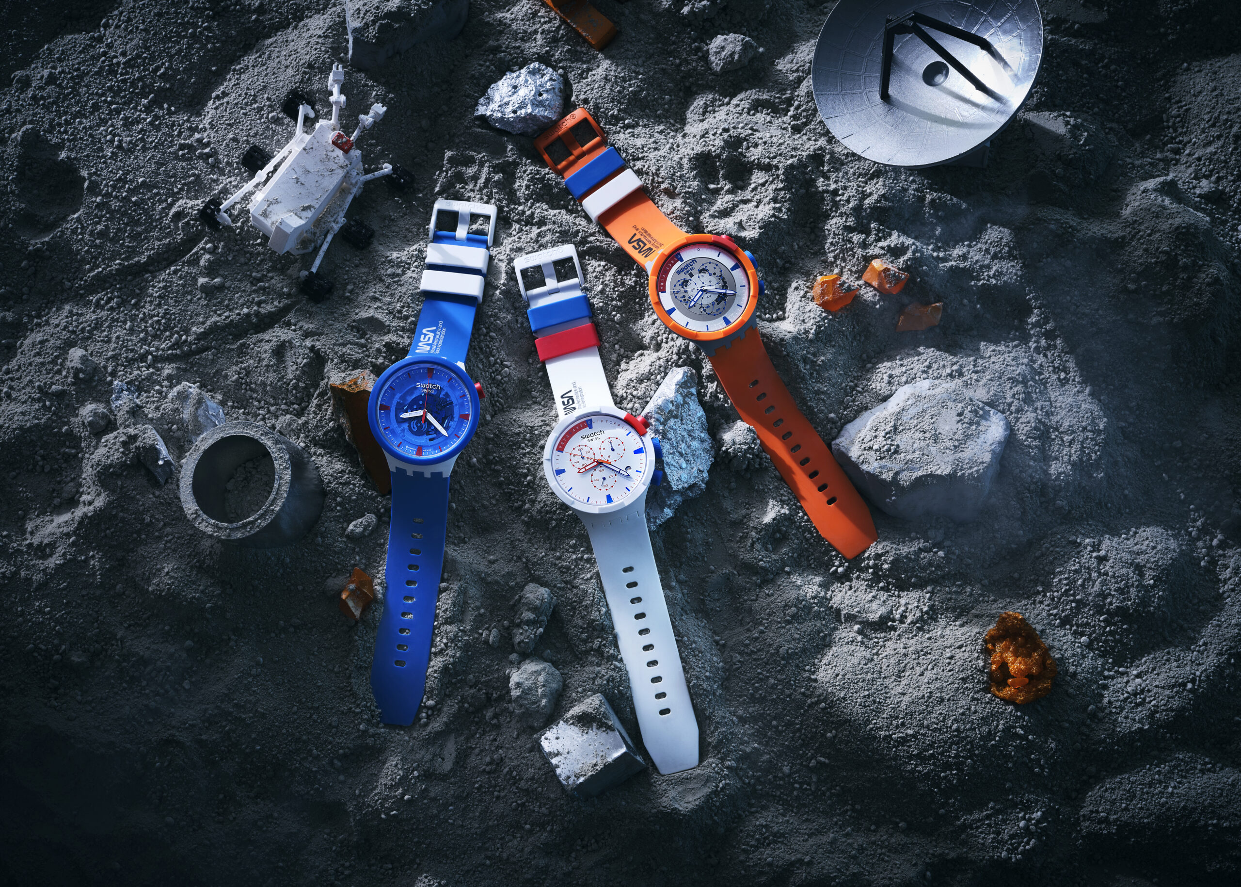 Découvrez la collection capsule de Swatch inspirée par l’agence spatiale et les tenues de ses astronautes..