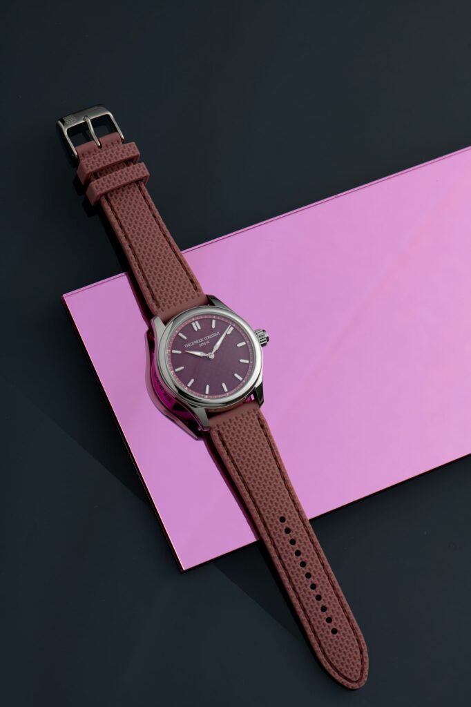 Révélée il y a tout juste un an par la manufacture horlogère suisse Frédérique Constant, la collection Smartwatch Vitality Ladies bénéficie du meilleur de la technologie, sans rien sacrifier de l’esthétique. Le cadran de belle facture présente, sur demande, un affichage digital permettant de consulter de nombreuses informations du quotidien : fréquence cardiaque, suivi de l’activité physique, messages et notifications, météo, alarme, chronographe, parmi beaucoup d’autres. Aujourd’hui, cette collection 100% féminine accueille cinq nouveaux modèles aux tons pastels venant s’ajouter aux quatre existants. Pétillants, classiques ou impertinents, ils se déclinent selon les envies et humeurs du moment. Leur point commun : un esprit coloré, des bracelets caoutchouc pour parcourir le monde ou aller à la plage, et toujours un diamètre de 36 mm, le tout selon un positionnement prix toujours très étudié.