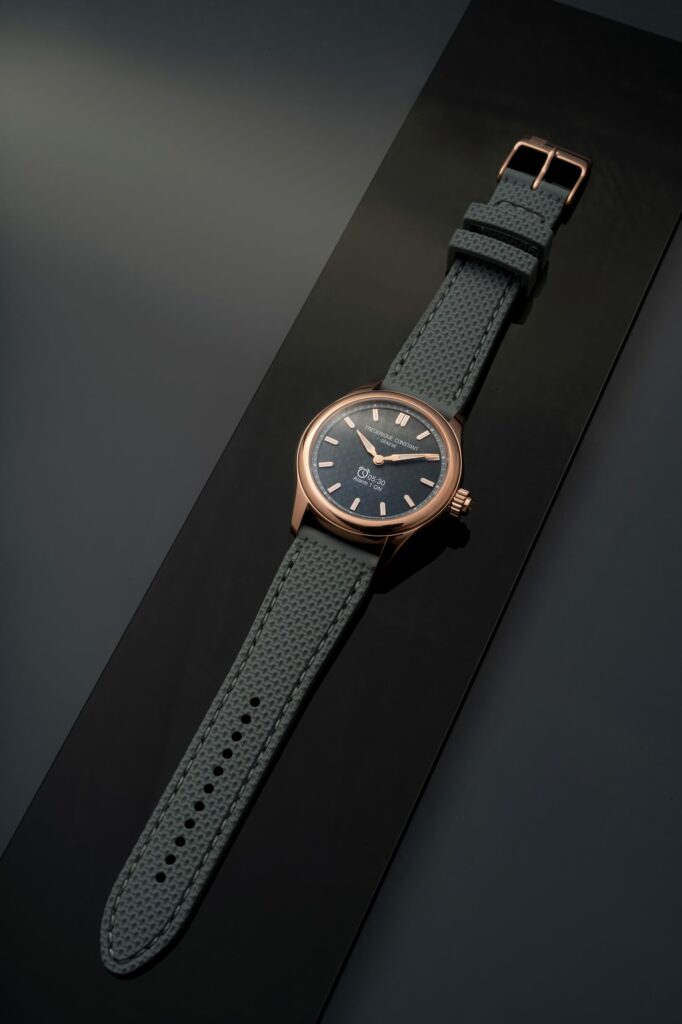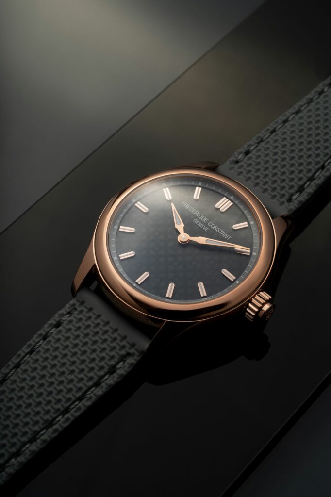 Les deux dernières variations affirment sans ambiguïté le classicisme tout aussi cher à Frédérique Constant, avec un boîtier en acier plaqué or rose, dont la douce chaleur est reprise sur les index, les aiguilles et la couronne. Ces deux montres reprennent le gris et le bleu des modèles acier, toujours sur des bracelets en caoutchouc du même ton. A la fois sport et chic, elles affirment leur caractère sans compromis et refusent de choisir !