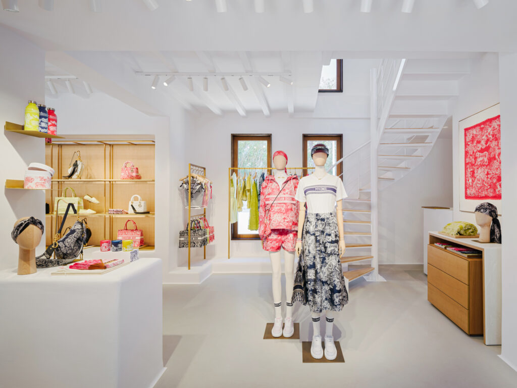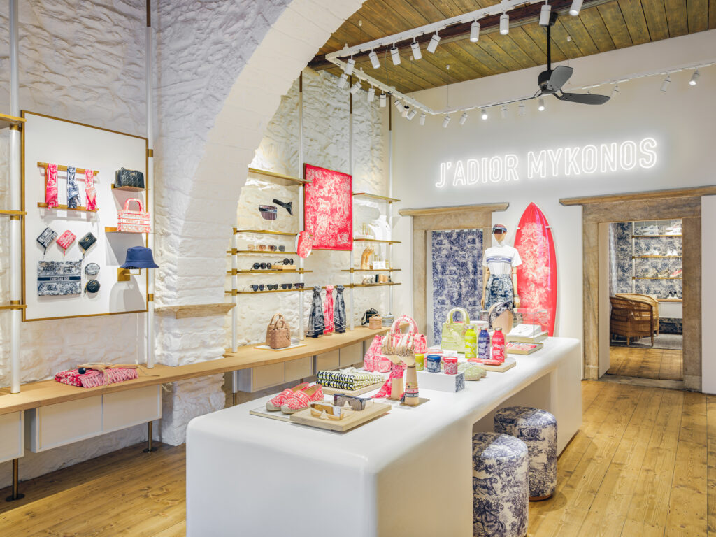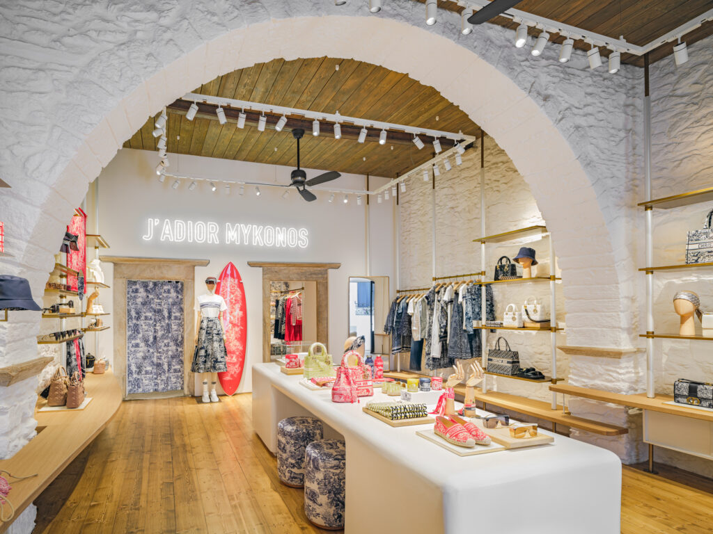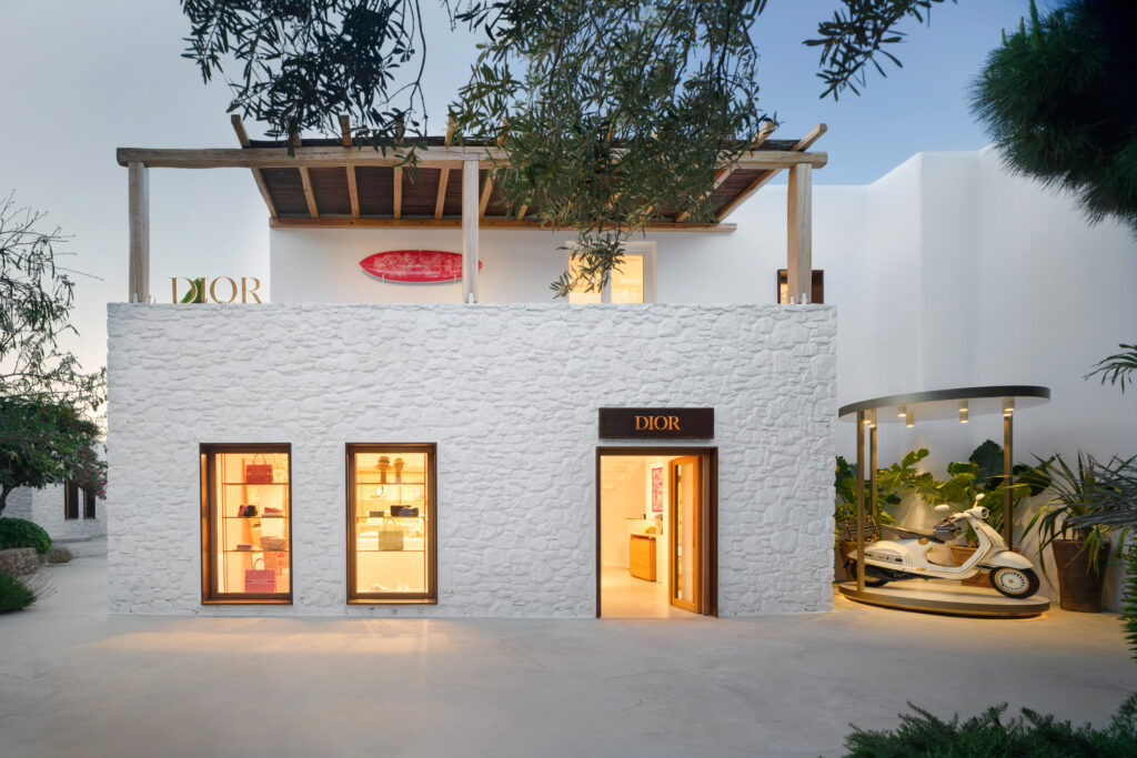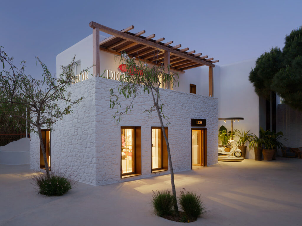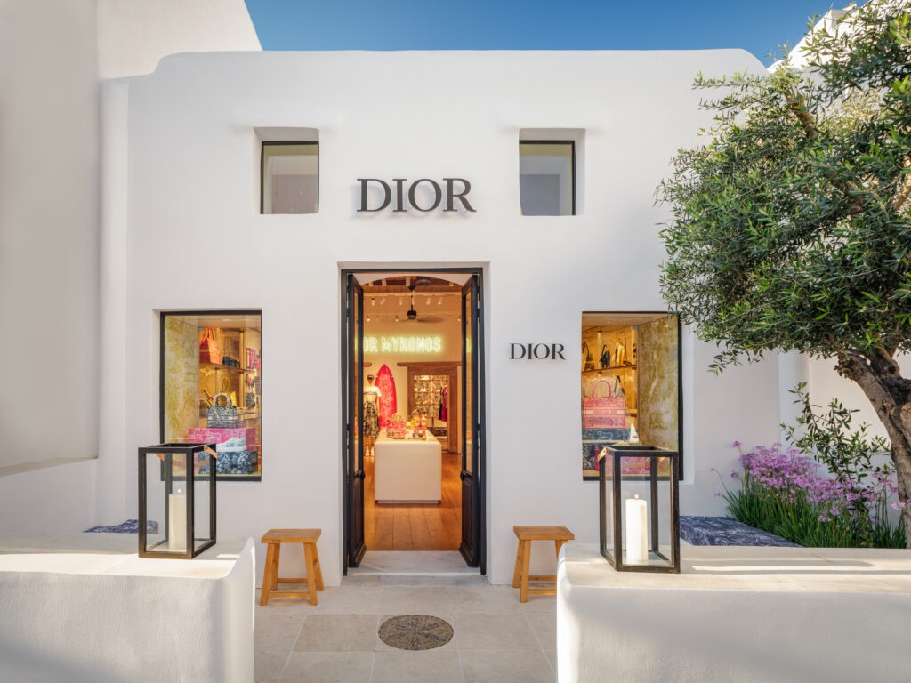 Incomparable paradis au cœur des Cyclades, Mykonos accueille deux boutiques éphémères dédiées à la capsule Dioriviera, imaginée par Maria Grazia Chiuri.