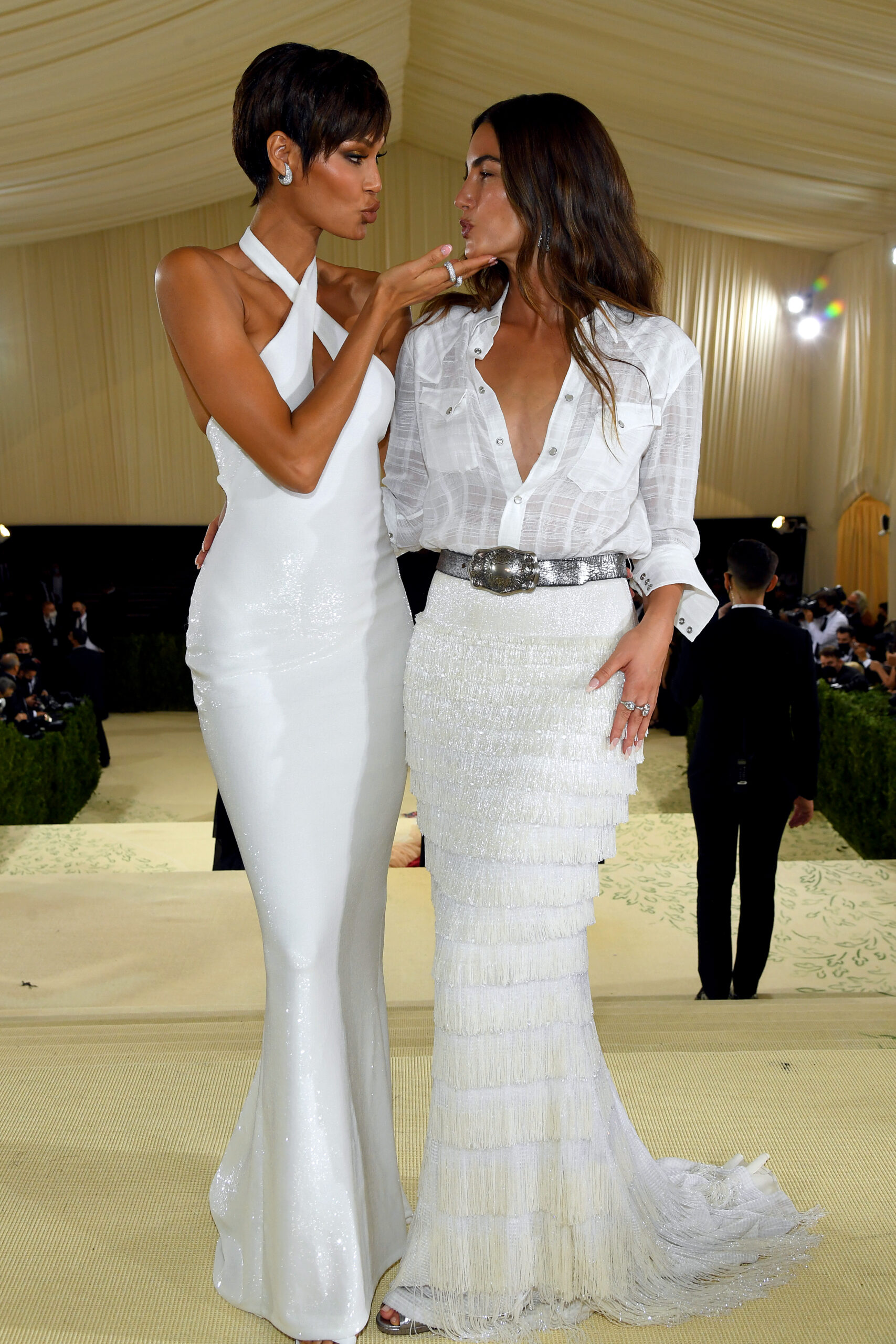 - NEW YORK, NEW YORK – SEPTEMBER 13: Joan Smalls and Lily Aldridge attend The 2021 Met Gala Celebrating In America: A Lexicon Of Fashion at Metropolitan Museum of Art on September 13, 2021 in New York City. (Photo by Kevin Mazur/MG21/Getty Images For The Met Museum/Vogue)